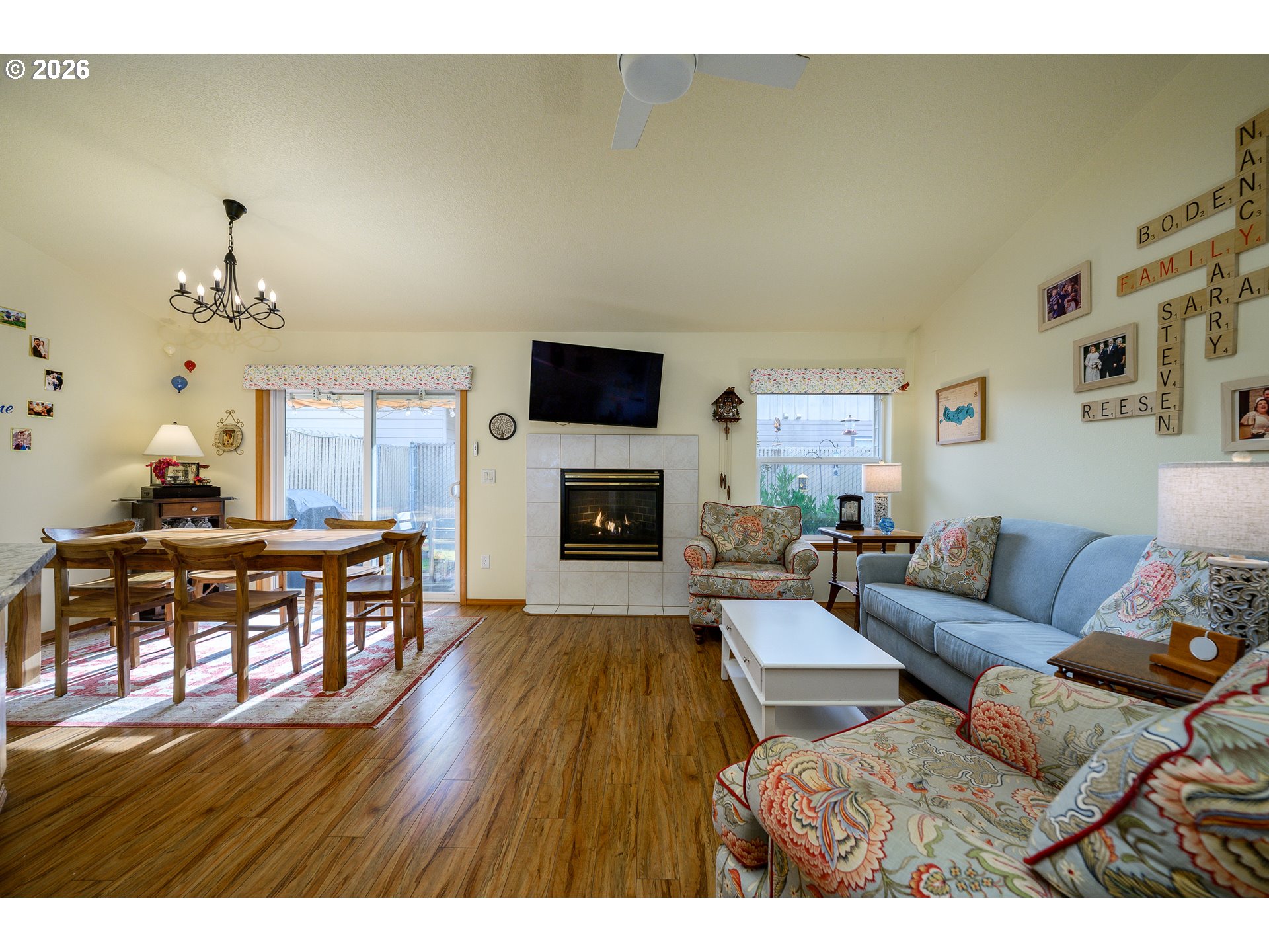 Easy Living, put up your feet and relax in this warm and inviting townhouse style condominium. It is situated in a well maintained and attractive 55+ community and is a stone's throw away from the Spruce Goose & the Evergreen Aviation Museum and a mile down the lane to all that McMinnville's vibrant 3rd Street has to offer. Walk into to the living area with vaulted ceilings and window light that brightens the living room and dining room. The living room has a gas fireplace and a window slider to the backyard patio with retractable awning. The spacious kitchen has stainless steel appliances with gas range and airy breakfast nook. The large primary bedroom is on the main level and features a walk-in closet and an attached bathroom. The laundry closet is conveniently located adjacent to the owner’s suite. Additionally, there are two well-proportioned bedrooms that provide flexibility for guests, a home office or hobbies and a bathroom nestled in between. This home makes it easy to enjoy the best of the Willamette Valley lifestyle, yet without the upkeep of a single-family home. A comfortable and convenient place to call home.