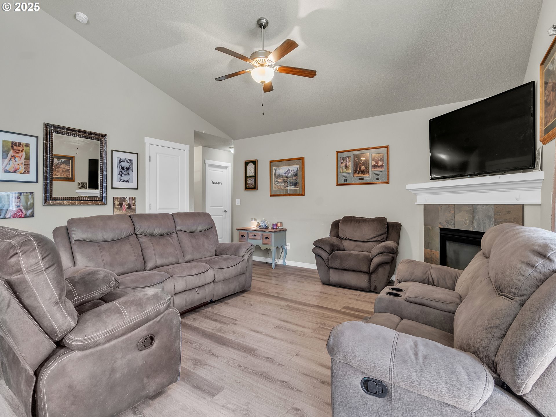 This beautifully maintained 4-bedroom, 2-bath home offers 1,799 square feet of comfortable living space, situated on a level lot with a spacious well-landscaped and fenced backyard. Enjoy the convenience 220 electric in the finished garage, a fully irrigated yard with an underground sprinkler system, a covered patio perfect for outdoor entertaining, and a handy garden shed for extra storage. The majority of the home is thoughtfully designed on a single level, with only one bedroom and a bonus room located on the second floor, providing a private retreat or versatile space. Inside, the home features a cozy gas fireplace in the great room, ideal for relaxing evenings, and granite countertops in the kitchen, which comes fully equipped with all appliances remaining for your convenience. With forced air gas heat and air conditioning, this home offers year-round comfort. It’s truly a must-see—don't miss the opportunity to make it yours!