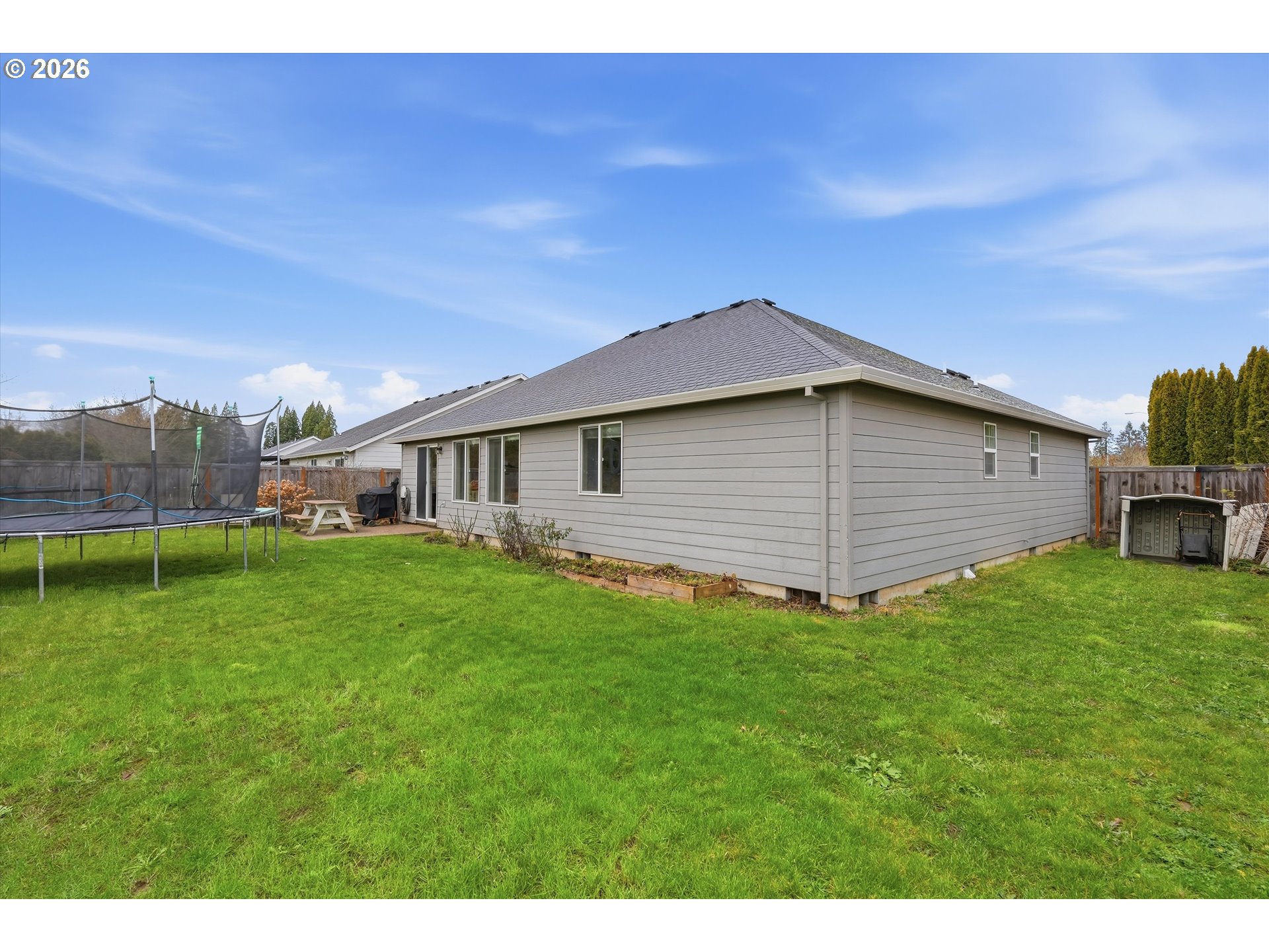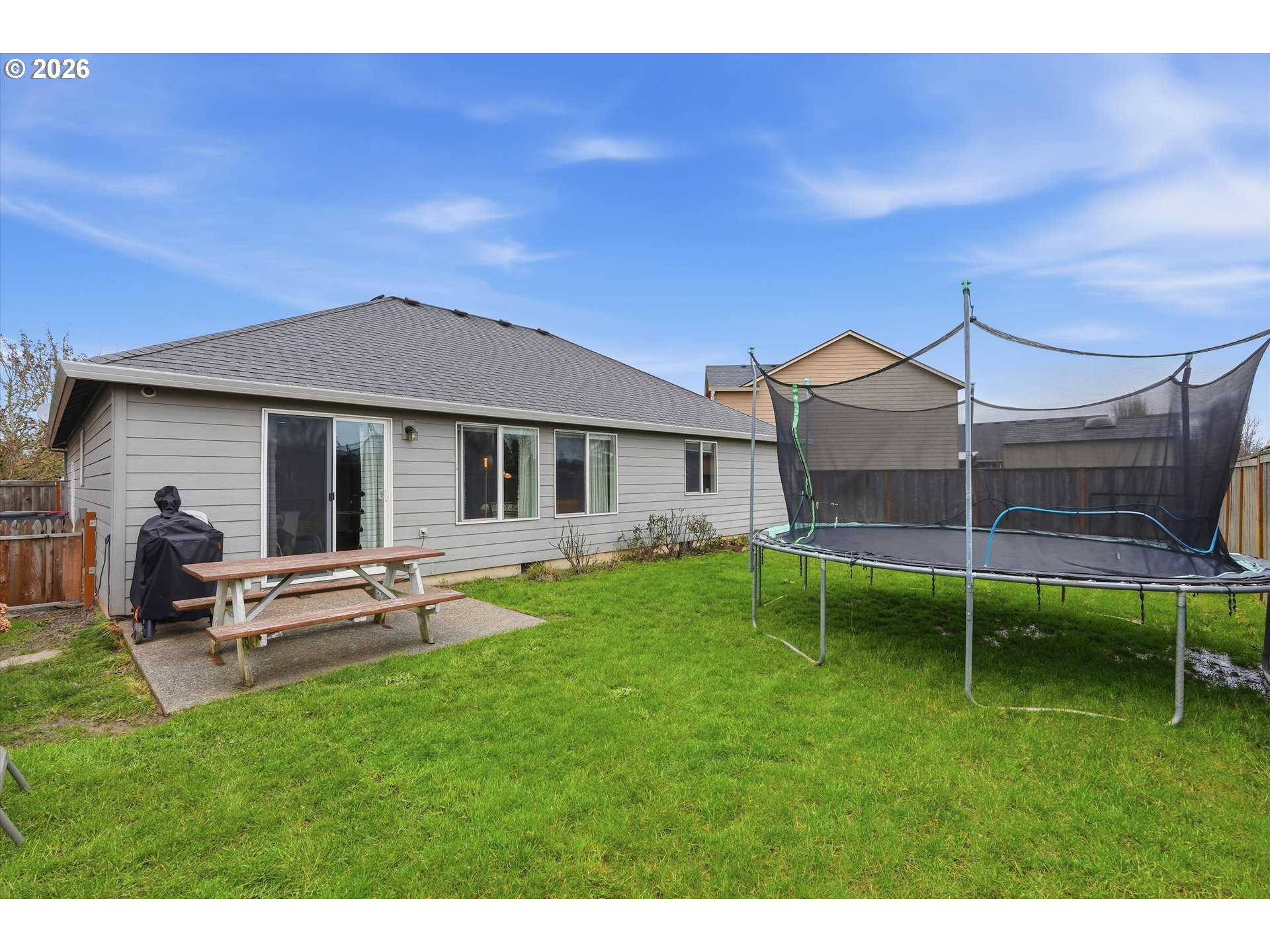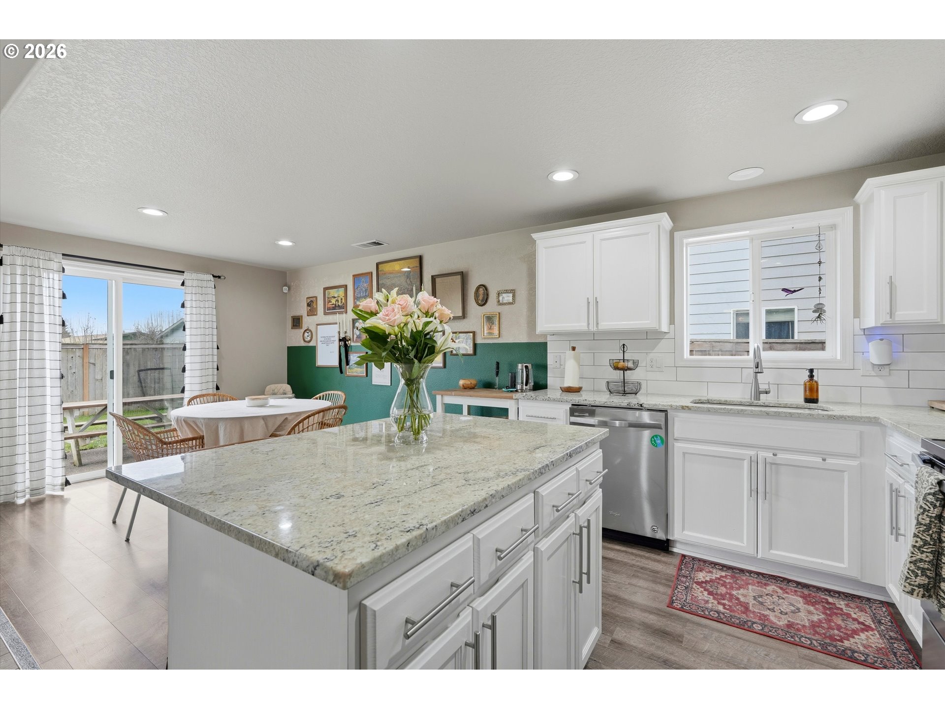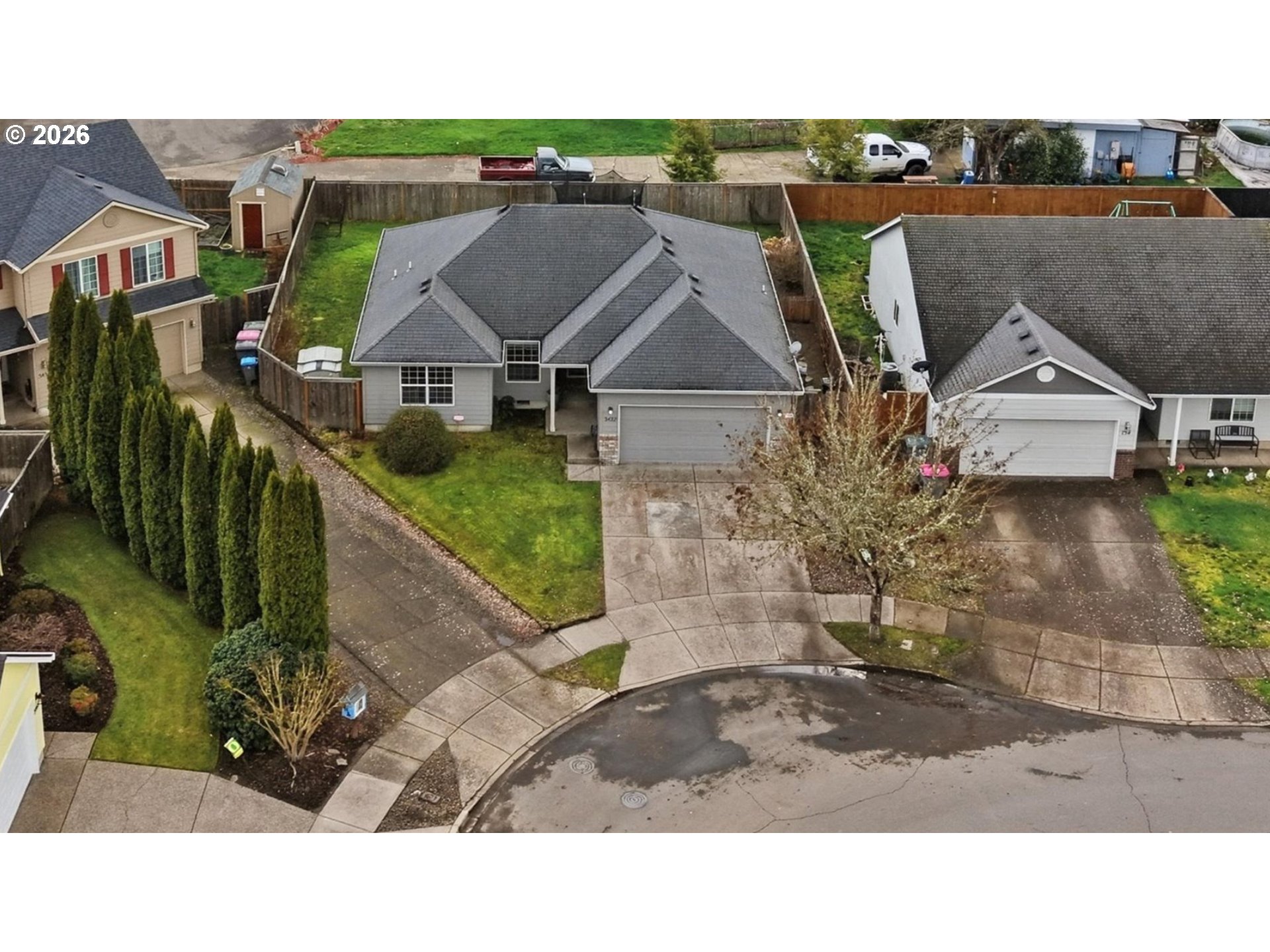 This is the charming Single-Level you've been looking for! The abundant natural light and vaulted ceilings create an airy feel the moment you step inside. The living room features brand new hardwood flooring adding warmth and modern style. The open-concept layout flows seamlessly into the kitchen, complete with granite countertops, a center island, stainless steel appliances and generous prep space. Matching granite in both bathrooms provides an upgraded and stylish look. The spacious primary suite includes a ceiling fan, walk-in closet, and private en-suite bath. Two additional bedrooms allow space for addtl flexibility of guests, a home office, or hobbies. Outside, the fully fenced, level backyard is ready for your vision — whether that’s summer barbecues, gardening, a play area, or all three! The two-car garage includes a newer smart addition of a convenient man door with direct access to the side yard. Located just a short distance to Chegwyn Farms Neighborhood Park and Grandhaven Elementary School, and minutes from McMinnville’s charming downtown and wine country amenities, this home combines comfort, convenience, and value. If you’re looking for move-in ready, single-level living in one of Oregon’s most beloved wine destinations, this home is one to see.