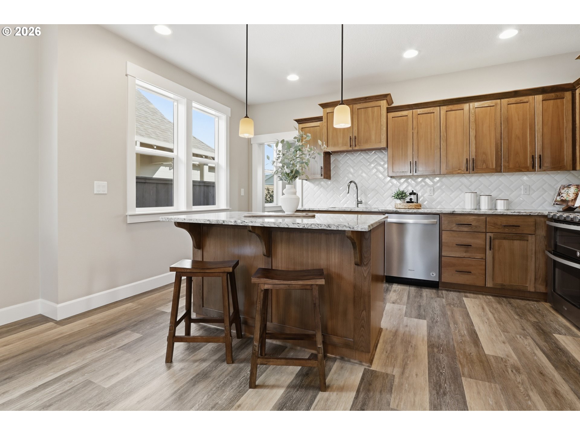 (503) 893-8874Craftsman style bungalow with primary ensuite bedroom and laundry room on main floor. This home lives large with a spacious open great room, dining area with gorgeous custom chandelier and open kitchen with large island. The beautiful soft close wood cabinets compliment the granite countertops and tile backsplash. Stainless steel appliances and a 5 burner gas range with double ovens make this a cooks kitchen. The spacious laundry room has a pantry and extensive built in cabinets adding plenty of storage to this home. All three generous sized additional bedrooms and bathroom are upstairs. The covered front porch is welcoming and the fully fenced backyard includes a covered patio, yard space and paved side yard. Front and rear sprinkler systems. Don't miss out on this highly functional home ... call for a showing today! OPEN HOUSES 2/15 11am-1pm, 2/21 1-3pm and 2/22 2-4pm.