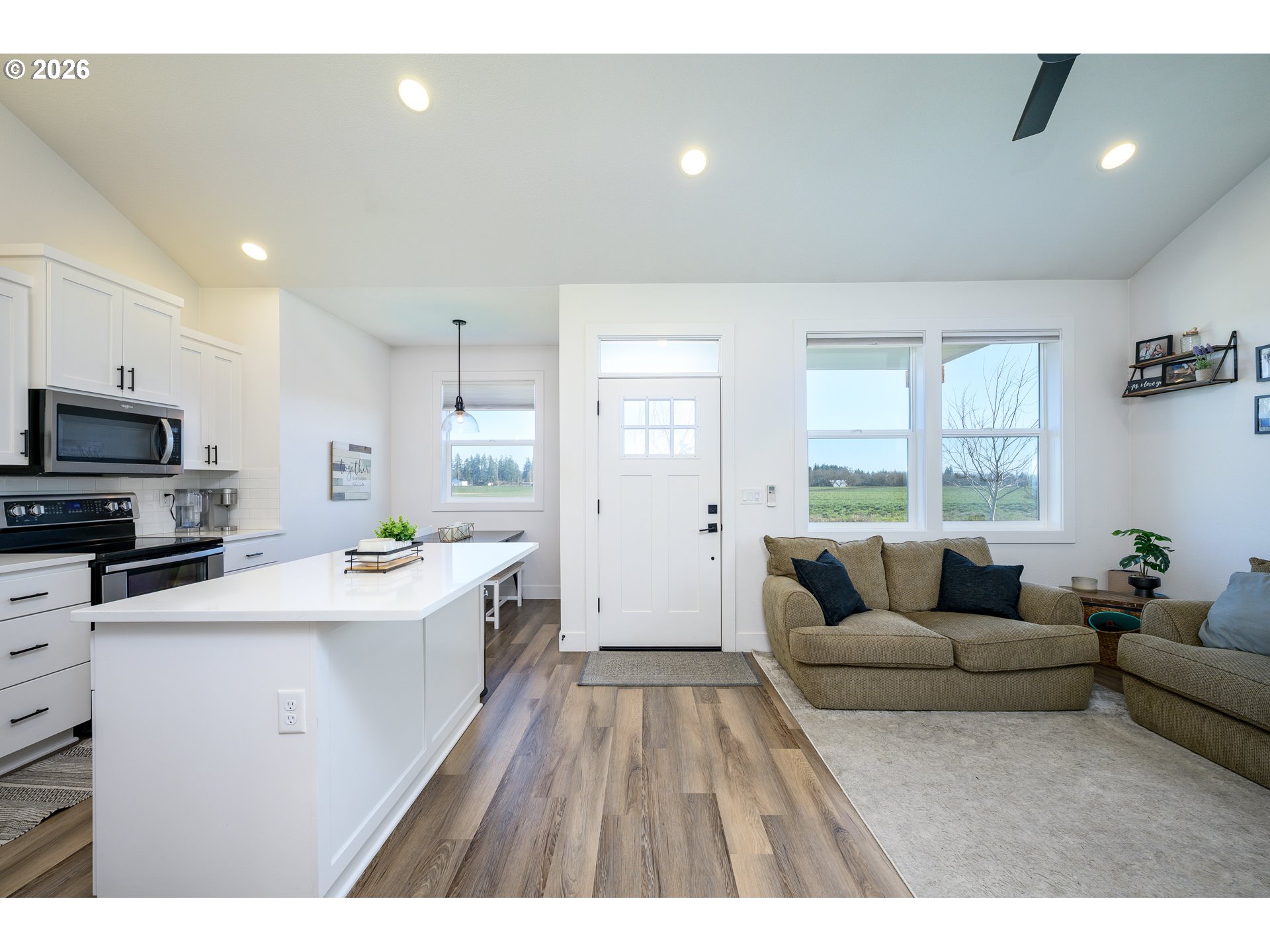 Located in Chegwyn - McMinnville’s first community thoughtfully designed with garages tucked behind the homes - this light-filled cottage offers charming, walkable streets and a timeless neighborhood feel that truly stands out. Inside, tall ceilings, an open layout, and abundant natural light make the home live larger than its square footage. The kitchen is both welcoming and functional with quartz countertops, stainless steel appliances, island seating, and a cozy adjacent nook perfect for morning coffee. Enjoy a comfortable primary suite, plus a second bedroom and full bath for guests or a home office. Outside, mature low-maintenance landscaping adds color and character, with convenient driveway parking leading to the single-car garage. Thoughtfully designed and even better in person - this home simply feels right.
