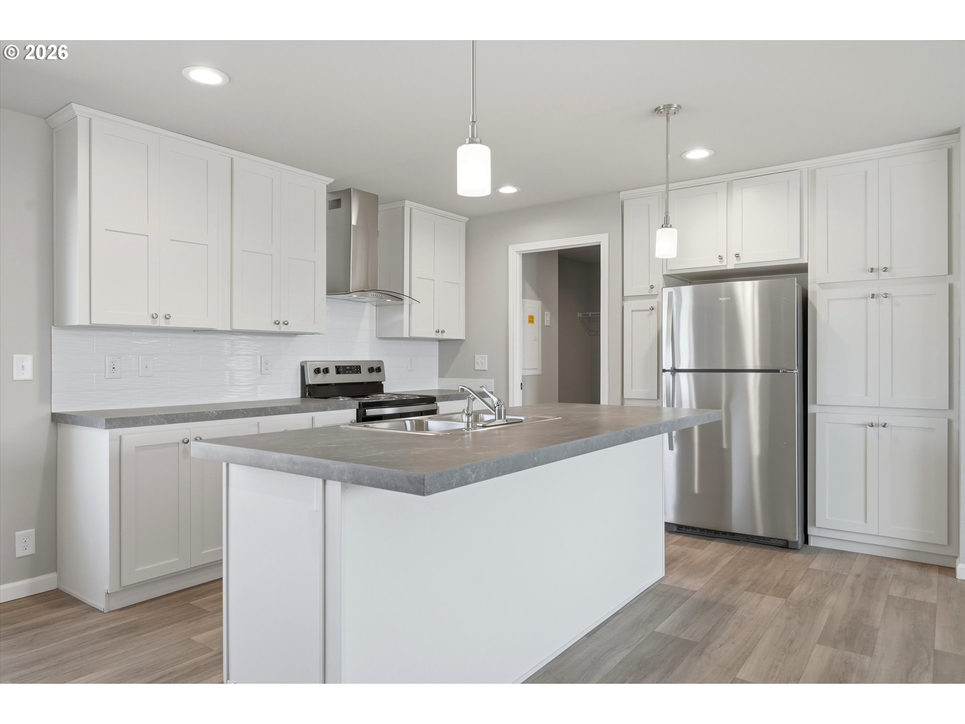 Dishwasher, Disposal, Island, PlumbedForIceMaker, RangeHood, SolidSurfaceCountertop, StainlessSteelApplian