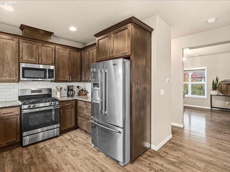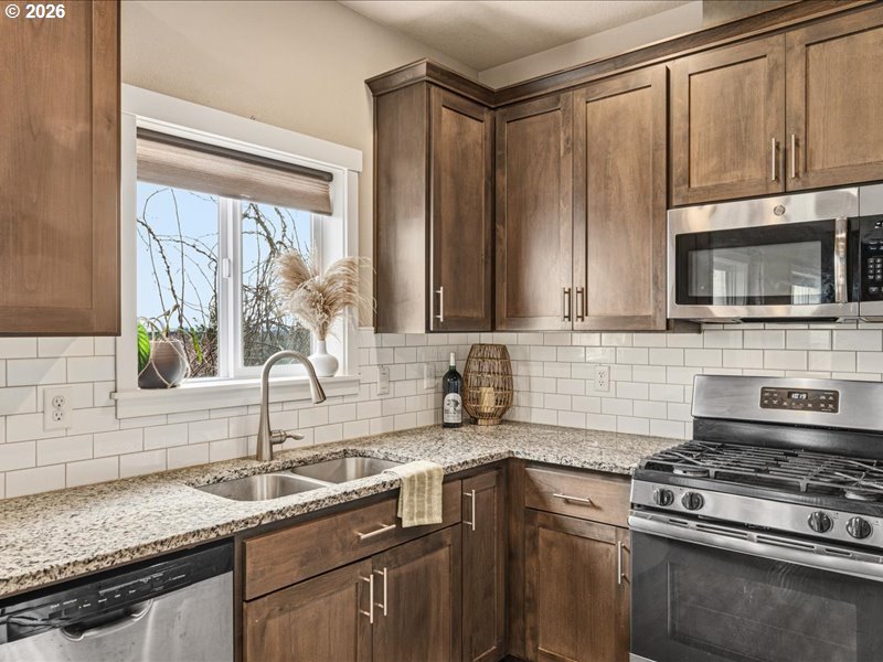 Experience a comfortable blend of privacy and convenience just minutes from the heart of McMinnville. From the main living areas, enjoy views of Mt. Hood and Mt. Jefferson, with the home positioned to take advantage of its surroundings.The living room features a clean, modern built-in and a cozy fireplace, creating a welcoming focal point. Outside, the spacious, level backyard offers a variety of possibilities—whether gardening, entertaining, or simply relaxing—with a covered deck, paved patio area, storage shed, and plenty of usable space.Ideally located near parks and trails, with easy access to McMinnville’s shops, dining, and local wineries.