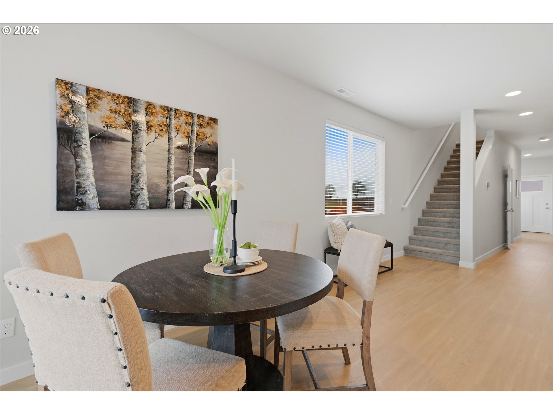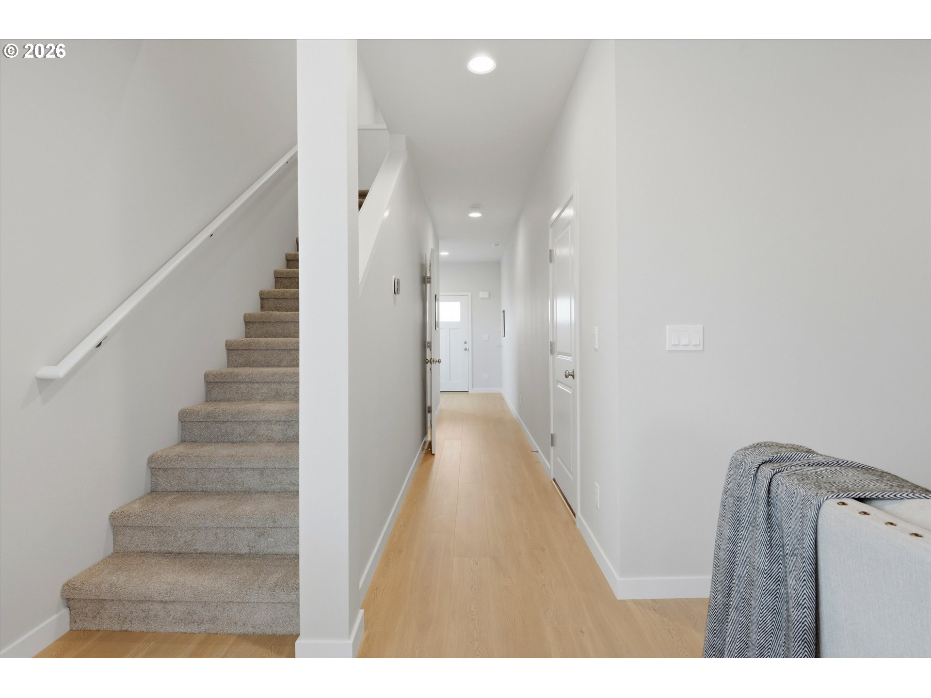 Welcome to Carlton, in the heart of Willamette Valley's Wine Country. Known for its tight-knit community, historic buildings and rural charm, this is an exceptional place to call home. You'll feel a real sense of community while enjoying its charming, walkable downtown corridor and parks. In addition Carlton sits less than 8 miles outside of McMinnville's Historic District where you can enjoy fine restaurants and plenty of shopping. New construction by Chad E. Davis Construction. These contemporary townhome-style residences offer 3 bedrooms and 2.5 baths, designed for effortless, low-maintenance living in Carlton—celebrated for its small-town atmosphere. The main level features 9-foot ceilings and an open-concept great room anchored by a sleek fireplace. The kitchen is thoughtfully designed with modern finishes, stainless steel appliances, quartz countertops, a full tile backsplash, and custom soft-close cabinetry for a refined yet functional feel. Upstairs, the primary suite impresses with coffered ceilings, a spa-inspired bath with quartz counters, and a spacious walk-in closet. Each home includes a fully fenced yard, professional landscaping, and irrigation. Taxes TBD. CALL BROKER FOR CURRENT SPECIALS!