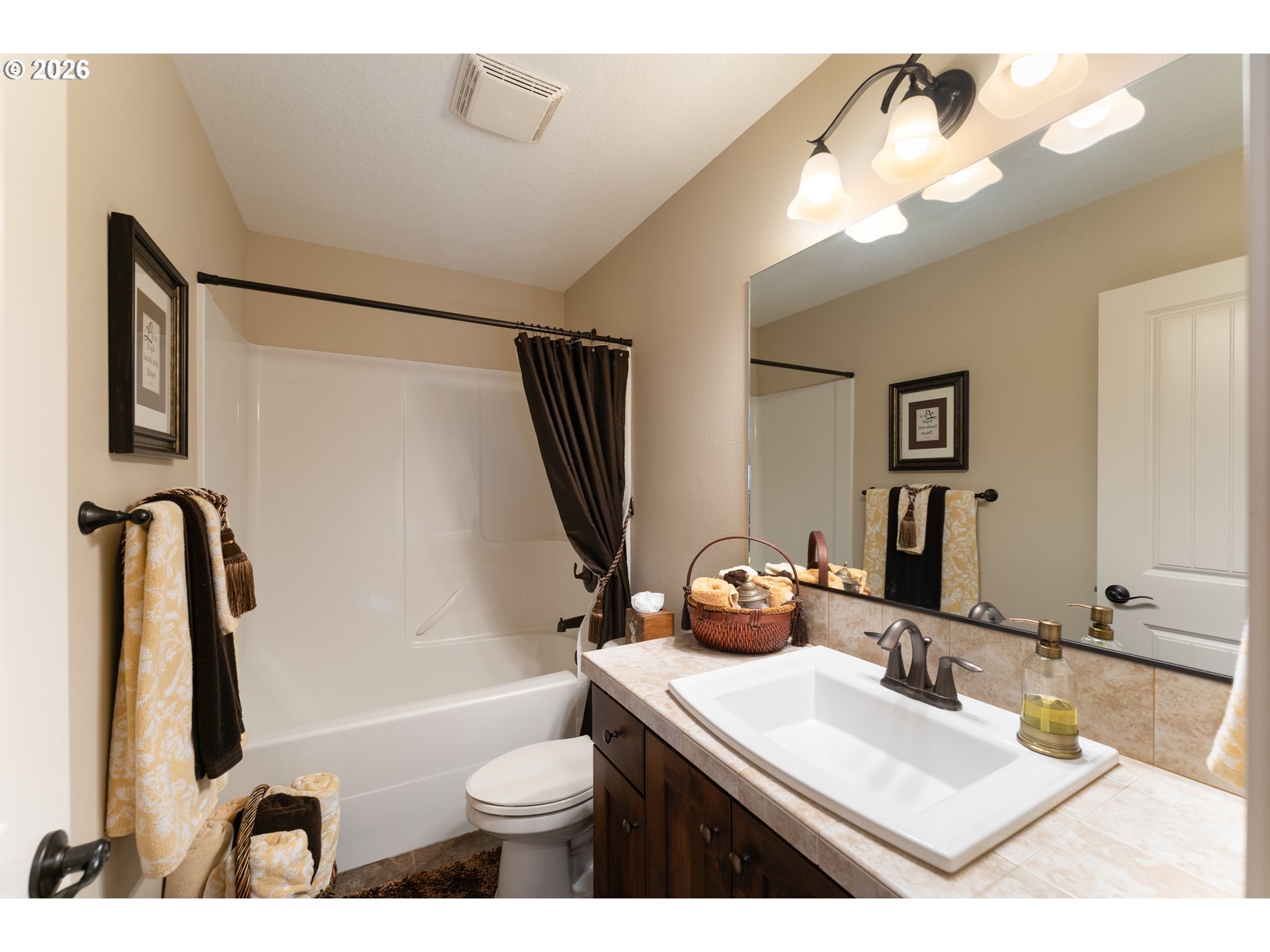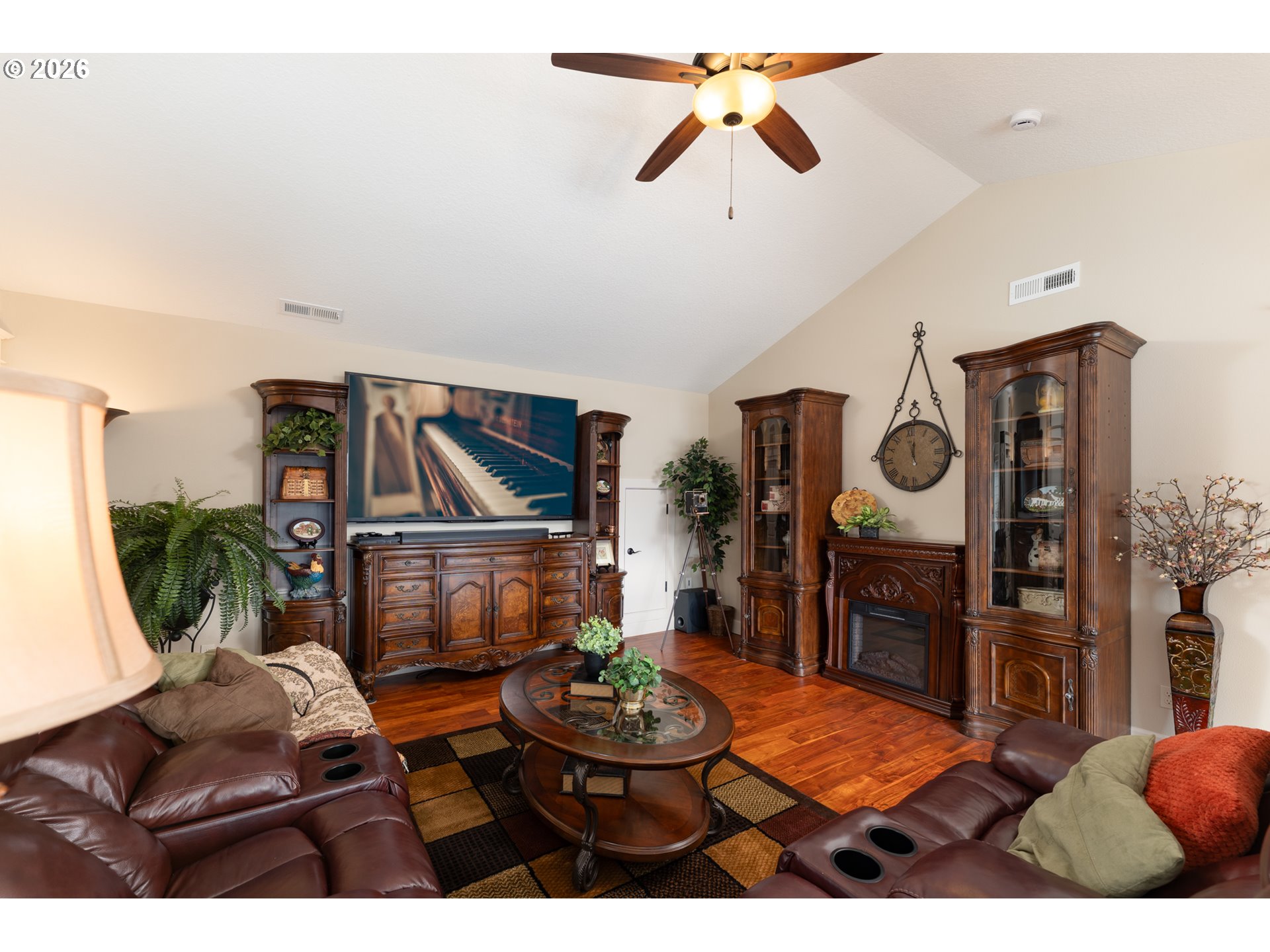 Welcome to this beautiful, meticulously maintained home in the Greens at Springbrook neighborhood, one of Newberg’s most sought-after golf course communities, nestled in the heart of Oregon wine country. This exceptional residence offers a refined blend of elegance and comfort. Spanning 2,445 square feet, the home features 4 bedrooms, 3 full bathrooms and a generous bonus room, thoughtfully curated for everyday living, relaxing or entertaining. A grand entry with soaring ceilings sets a striking first impression, complemented by refined finishes throughout including engineered hardwood floors, dark wood cabinetry, and a chef-inspired kitchen featuring granite countertops, stainless steel appliances, walk-in pantry and a thoughtfully designed coffee and beverage nook. The main-level primary suite offers a private retreat, highlighted by vaulted ceilings, a spa-inspired bath with a separate tiled walk-in shower and soaking tub, and a spacious walk-in closet.The expansive bonus room offers endless versatility for a media lounge, fitness studio, guest space or 5th bedroom. Whether enjoying the beautifully landscaped backyard, relaxing at the nearby park, strolling scenic trails, or golfing at the Chehalem Glenn Golf Course, this home offers an exceptional lifestyle. Ideally located just minutes from boutique shopping, award-winning dining, and world-renowned wineries, this is Willamette Valley living at its finest. Please refer to the features list for a detailed summary of recent improvements.