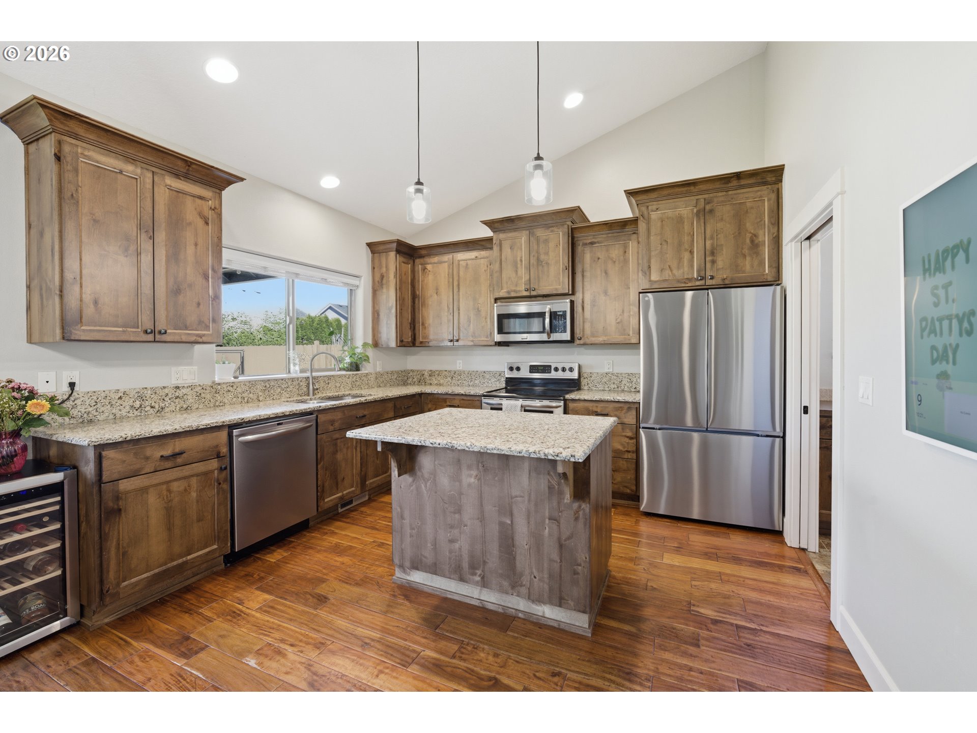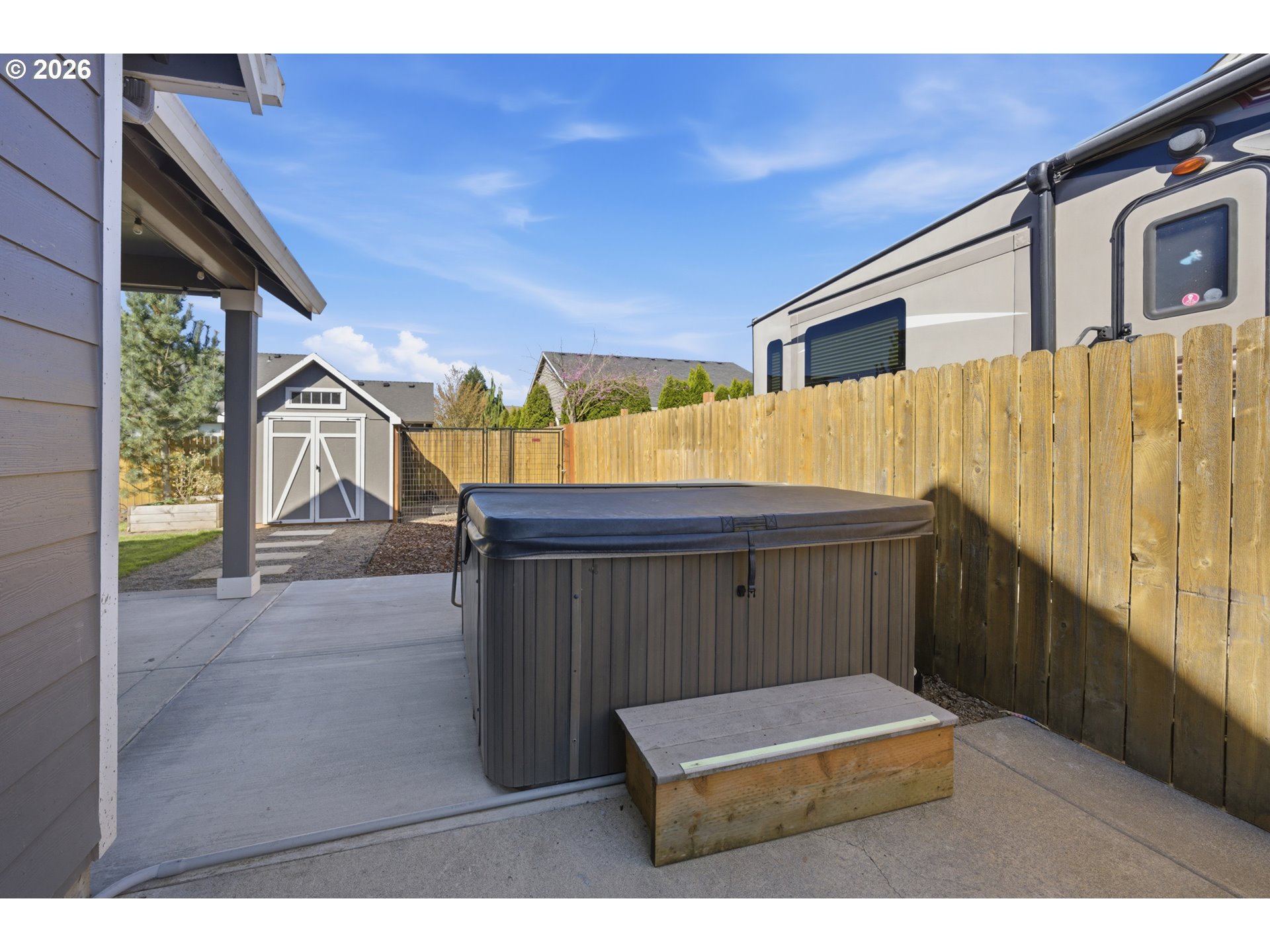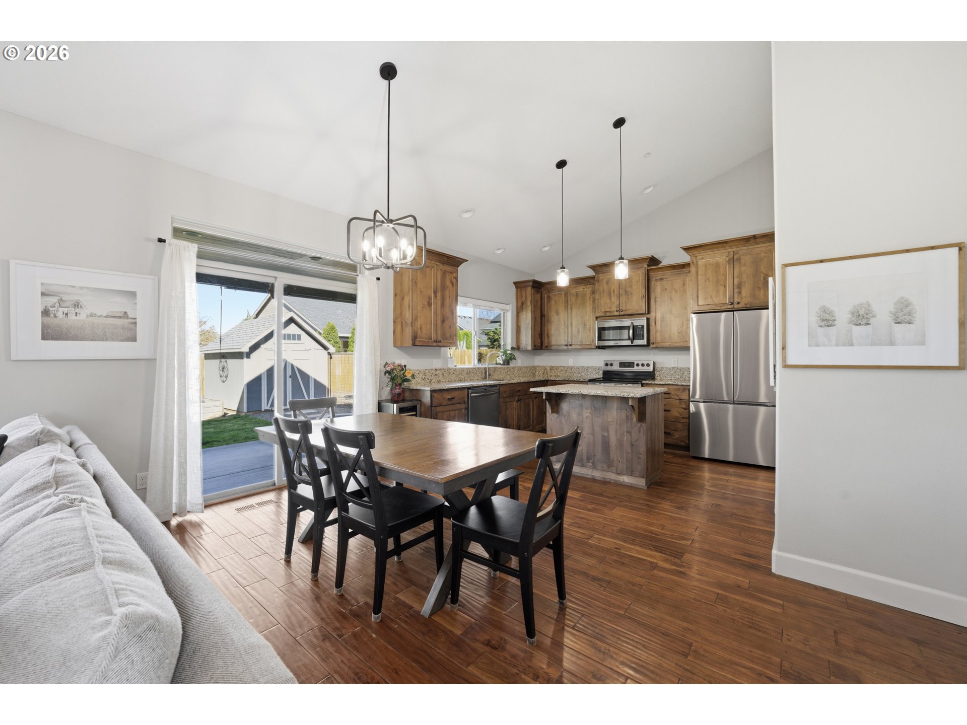 Nestled in the heart of quaint Carlton, this beautifully maintained single-level home on a hard to find 8321sf lot lives larger than its footprint and offers an inviting blend of comfort and style. The great room floor plan is both functional and comfortable - perfect for everyday living, featuring soaring, vaulted ceilings complemented by an abundance of natural light. The recently updated bathrooms add a touch of modern elegance with stunning luxury vinyl tile, upscale countertops and handsome cabinets. The kitchen offers an XL pantry, a good sized island, stainless steel appliances, warm/rich hardwood floors and beautiful countertops. All of the bedrooms are generous in size and are vaulted. An exceptionally spacious fenced backyard has a lot to offer - a roomy covered patio, a freestanding hot, a fenced dog run, a tool shed, a great space for parking of a boat or trailer and mature landscaping. From the moment you arrive, the charming curb appeal sets the tone for what awaits inside. This lovingly cared for home is truly move-in ready and a standout in desirable Carlton.