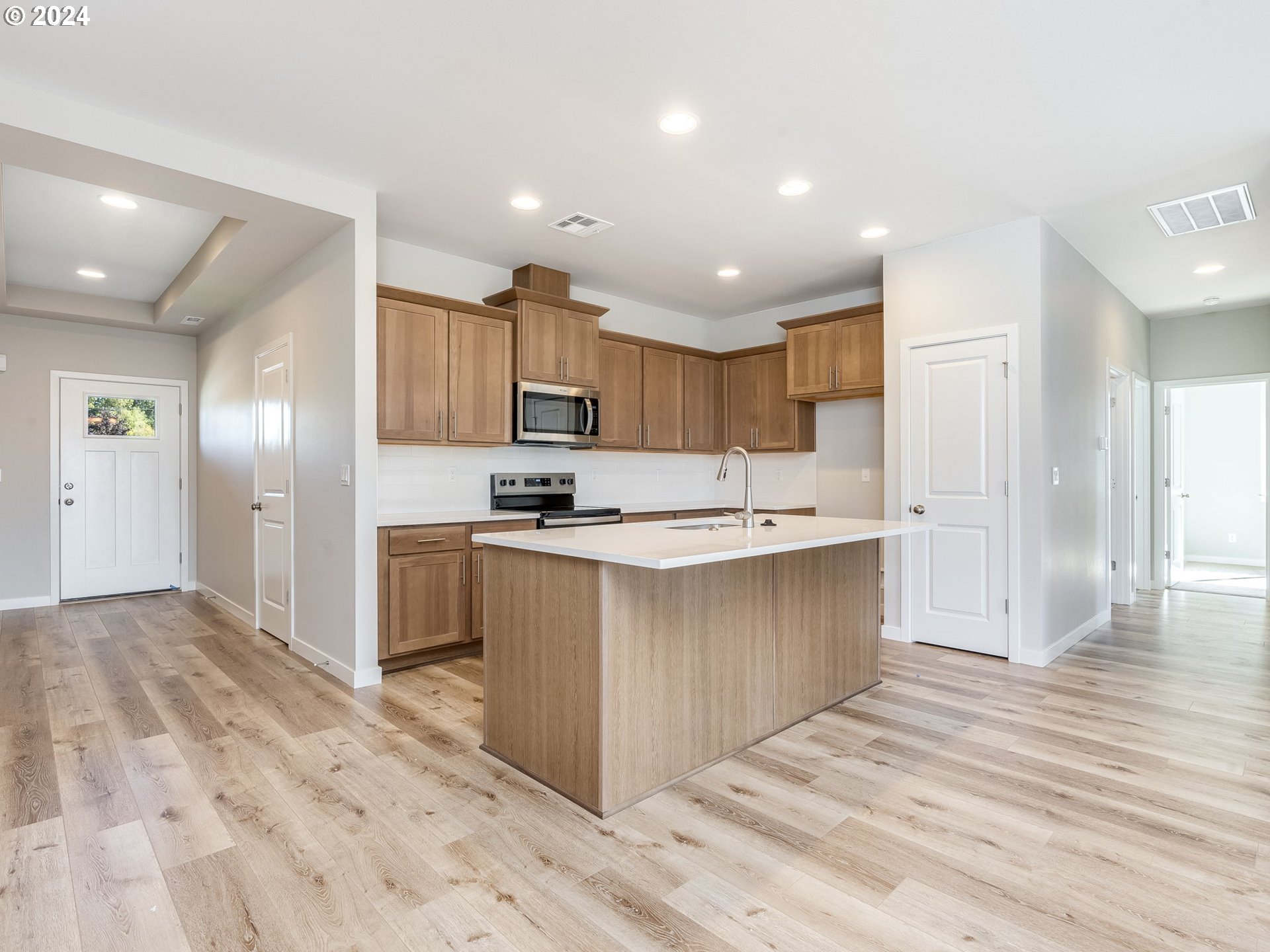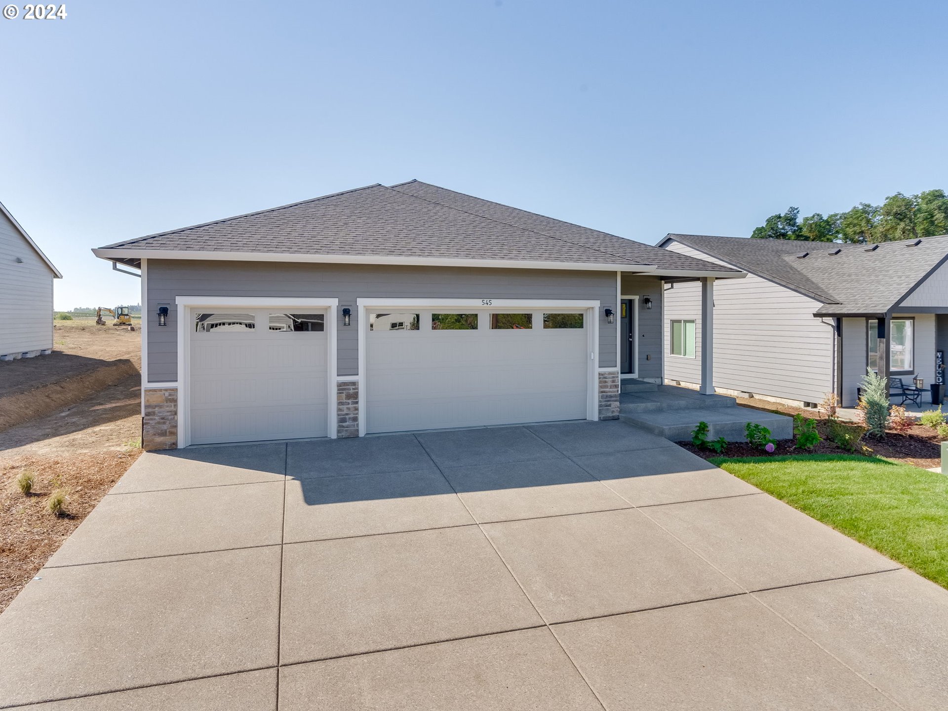 (503) 893-8874New One level Chad E Davis Built home. MODEL HOME OPEN SAT/SUN 12-4PM. 9ft ceilings with Great room and Fireplace. Primary suite with full bath including soaker tub and walk in closet. Well-appointed kitchen with quartz counters, full tiled backsplash and slow close cabinet drawers and doors. Front yard landscaping with irrigation included. Taxes TBD. Plans, specs and pricing subject to change without notice.