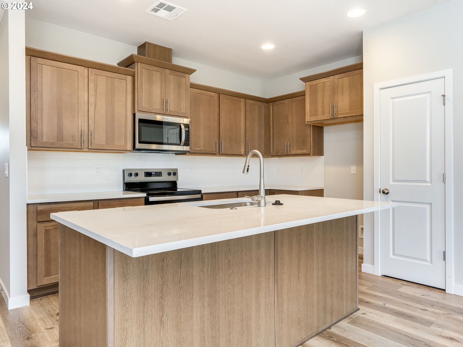 Dishwasher, Disposal, FreeStandingRange, Island, Microwave, Pantry, PlumbedForIceMaker, Quartz, SolidSurface