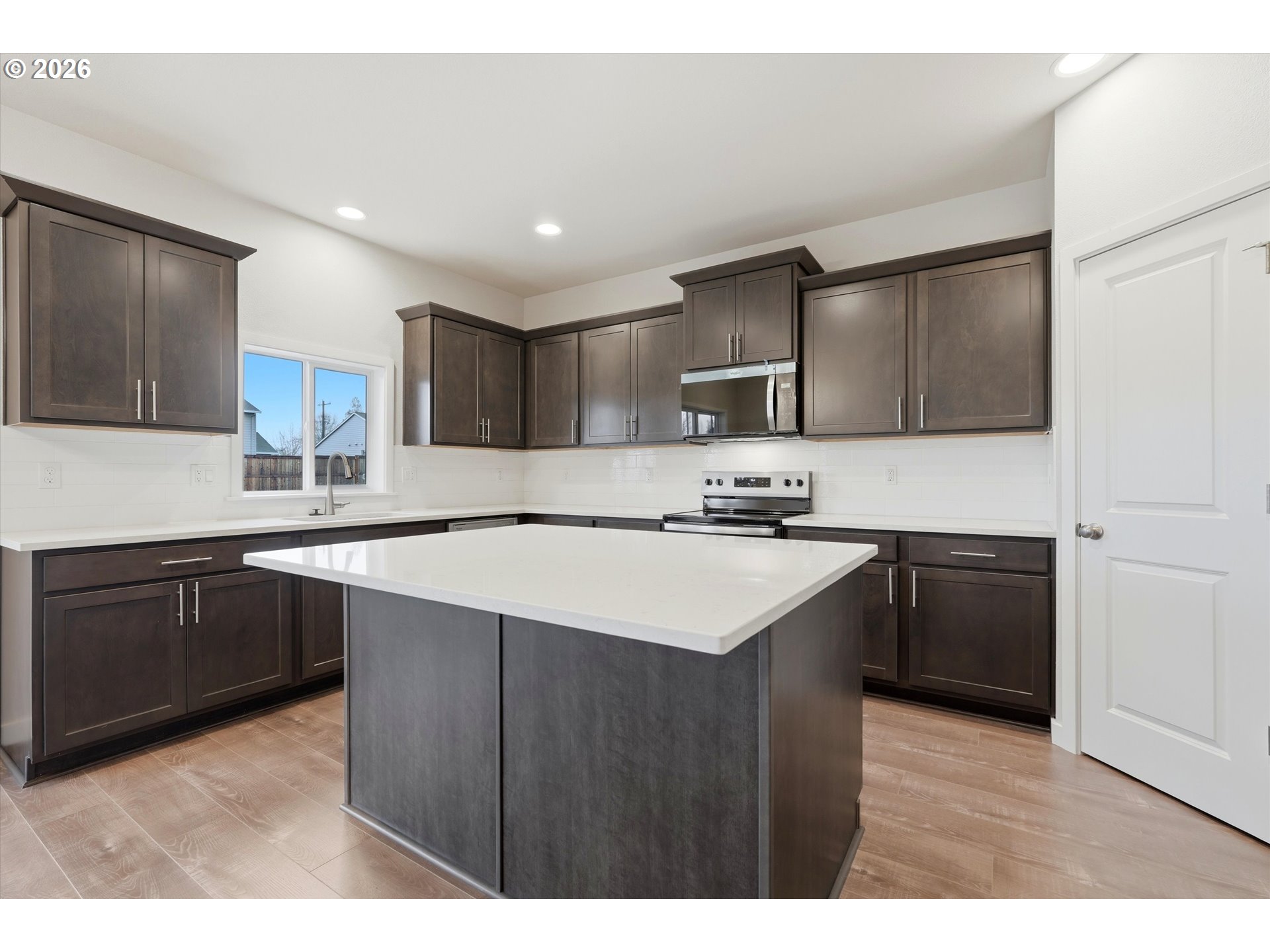 Dishwasher, Disposal, FreeStandingRange, Island, Microwave, Pantry, PlumbedForIceMaker, Quartz, SolidSurface