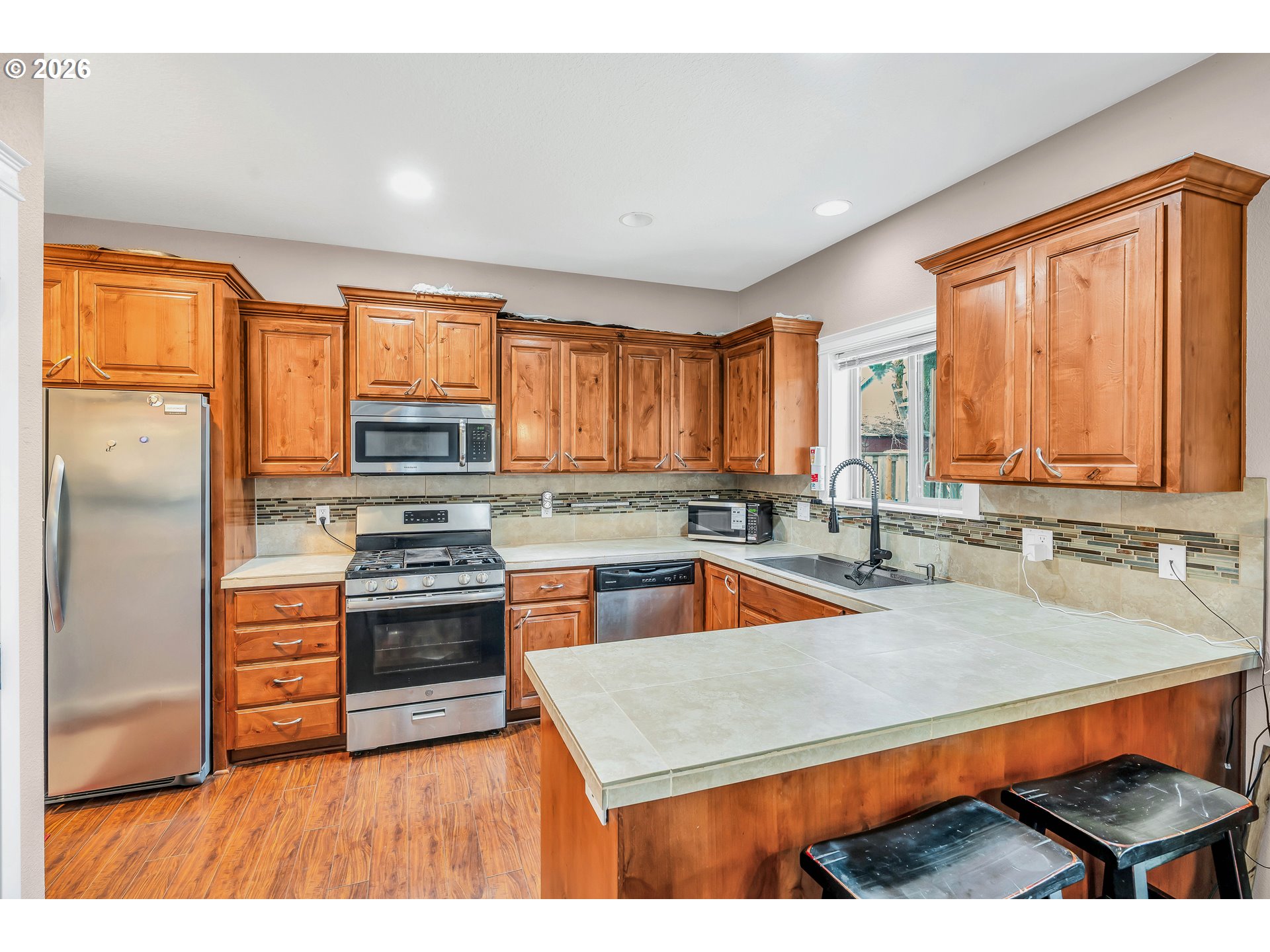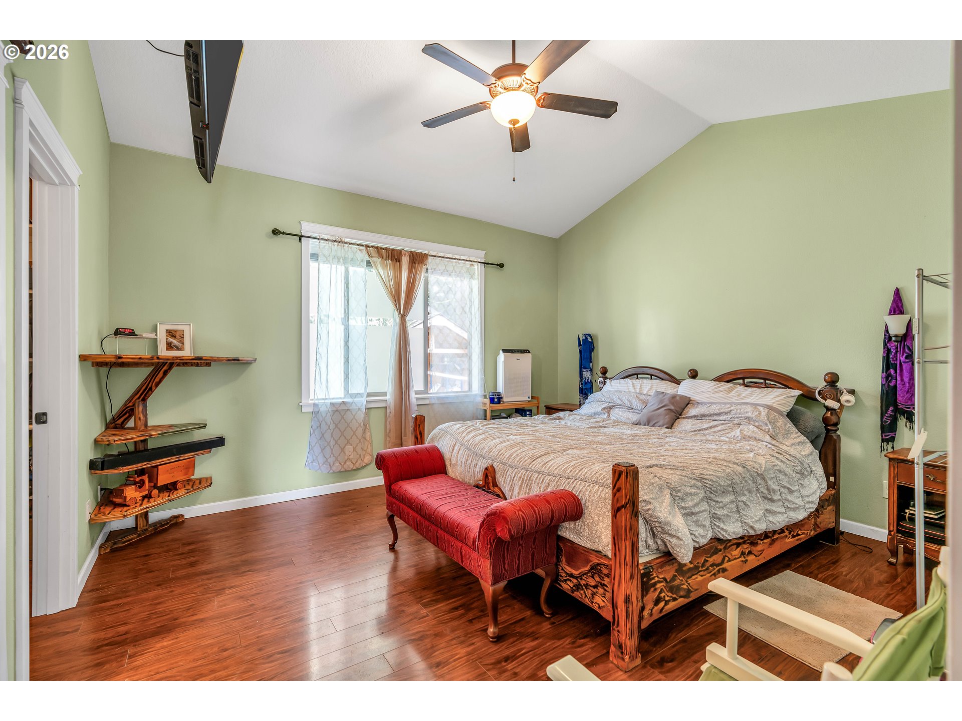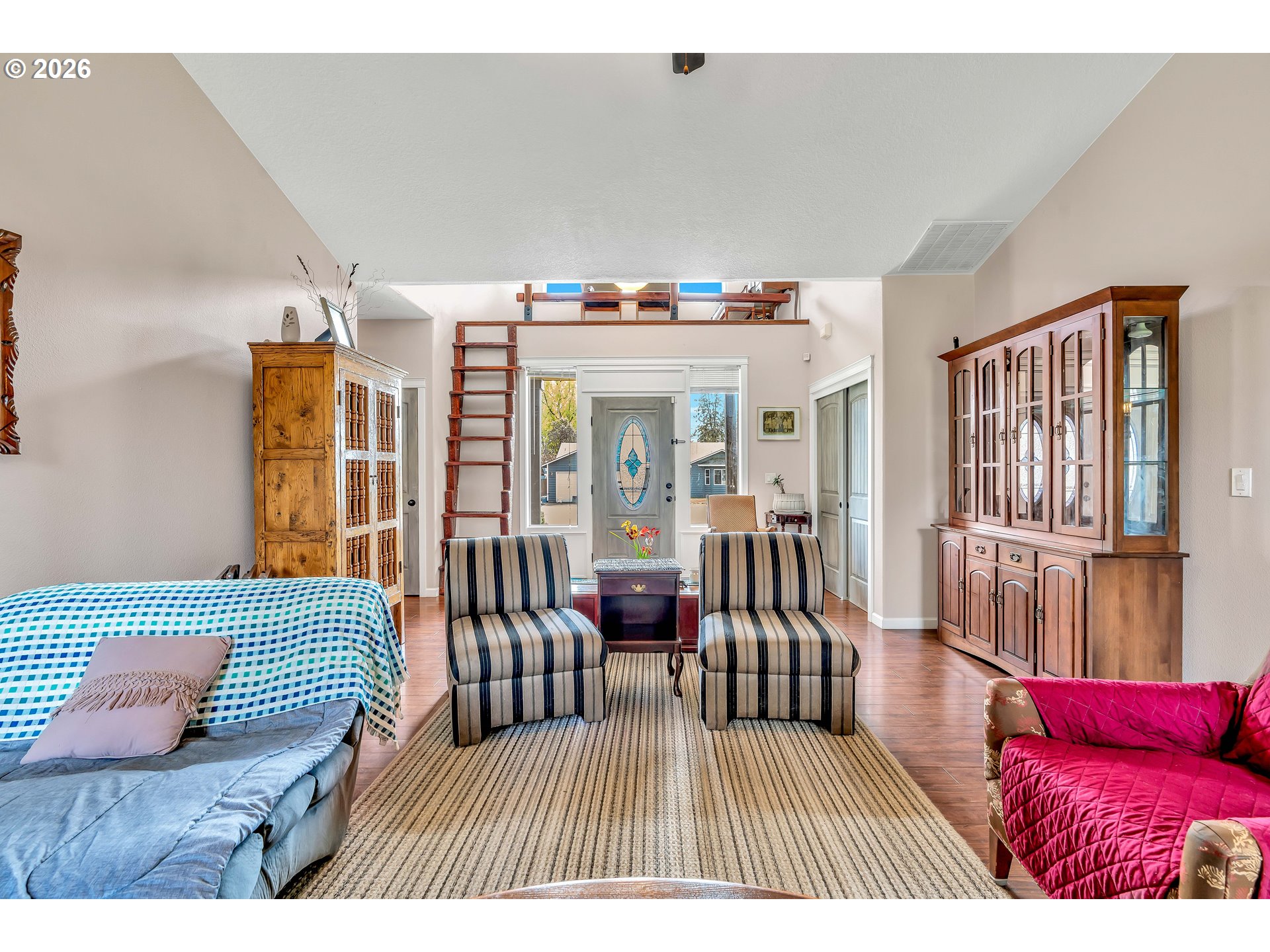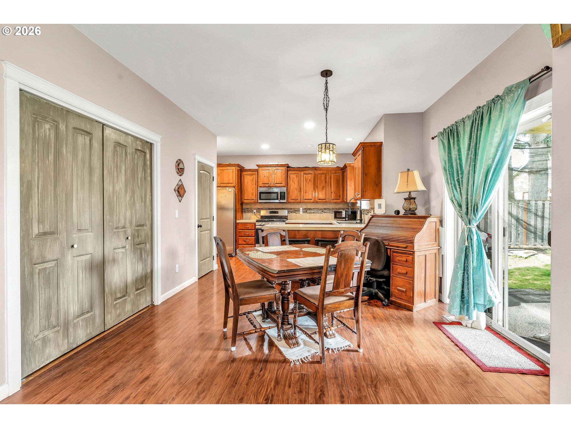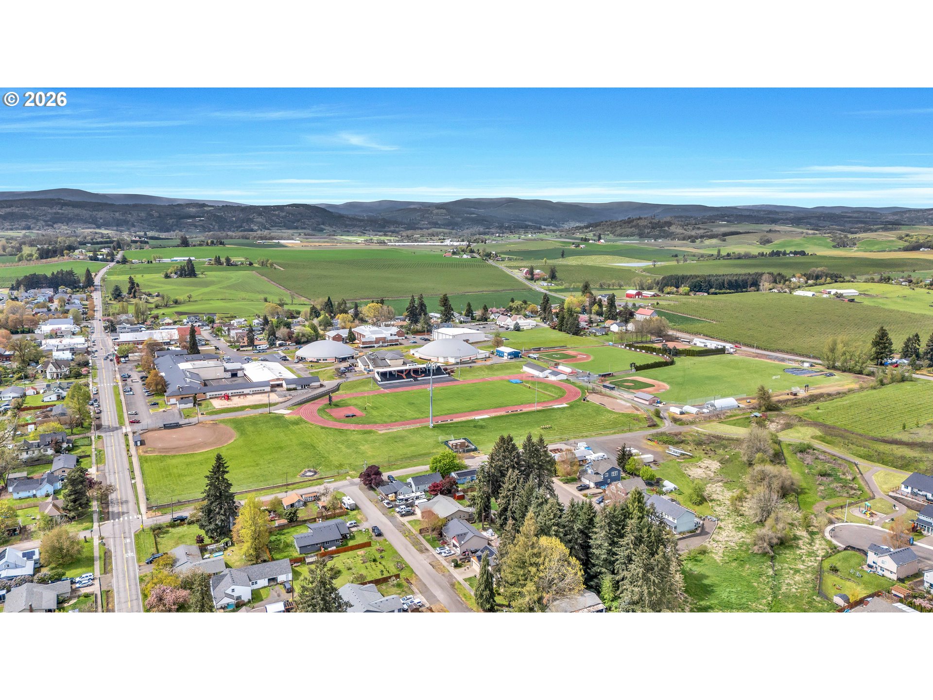 Welcome to this charming single-level home nestled in the heart of Yamhill, where small-town warmth meets the beauty of Oregon wine country. Full of character and thoughtful design, this home offers a bright, inviting layout with hardwood floors flowing through the living and dining areas, creating a warm and timeless feel.The spacious living room is a true centerpiece, featuring soaring vaulted ceilings, abundant natural light, and a cozy fireplace that makes the space feel both open and comfortable. The dining area is perfectly positioned with sliding doors that lead to the backyard, creating an effortless indoor-outdoor connection—ideal for entertaining or enjoying quiet evenings at home.The primary suite continues the airy feel with its own vaulted ceilings and ceiling fan, along with a private ensuite bathroom complete with double sinks and a walk-in shower.Step outside to a generously sized, fully fenced yard shaded by mature, beautiful trees—offering privacy, space to play or garden, and a peaceful setting to unwind. A covered patio extends your living space outdoors, making it easy to enjoy the outdoors year-round.Located in a quiet, welcoming community known for its rolling farmland and proximity to renowned vineyards, this home offers the perfect balance of tranquility and convenience—all just a short drive to the charm of downtown Yamhill and surrounding wine country destinations.A rare opportunity to own a home that blends comfort, character, and the relaxed lifestyle of Oregon’s countryside.