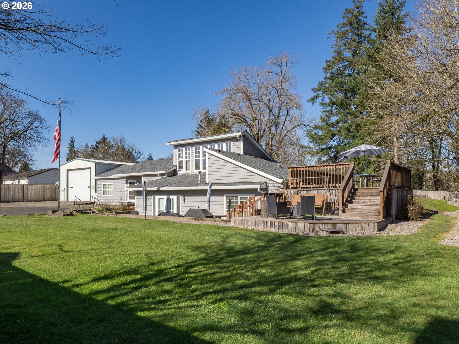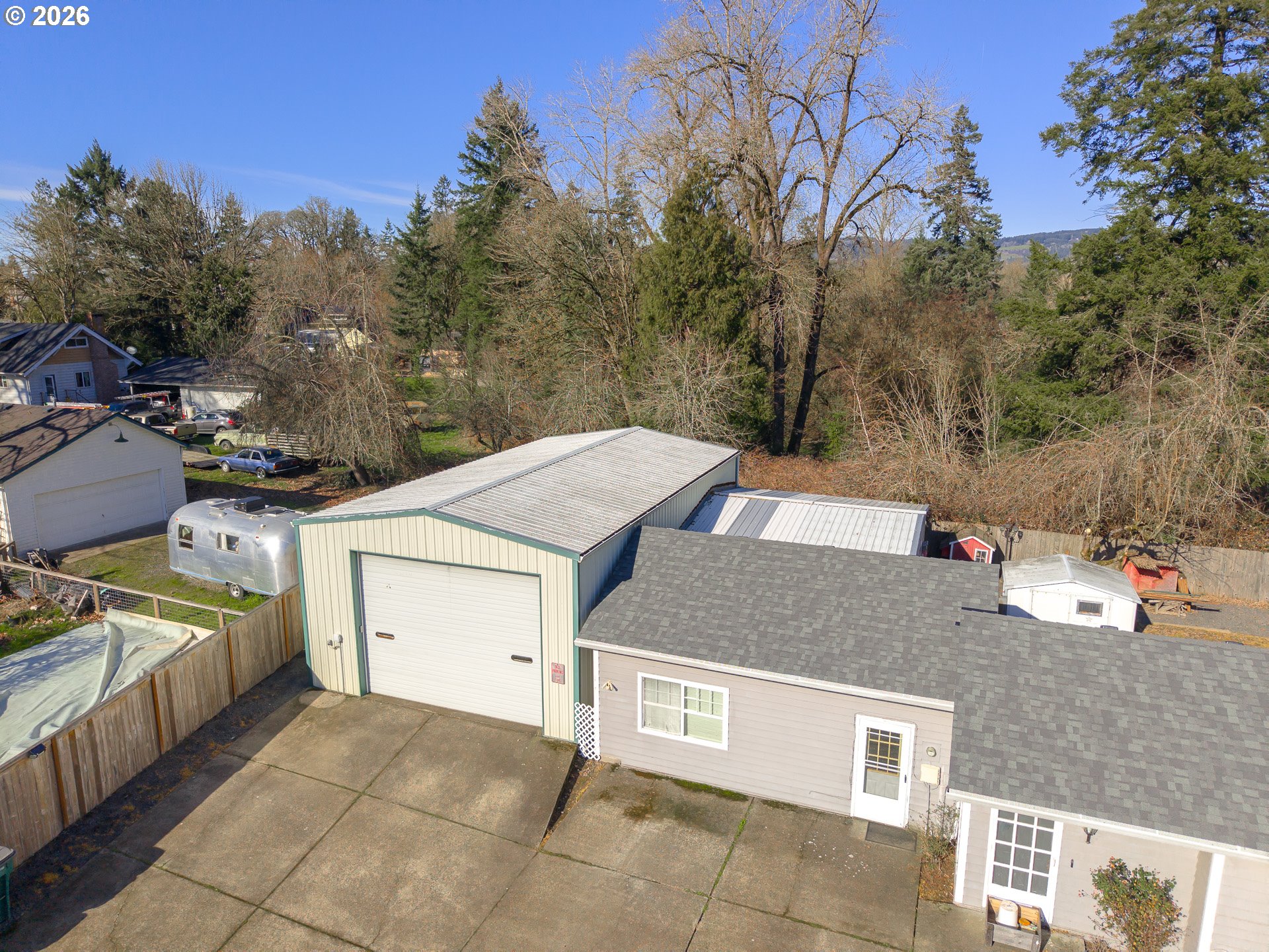 Interior photos coming soon, but this is one you will not want to miss. Tucked onto a private half acre surrounded by beautiful mature trees, this property offers a rare combination of seclusion and convenience just minutes from town, all overlooking peaceful Hess Creek. The contemporary home features vaulted ceilings and distinctive architectural touches that create interesting, light filled spaces throughout. Recent improvements in the last two years include a new roof, a new fence, a cozy pellet stove added to the living room, and an updated dining room light fixture. Outside is where the possibilities really open up. The impressive 996 square foot shop includes a mezzanine for additional storage or workspace, soaring ceilings, a large garage door, and 220 power, ideal for hobbies, projects, vehicles, or a home based business. A separate soundproof storage building with electricity and insulation adds even more flexibility for equipment, studio use, or secure storage. Private, versatile, and full of potential, this is a unique opportunity to create your own retreat while staying close to everything you need.
