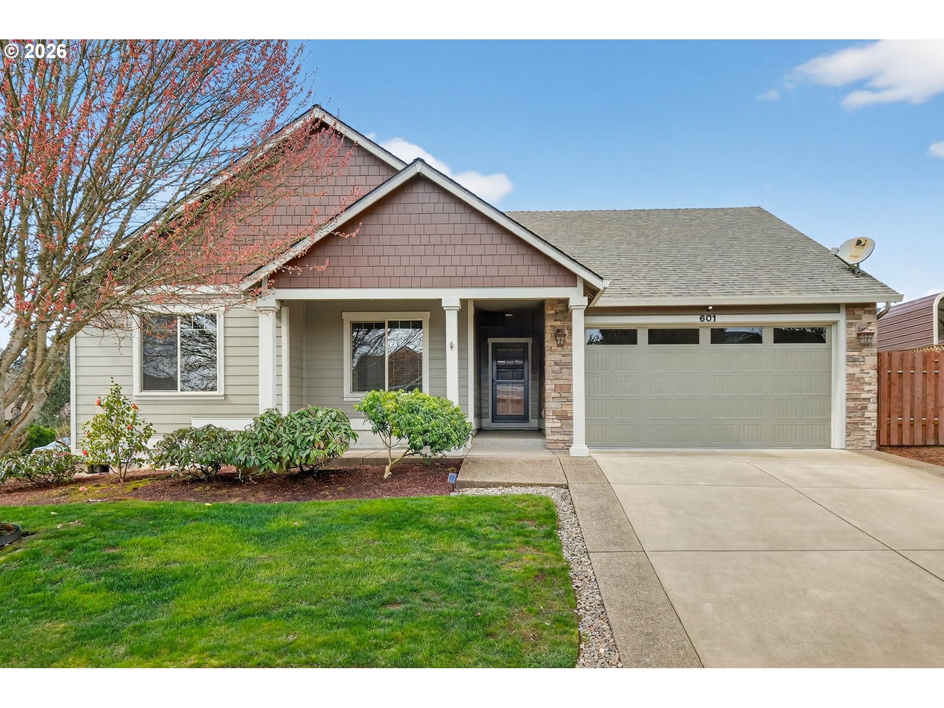 (503) 893-8874Enjoy wine country living in this beautifully maintained home on a spacious corner lot featuring one of the more desirable floorplans in the community. Located in charming Carlton, you’ll love the small-town feel with convenient access to McMinnville and Newberg for shopping, dining, and wineries. Major updates provide peace of mind, including a new heat pump installed by Roth Heating & Cooling in 2024 that has been professionally maintained and a freshly painted exterior in 2025 that enhances the home’s curb appeal. Beautiful hardwood floors run through much of the home, adding warmth and timeless style. The living room features vaulted ceilings, wiring for surround sound, and an abundance of windows that fill the space with natural light while offering peaceful views of the backyard. The spacious kitchen offers high-end cabinetry, a large pantry, and a corner sink overlooking the serene backyard, creating a bright and inviting space for cooking and gathering. The dining room features a built-in with shelving, counter space, and cabinetry that adds both function and beauty, giving the space a custom feel you don’t often find in a typical builder home. The laundry room includes counter space and ample cabinetry for convenient storage and organization. The primary suite provides a relaxing retreat with a walk-in closet, soaker tub, brand-new shower door, and a private slider leading directly to the patio. The backyard is designed for easy outdoor living with a professionally installed covered patio (2023), perfect for relaxing or entertaining. The manicured lawn has been professionally maintained and fertilized, and the garden beds include drip irrigation with dedicated watering systems for the arborvitae to keep the landscaping thriving. A convenient storage shed offers ideal space for garden tools and outdoor equipment. Nice, wide lot with possible RV/boat parking with double gate.