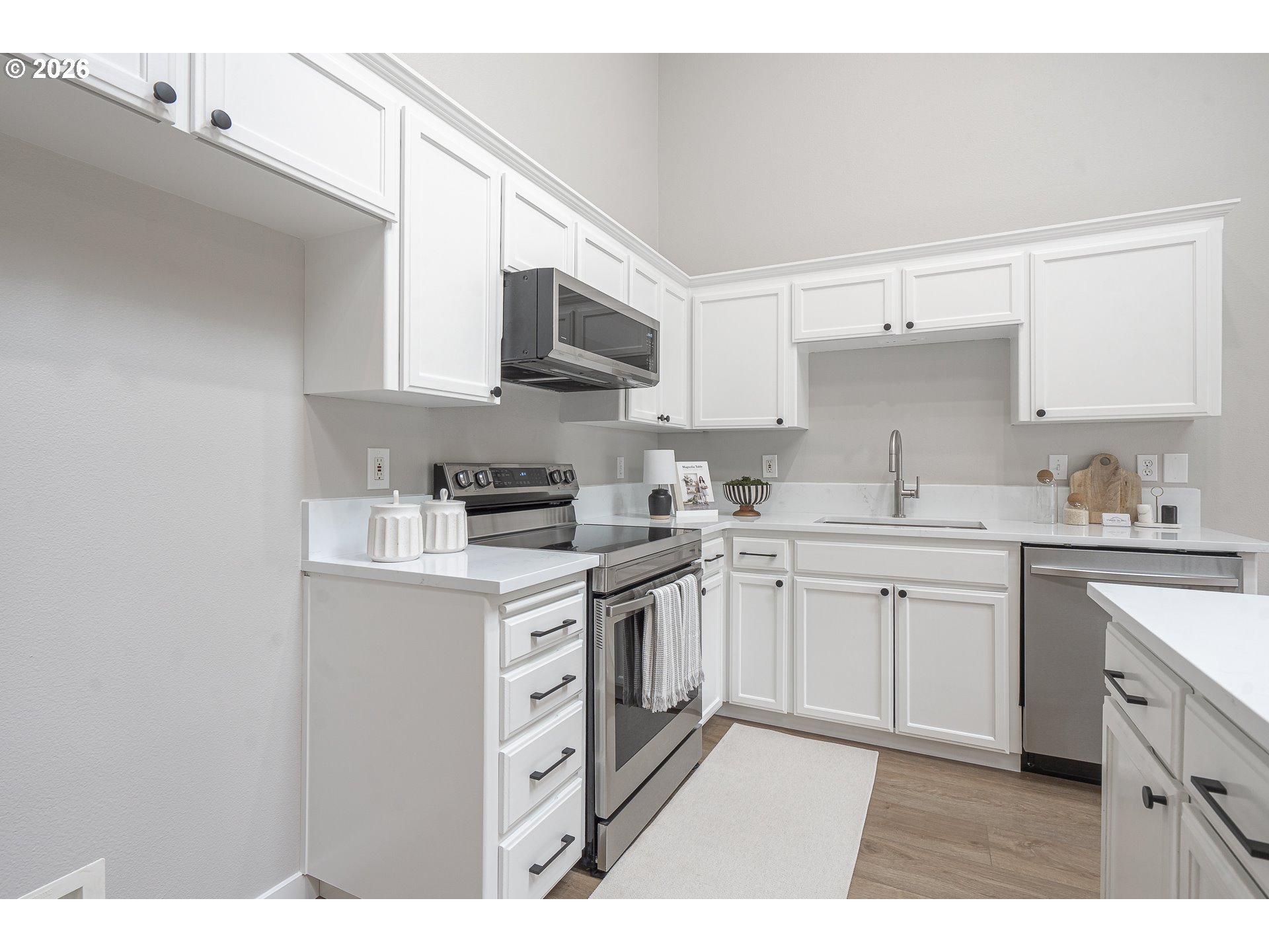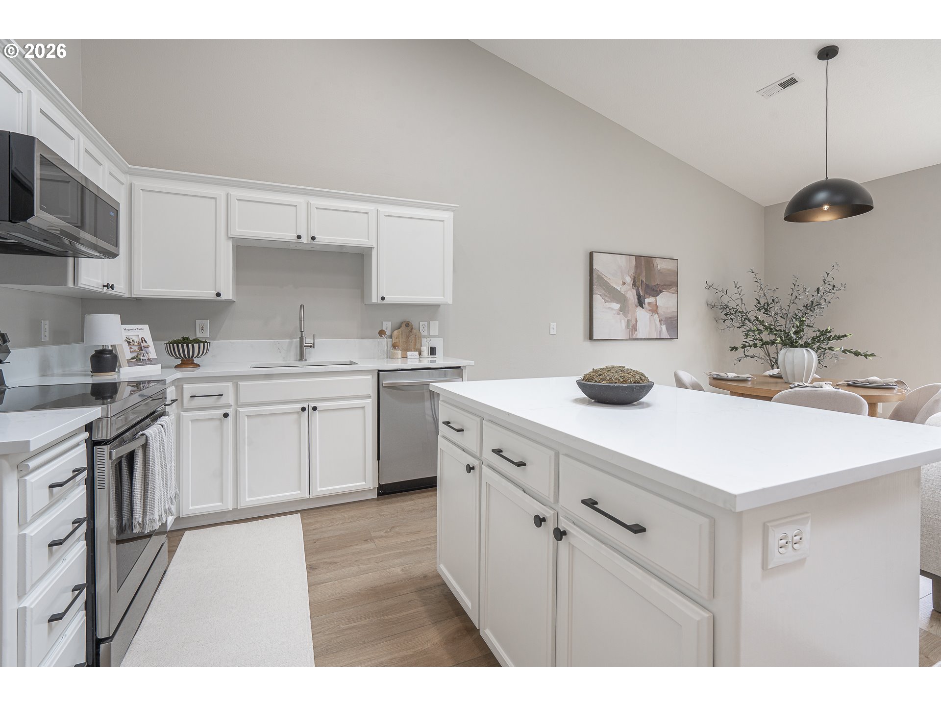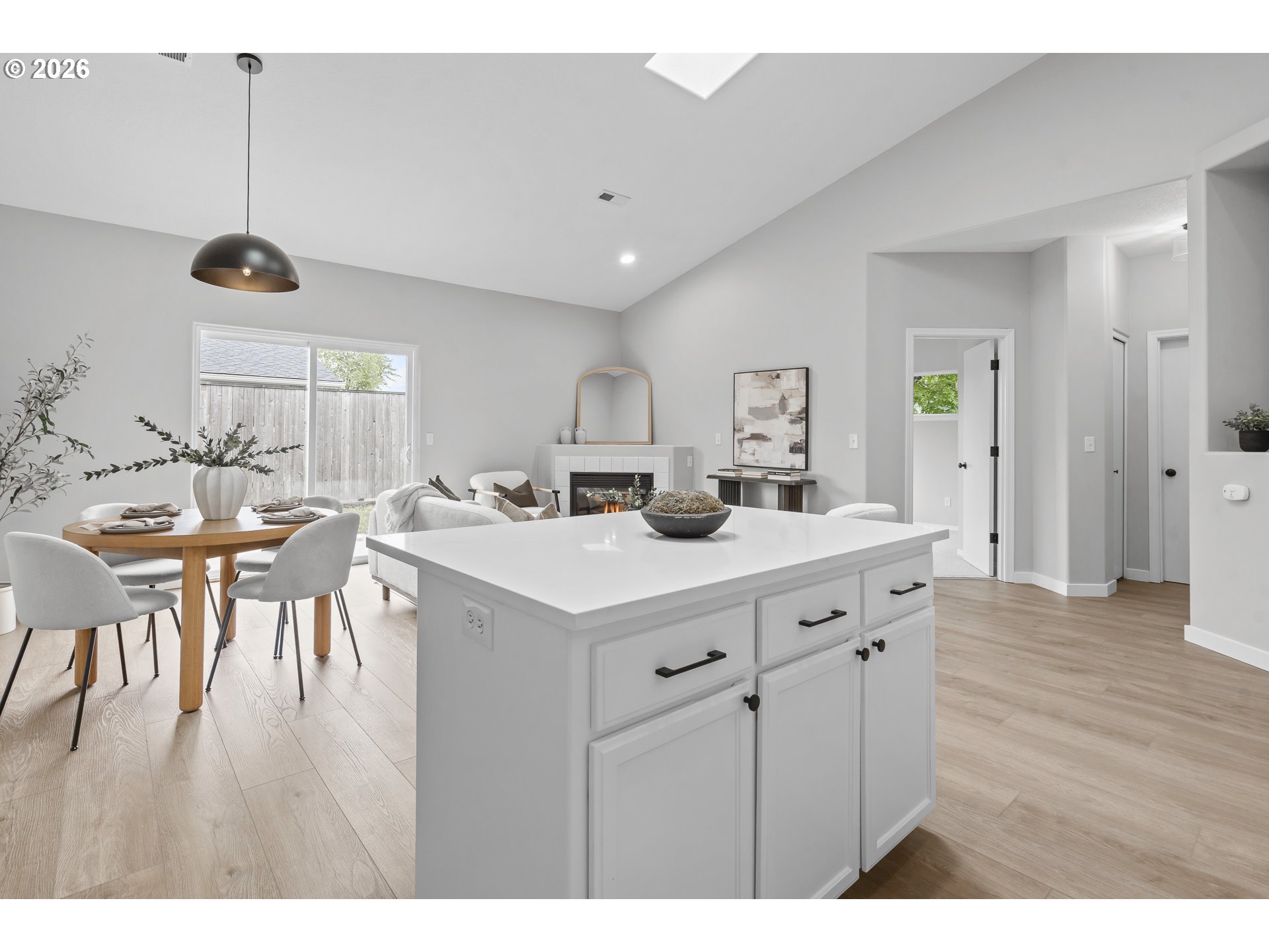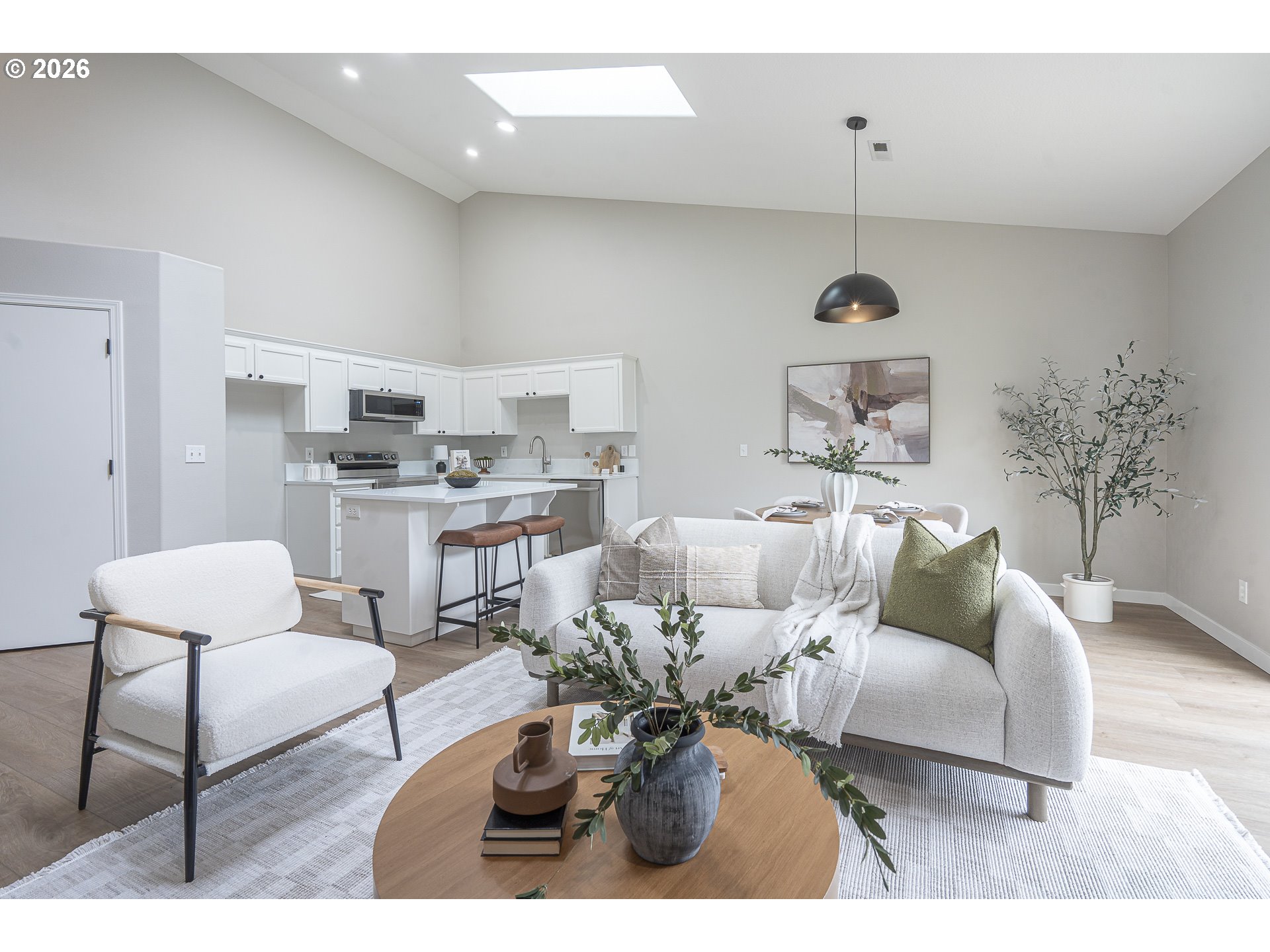 Beautifully renovated single-level end-unit townhome in desirable North Newberg, offering modern updates, energy efficiency, and low-maintenance living. This move-in-ready home features an open floor-plan with vaulted ceilings, creating a bright and spacious interior that lives larger than its footprint. The home has quality updates throughout with quartz surfaces, luxury vinyl plank flooring, new carpet, fresh interior paint, hardware, light fixtures and all-new sinks and toilets. The kitchen shines with new stainless steel appliances, complementing the clean, contemporary design. Abundant natural light enhances the home’s warm and inviting feel. Energy efficiency is a standout, thanks to paid-off solar panels with net metering, significantly reducing monthly electric costs. Major systems are in excellent condition, including a new HVAC and AC installed in late 2021. The HOA provides extensive exterior maintenance — covering the roof, gutters, exterior paint, front-yard landscaping, common-area care, insurance, and management — making this an ideal option for those seeking a low-maintenance lifestyle. Located close to schools, parks, downtown Newberg shops and dining, the Chehalem Valley Aquatic Center, George Fox University and the award winning Allison Inn & Spa, this home offers both comfort and convenience in a highly desirable community. Check out this like-new beauty!