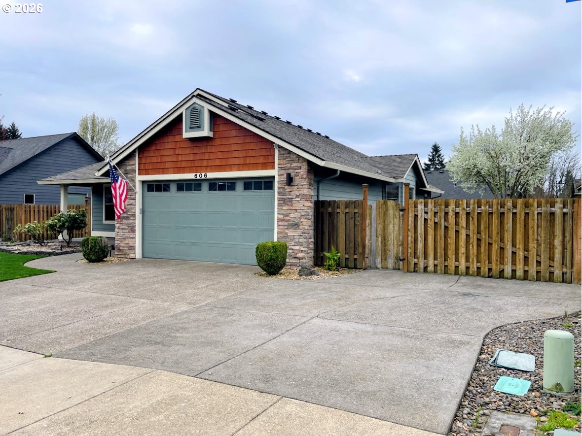 Wonderful single-level, 3 bedroom, 2 bathroom home in the beautiful town of Carlton. This home offers an open concept living room, dining room, and kitchen. Vaulted ceilings in the living room and primary bedroom. The kitchen has updated backsplash, quartz countertops, and stainless steel appliances including built-in microwave, dishwasher, refrigerator and range. The primary bedroom includes an ensuite bathroom with walk-in shower, and a slider to an outdoor patio area. The interior of the home is protected with a fire suppression system installed by the original builder. Another great feature of this property is the large RV pad with 30 amp electrical and located behind the fence for privacy and security. Yard has sprinklers in front and backyard and is fully fenced with gates on both sides. The HOA has a modest annual fee of $165/yr that maintains the common landscaped areas.