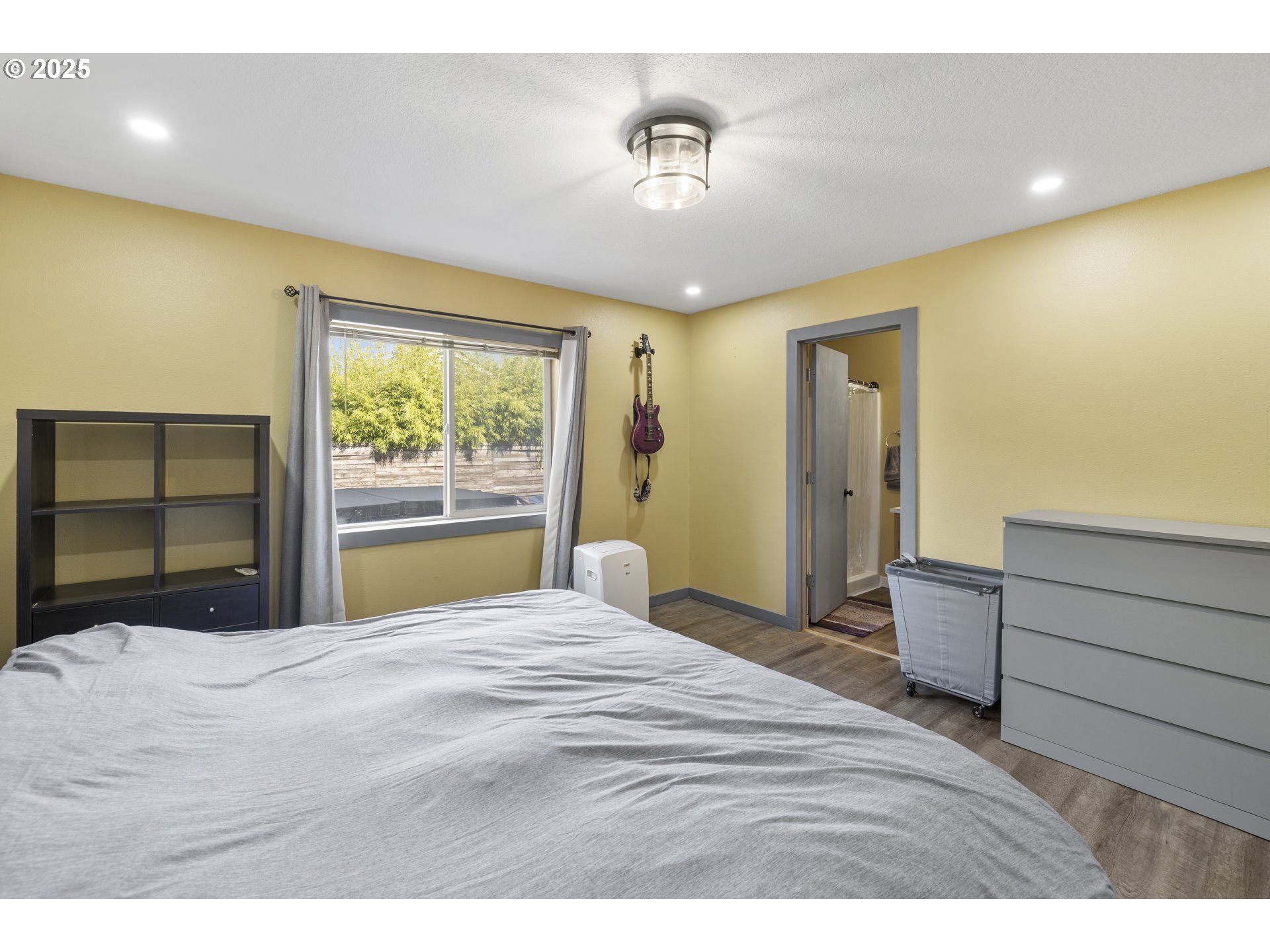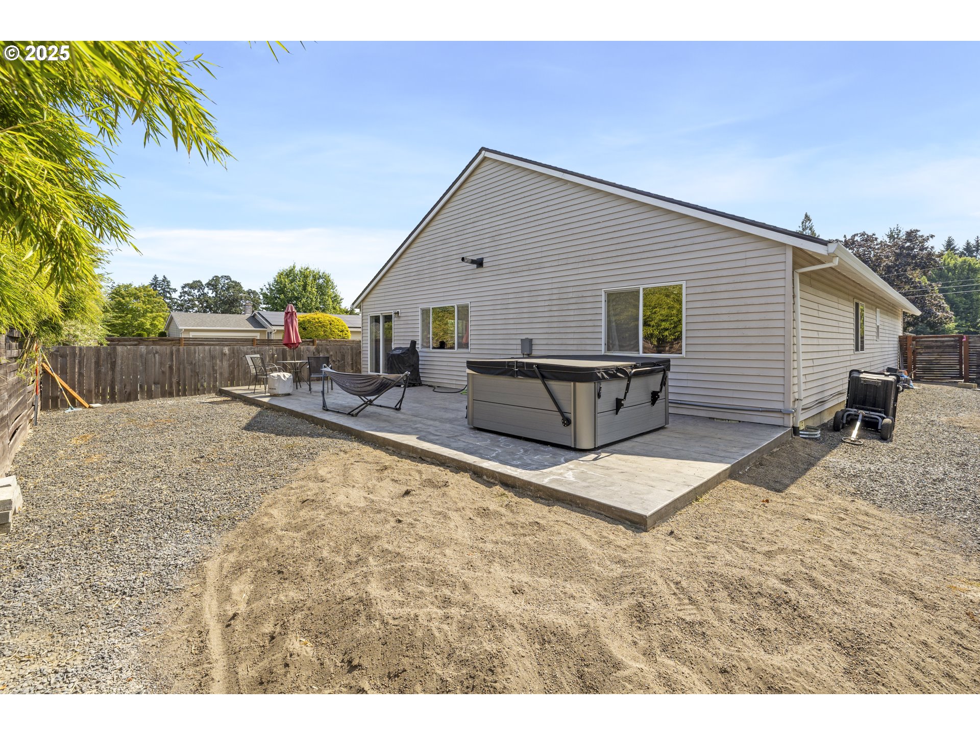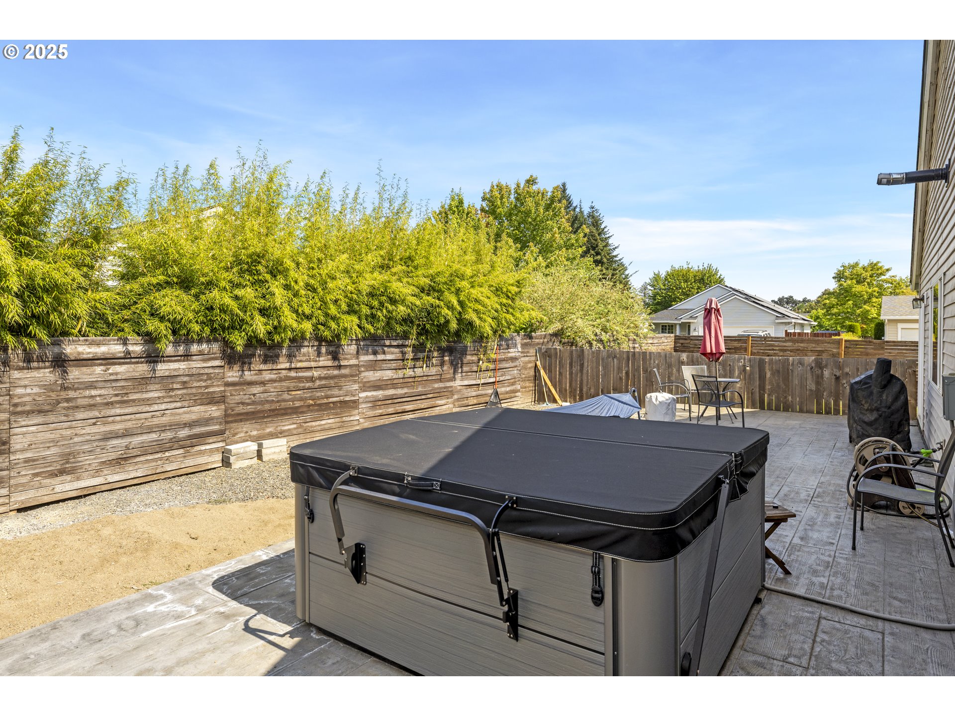 Single-level comfort meets smart living in this open-concept home with fresh flooring and new interior paint. The vaulted living and dining rooms feel bright and airy, with a cozy pellet stove adding warmth. The kitchen is move-in ready with a built-in microwave, dishwasher, free-standing range, and refrigerator. Retreat to the primary suite featuring a private bathroom and walk-in closet. Smart upgrades include thermostat, lighting, and door lock for modern ease. Outside, low-maintenance zero-scape landscaping frames a fully fenced backyard with expansive patio, 4-person hot tub, and incredible 20' x 40' dog park. Enjoy the benefits of easy living, inside and out!