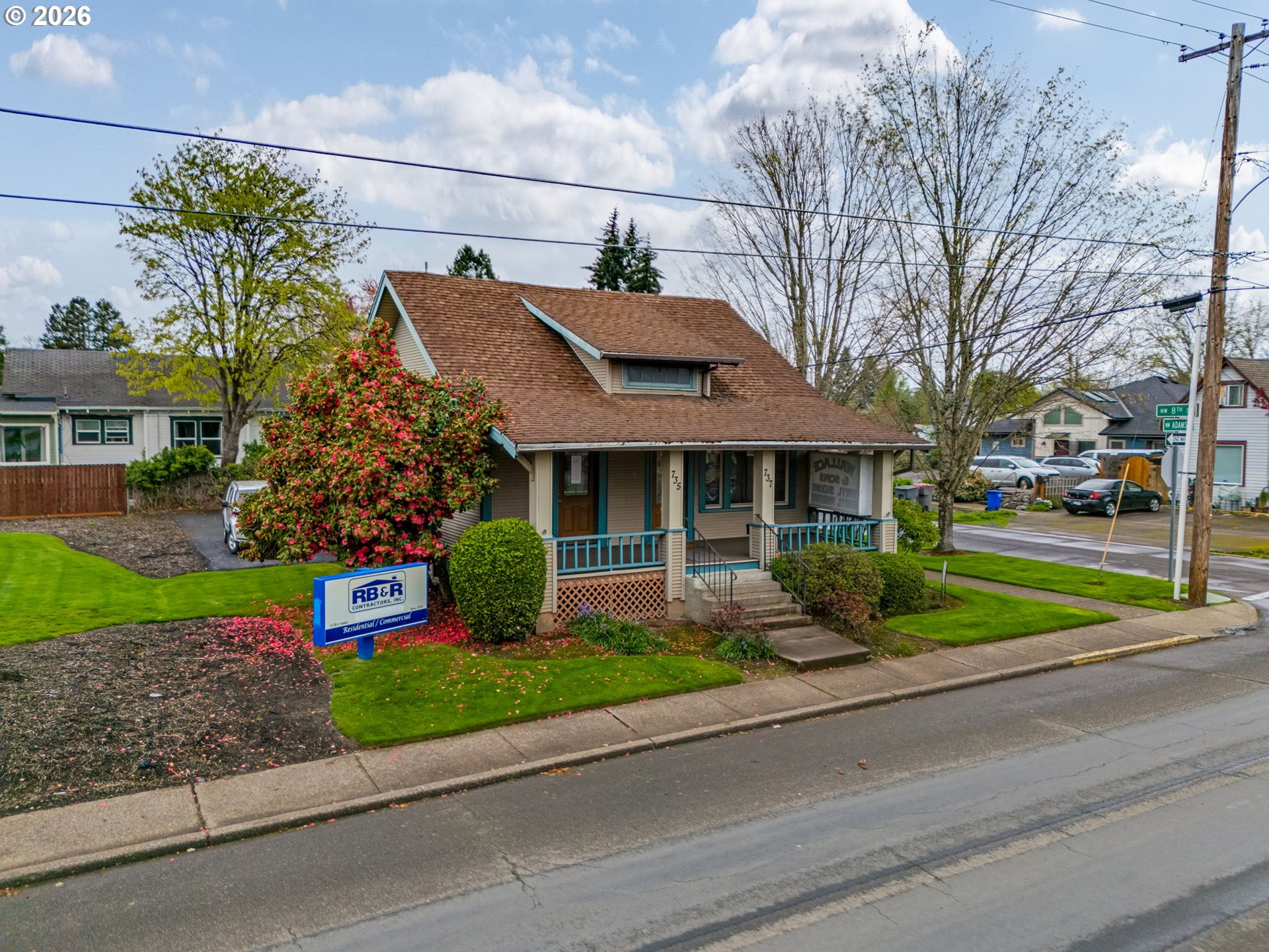 Investment Opportunity, charming craftsman details, great exposure and signage on 8th and Adams (Highway 99W South Bound). Easy access to vibrant downtown McMinnville, city municipalities and parks. Currently configured with 3 office spaces on the main floor and two on the lower level with a shared bathroom on each floor and shared kitchen on the main floor, 5 parking spaces in the back of the building along with street parking on 8th and on Adams. New heat pump 2025. Great investment for owner occupied tenant based property!