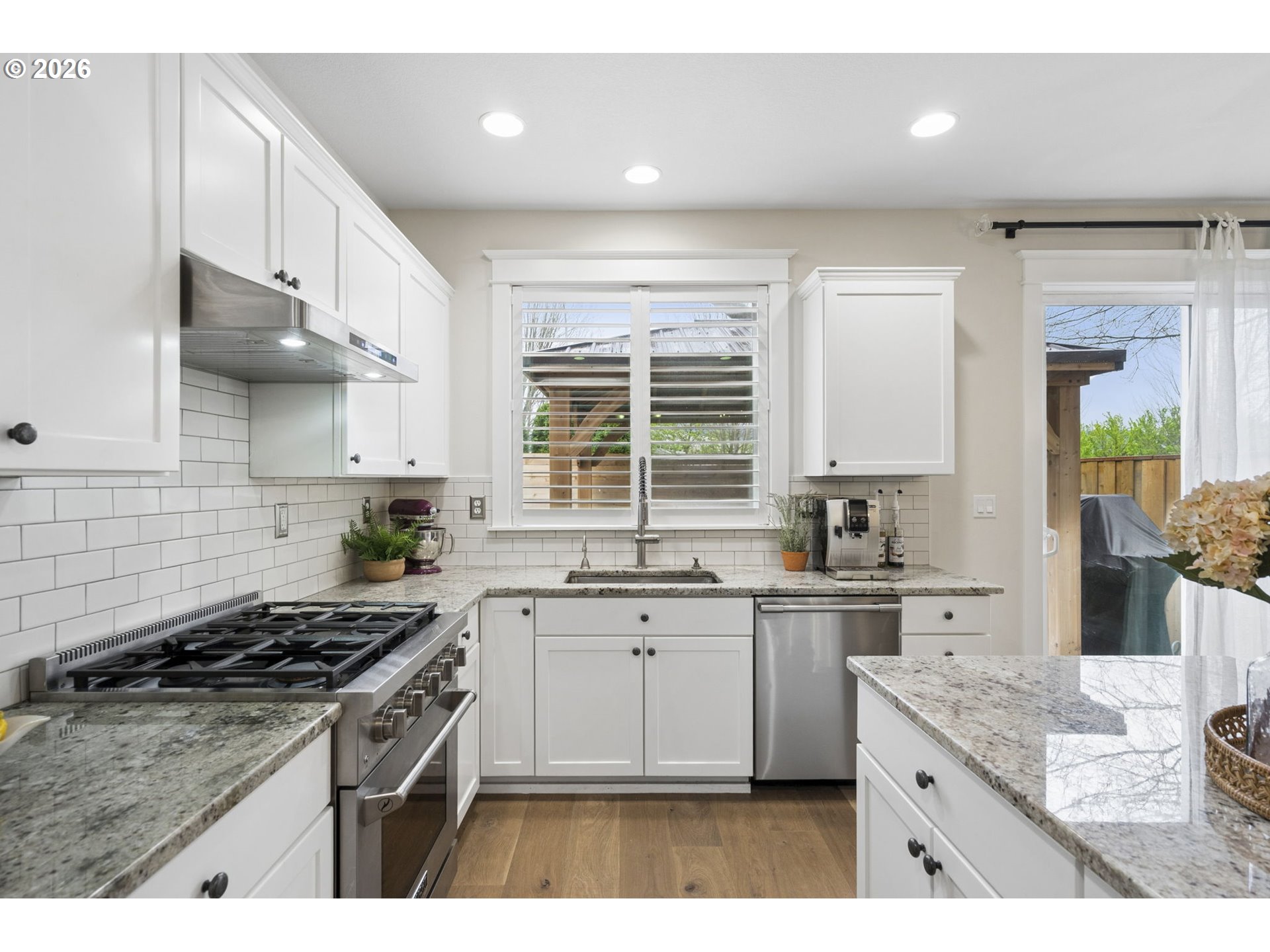 Are you ready to be wowed?! This fabulous, recently updated townhome sits on a corner lot that's conveniently located near Fred Meyer and lots of other shopping and restaurant options. Enjoy gorgeous brand new engineered hardwood flooring and very high-end carpet and pad throughout (feels like walking on a cloud!), as well as the entire interior of the home having beautiful fresh paint, and new plantation shutters. The recently updated island kitchen has a brand new commercial gas range and hood, top of the line tile backsplash, and slab granite counter. The fireplace in the Great Room features high-end tile. Added bonuses are an upgraded interior trim package (incl. an iron stair rail) and built-in closet organizers. Brand new top of the line Trane furnace and AC. The bathroom faucets upstairs, light fixtures throughout, and all the toilets are new. If you need fast, strong internet there's CAT 6 wiring in the 2nd and 3rd bedrooms, as well as on the wall to the left of the fireplace. You won't want to miss the private outdoor retreat in the back featuring a new expansive patio with brand new gazebo, full extended privacy fence including screening ready for your designer plant touch! Did I mention there's also a new Springwell whole house water filter system?! The sellers have invested over $100,000 in all the upgrades in the last 16 months! Ask your Realtor for the list!