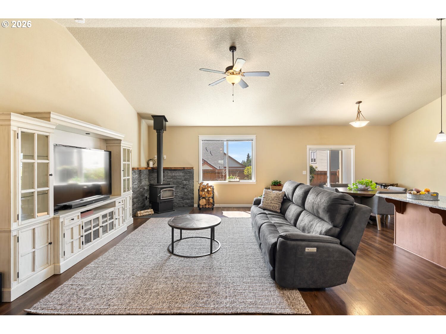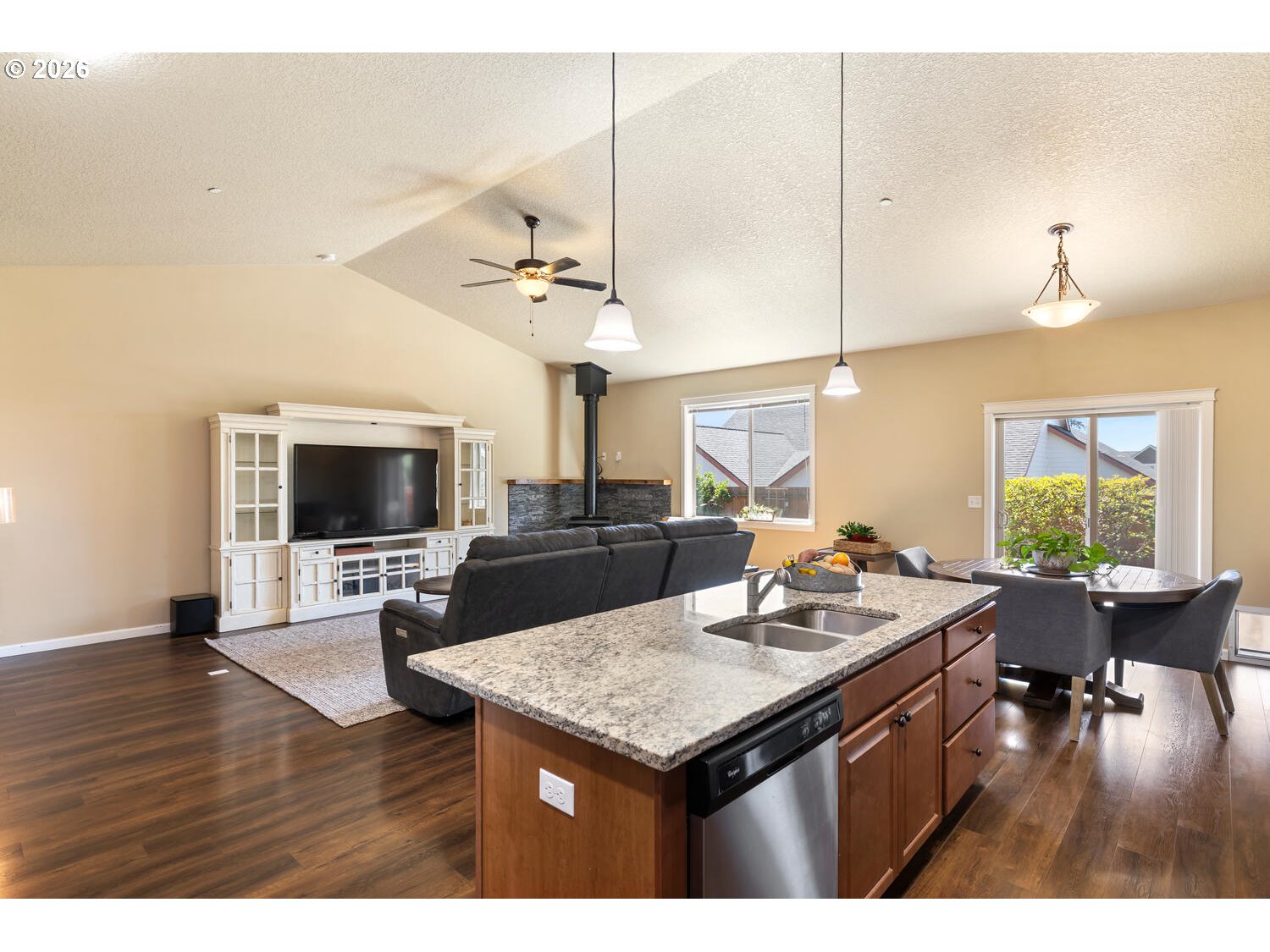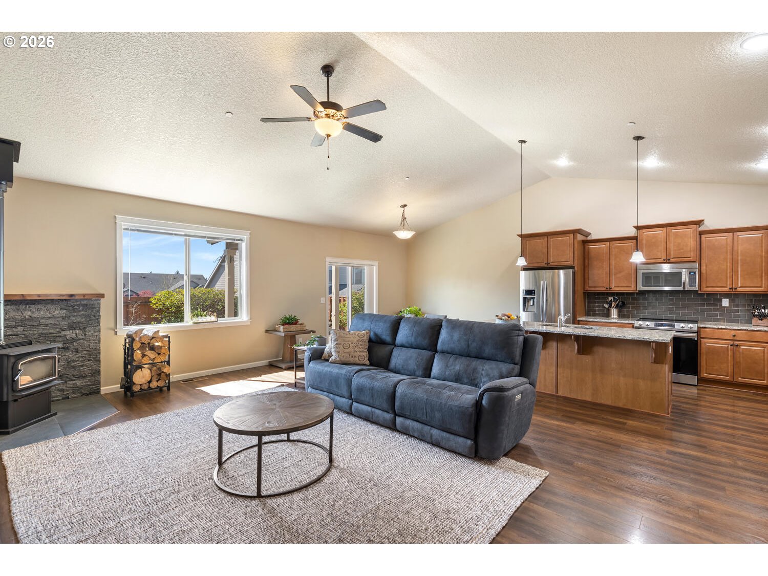 (503) 893-8874There’s something straightforward about a well-designed single-level home. Movement is easy, spaces connect naturally, and daily life doesn’t require much thought or adjustment. Open kitchen and family room sit under vaulted ceilings, giving a sense of volume while keeping everything connected. It’s open without feeling oversized, and functional without feeling tight. Outside of the living space, the property offers a different kind of flexibility. A 3-car garage plus 12 foot gate span side access (with 30 AMP) creates room for the things that don’t always fit neatly—RVs, vans, trailers, or simply extra space to spread out. Original driveway extended 15 X 50. With owned solar and new exterior paint, the focus shifts away from maintenance and toward long-term usability. New freestanding wood stove, a ductless HVAC system for the garage & new Bryant Evolution Fan coil & 20 SEER Heat Pump. It’s a home that supports how people actually live— simple to navigate, adaptable, and built to handle both routine and change.