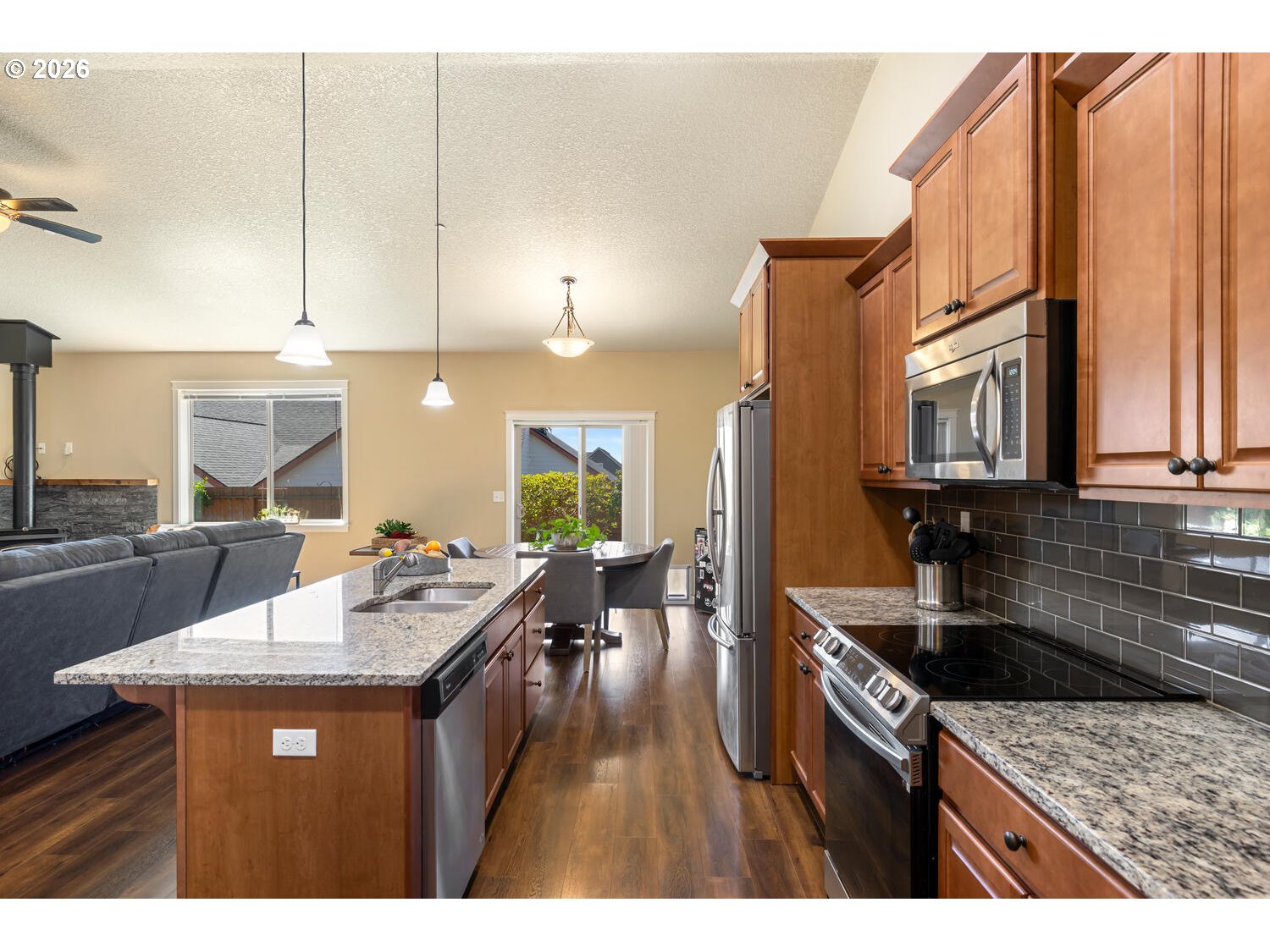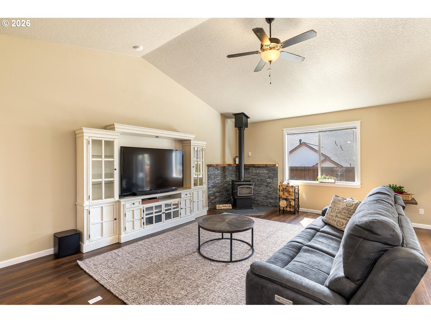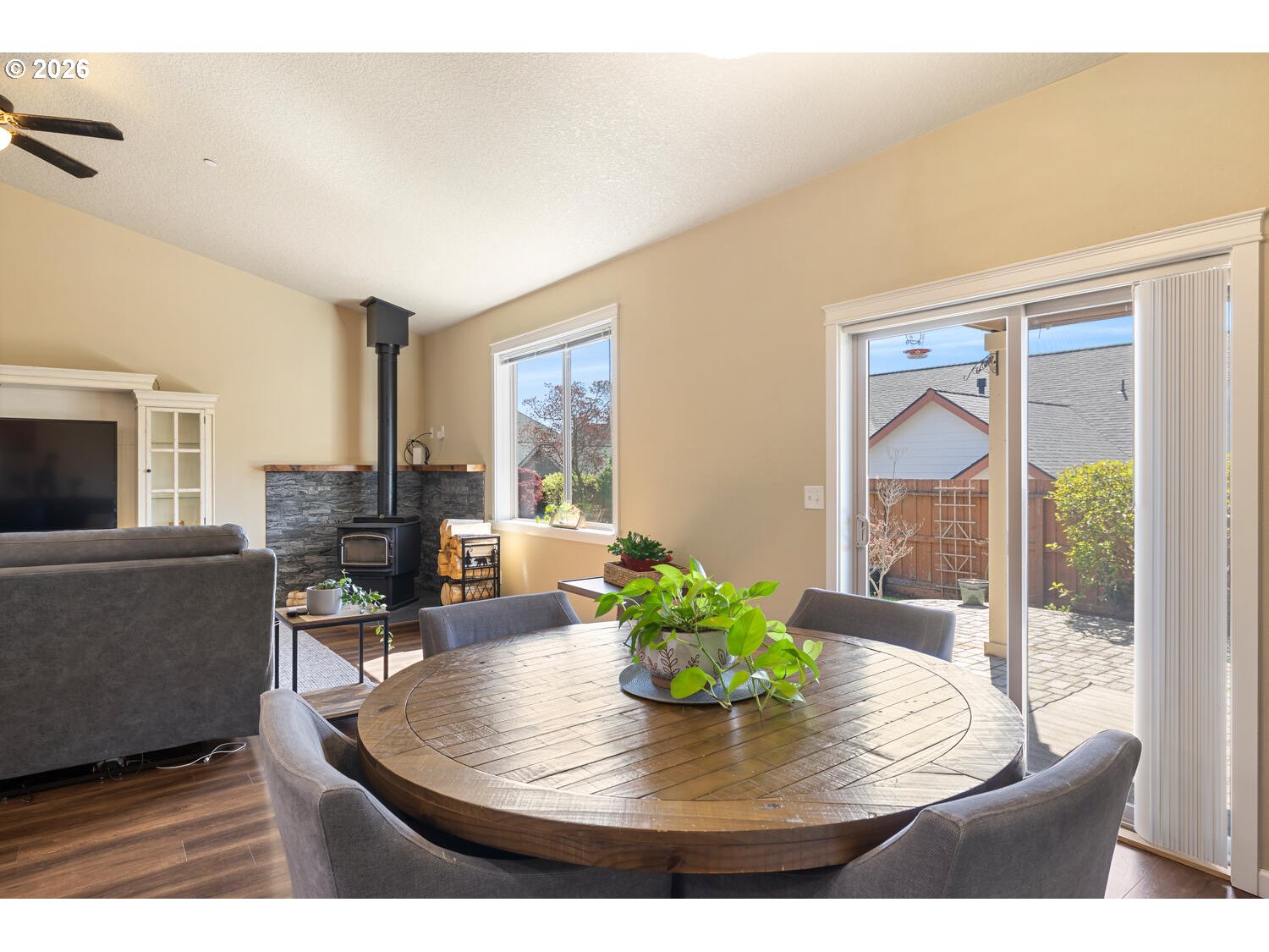 (503) 893-8874There’s something straightforward about a well-designed single-level home. Movement is easy, spaces connect naturally, and daily life doesn’t require much thought or adjustment. Open kitchen and family room sit under vaulted ceilings, giving a sense of volume while keeping everything connected. It’s open without feeling oversized, and functional without feeling tight. Outside of the living space, the property offers a different kind of flexibility. A 3-car garage plus 12 foot gate span side access (with 30 AMP) creates room for the things that don’t always fit neatly—RVs, vans, trailers, or simply extra space to spread out. Original driveway extended 15 X 50. With owned solar and new exterior paint, the focus shifts away from maintenance and toward long-term usability. New freestanding wood stove, a ductless HVAC system for the garage & new Bryant Evolution Fan coil & 20 SEER Heat Pump. It’s a home that supports how people actually live— simple to navigate, adaptable, and built to handle both routine and change.
