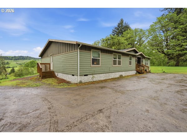 Enjoy peaceful country living with stunning valley views at this beautifully updated home just outside of Amity. Situated on 5.2 private acres, this spacious 2,924 sq ft manufactured home offers a versatile layout, incredible scenery, and room to truly spread out.Featuring 4 bedrooms and 3 full bathrooms, the thoughtfully designed floor plan provides ideal separation of space. Two bedrooms are connected by a shared living area and full bath—perfect for multi-generational living, guests, or a private suite setup. On the opposite side of the home, you’ll find a generously sized primary retreat complete with a large en-suite bathroom. A fourth bedroom and additional full bath are located on the far end, offering even more flexibility and privacy.Take in breathtaking valley sunrises and sunsets from your own property, all while enjoying the quiet and seclusion of a country setting. Whether you’re looking for space for animals, gardening, or simply room to relax and unwind, this property offers endless possibilities.Experience the best of rural Oregon living with convenient access to nearby amenities, wineries, and everything the Willamette Valley has to offer. Don’t miss this opportunity to own a private retreat with incredible views and versatile living space—schedule your showing today!