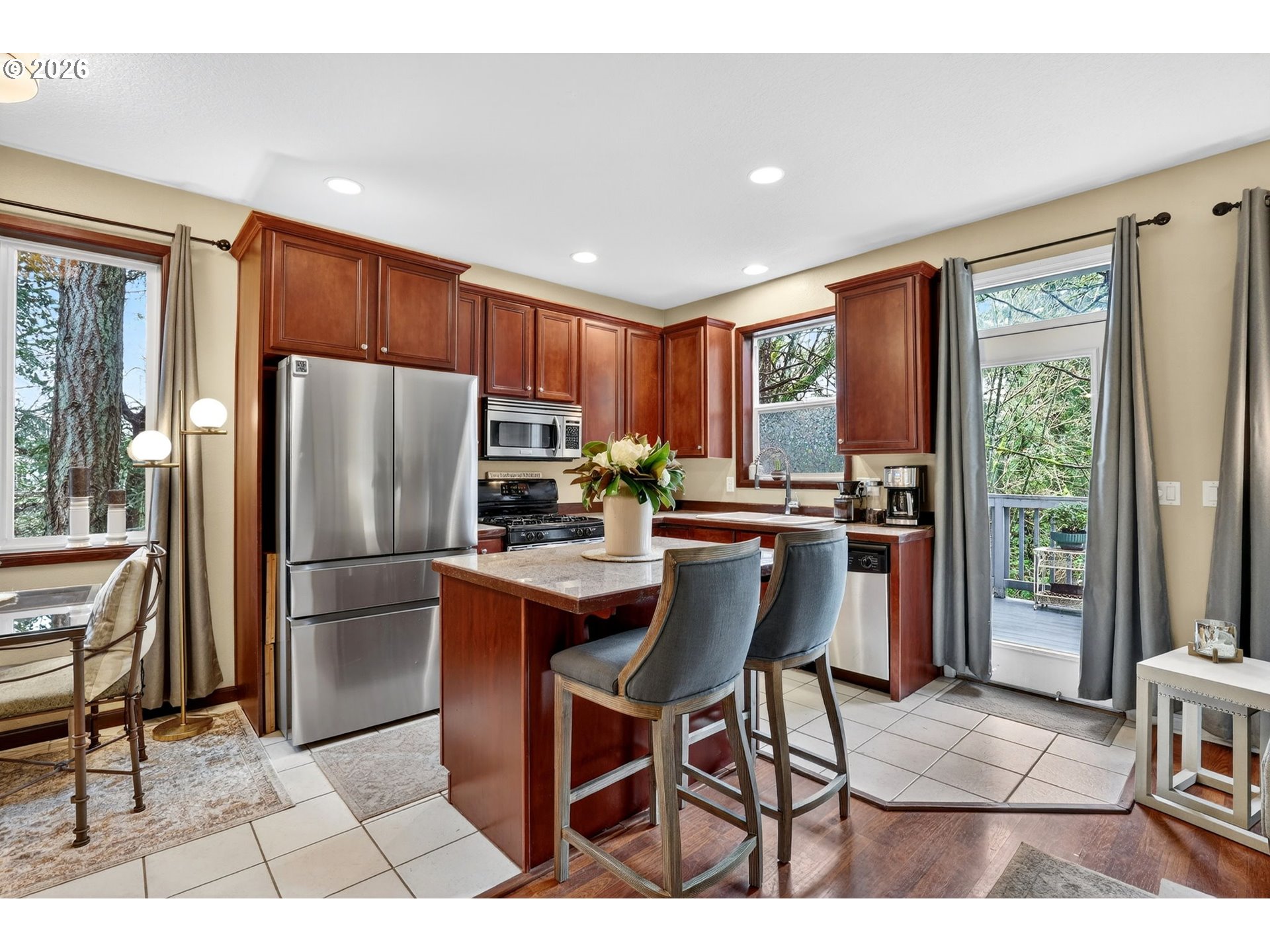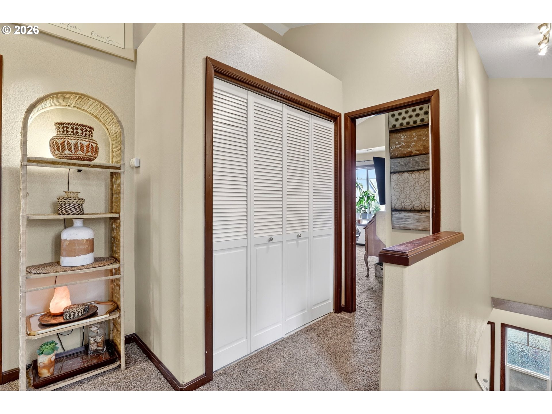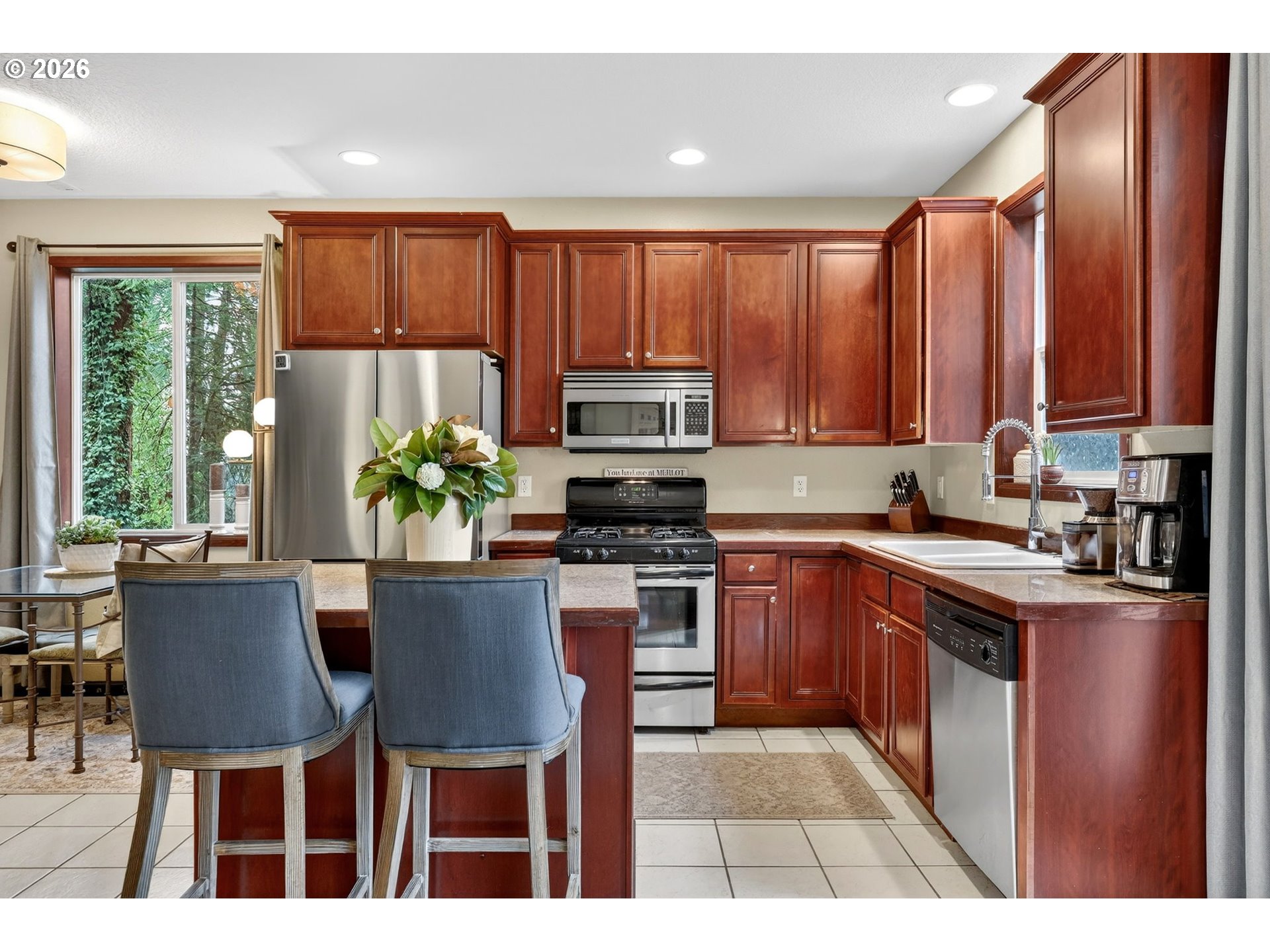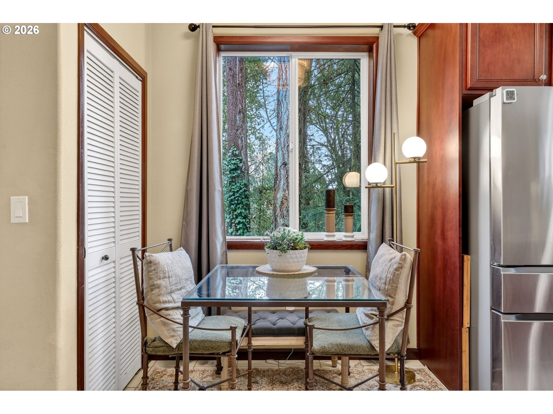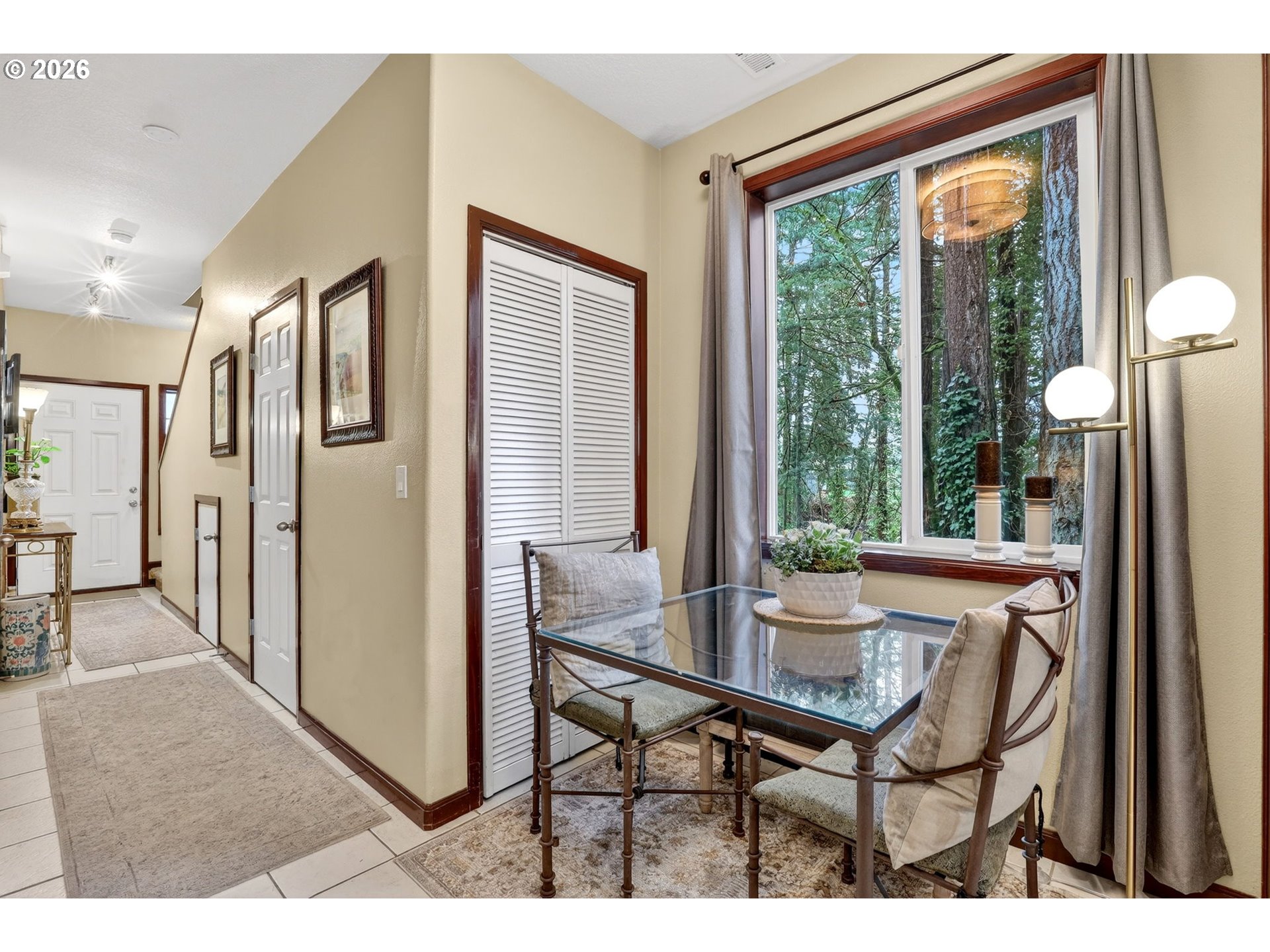 Experience the rare harmony of modern luxury and forest serenity in this beautiful move-in-ready gem of a townhome located in the heart of Newberg and Oregon wine country. As a one-of-a-kind end unit, this 3-bedroom, 2.5-bath townhome offers breathtaking views of lush greenery, a heavily wooded forest and a bubbling creek from the large private balcony as well as every single window, front, back and side. This spacious home features privacy not often found in a townhome community with custom paint and LED lighting throughout. A gourmet kitchen with ample cabinetry, granite countertops, tile floors, eating bar, pantry, gas range, built-in microwave, and newer refrigerator (all appliances included) with a center island that flows seamlessly into a sun-drenched great room. The inviting great room offers laminate flooring, a cozy corner gas fireplace, and opens to the large private balcony overlooking the peaceful green space and lush forest with a creek—perfect for enjoying your morning coffee or entertaining while watching deer and local wildlife. Upstairs, the vaulted primary suite with ceiling fan, large walk-in closet and private en-suite bath serves as a private retreat. The upstairs is also complemented by a convenient laundry center with more cabinets, two spacious guest rooms, a full bath,and linen closet. Additional highlights include an oversized one-car attached garage with extra storage and numerous wire shelves. The covered entry and front lot area features numerous trees, potted plants and an exclusive side area adjoining the heavily wooded forest and creek. This Newberg gem offers an affordable opportunity with convenient access for commuting, shopping, dining, and walkability. With immediate access to Newberg’s best shopping and dining, this isn't just a home—it’s a getaway.