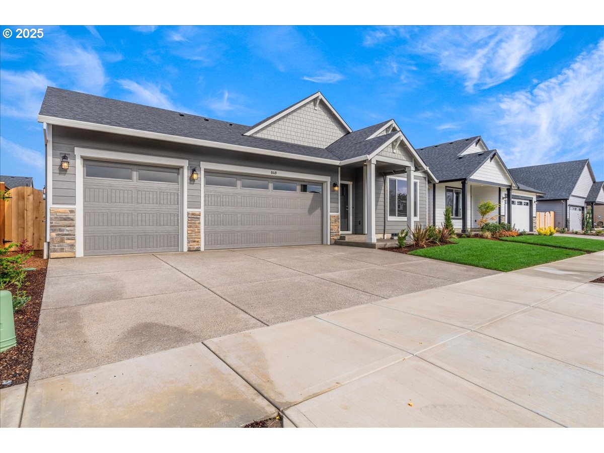 New Chad E Davis Construction home. New one level home in Popular Carlton! 4 Bedrooms with high ceilings and fireplace in the Great room. Open concept kitchen with quartz counters and Island. Full tiled back splash and ss appliances. Coved ceiling in the primary suite with full bath and walk in closet. Fully fenced and landscaped with irrigation included. Taxes TBD.