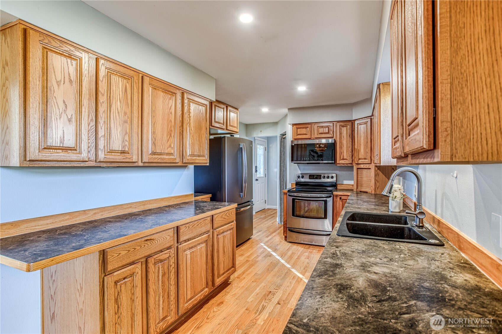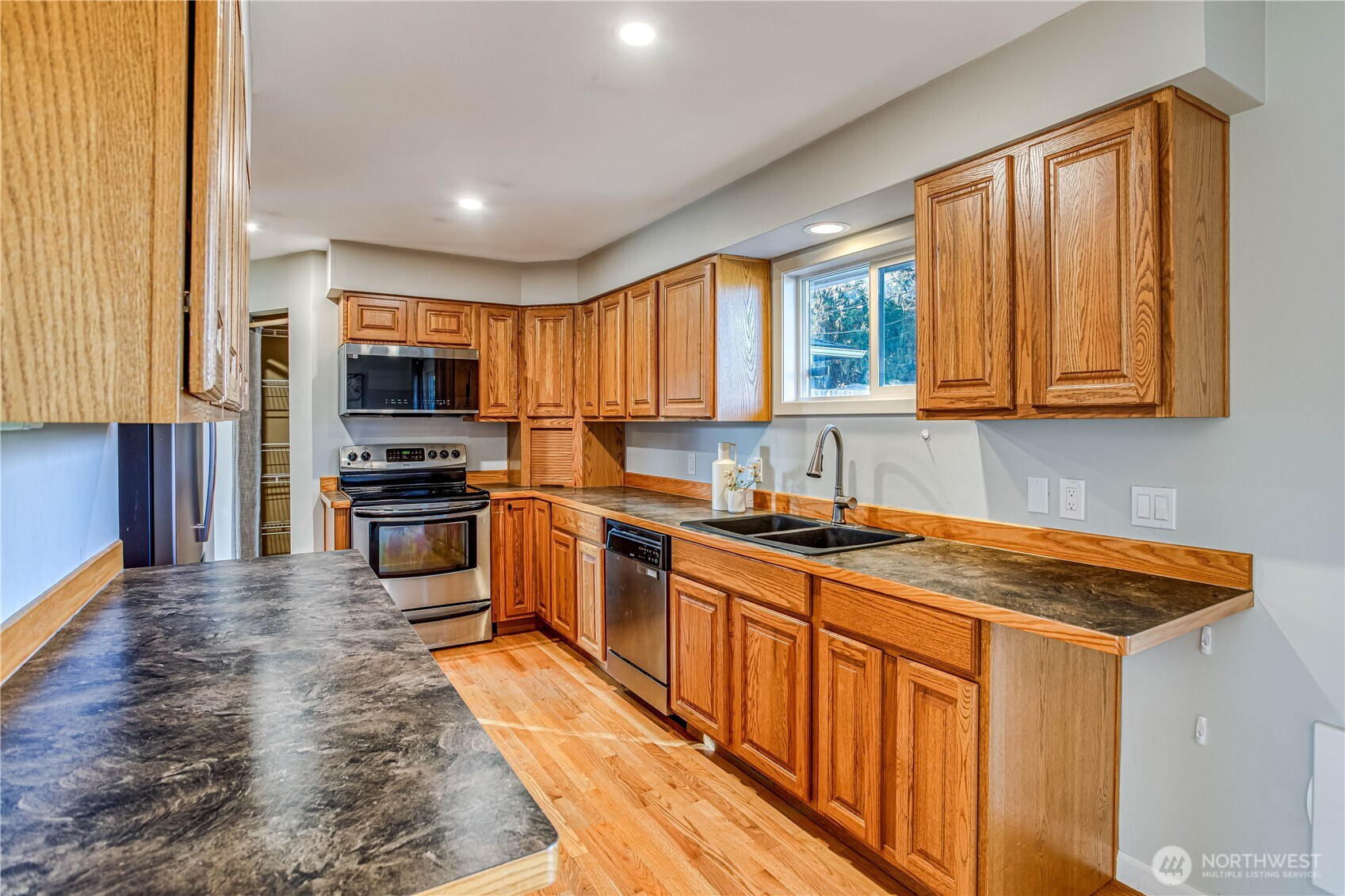 Beautifully updated home with thoughtful details throughout! The main floor offers 2 bedrooms and a full bath, featuring refinished hardwood floors, a cozy wood-burning fireplace, and an open layout that flows into the remodeled kitchen with all newer appliances. Downstairs, you’ll find a spacious basement with 2 additional bedrooms, a full bath, and an ample family room perfect for movie nights or guests. Outside, enjoy the private, fenced backyard with new landscaping, a sprinkler system, and a large shed with power—ideal for storage, a workshop, or hobbies. A covered carport and extra parking add convenience to this move-in-ready home. Conveniently located near the hospital, schools, and shopping. Walking distance to almost everything!