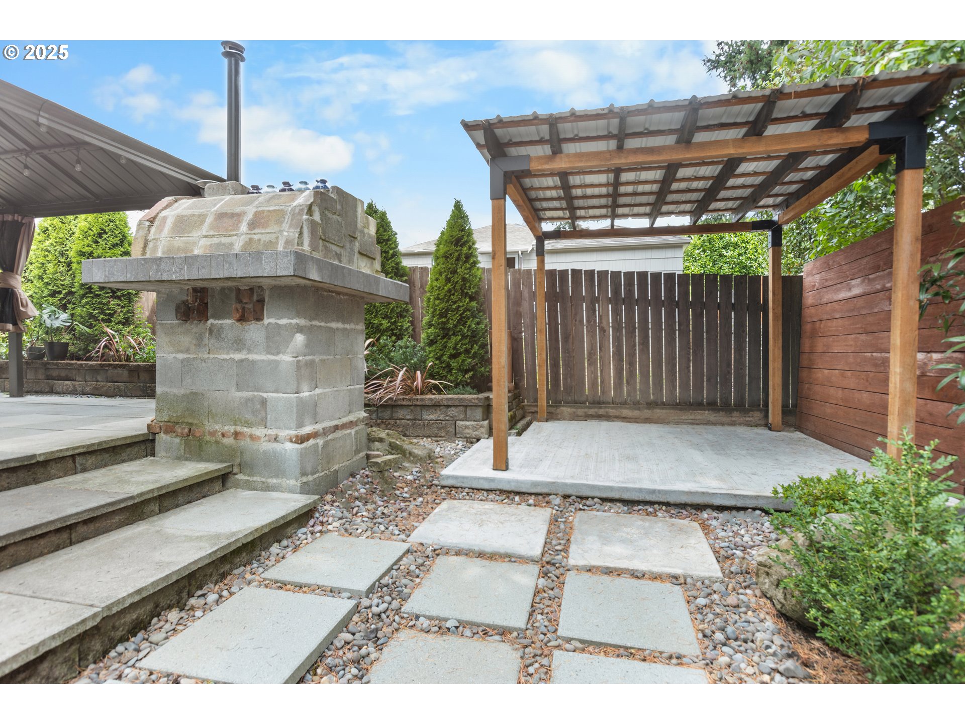 Welcome to this beautiful 3-bedroom, 2.5-bathroom home in the heart of West Linn, OR! Step inside and enjoy the open-concept layout that connects the kitchen and living room—perfect for everyday living and entertaining. The updated kitchen features sleek appliances, a breakfast bar, ample countertop and pantry space. Upstairs, the spacious primary suite feels like a retreat with vaulted ceilings, a cozy fireplace, walk-in closet, and a spa-like en suite with dual vanities, walk-in shower, jetted tub, and private water closet. Outside, the low-maintenance yard is designed for comfort and fun. The covered entertainment area includes a built-in natural gas grill, a wood-burning pizza oven, and a pad ready for a covered Jacuzzi. The private backyard patio is the ideal spot to relax and enjoy peace and privacy.Additional highlights include a shared private driveway that feels safe and provides extra parking. The location is hard to beat—just minutes from I-205, with easy access to top-rated schools, the library, restaurants, shops, and more.This home blends comfort, convenience, and lifestyle—ready for its next chapter!