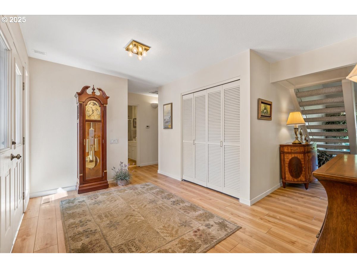 (503) 893-8874OPEN HOUSE Sunday, 10-5-25, 1-3pm. Welcome to this inviting, light-filled home. Located on a quiet street and close to the Charbonneau Village for dining and a variety of activities, this one-level, 2 bedroom, 2 bath home is designed for comfort. The center of the home is the living room, featuring a soaring vaulted ceiling, a cozy fireplace, and expansive windows that bathe the space in natural light. The living and dining room combination is ideal for entertaining and the beautiful LVP flooring flows seamlessly throughout home, adding warmth and style. Off the living room, step outside onto the patio to enjoy fresh air and outdoor ambiance with views of the fairways. At the front of the home, the private fenced courtyard is your personal retreat for relaxation or entertaining guests. The primary bedroom, with views to the golf course, has a bench window seat and a rare vaulted ceiling for a sense of spaciousness. Upstairs storage or craft area awaits your creativity, while the 2-car garage includes a dedicated workshop space for all your projects.
