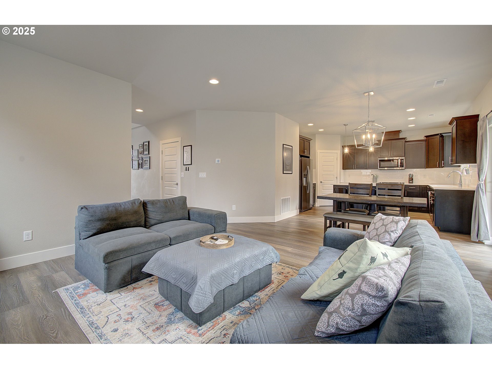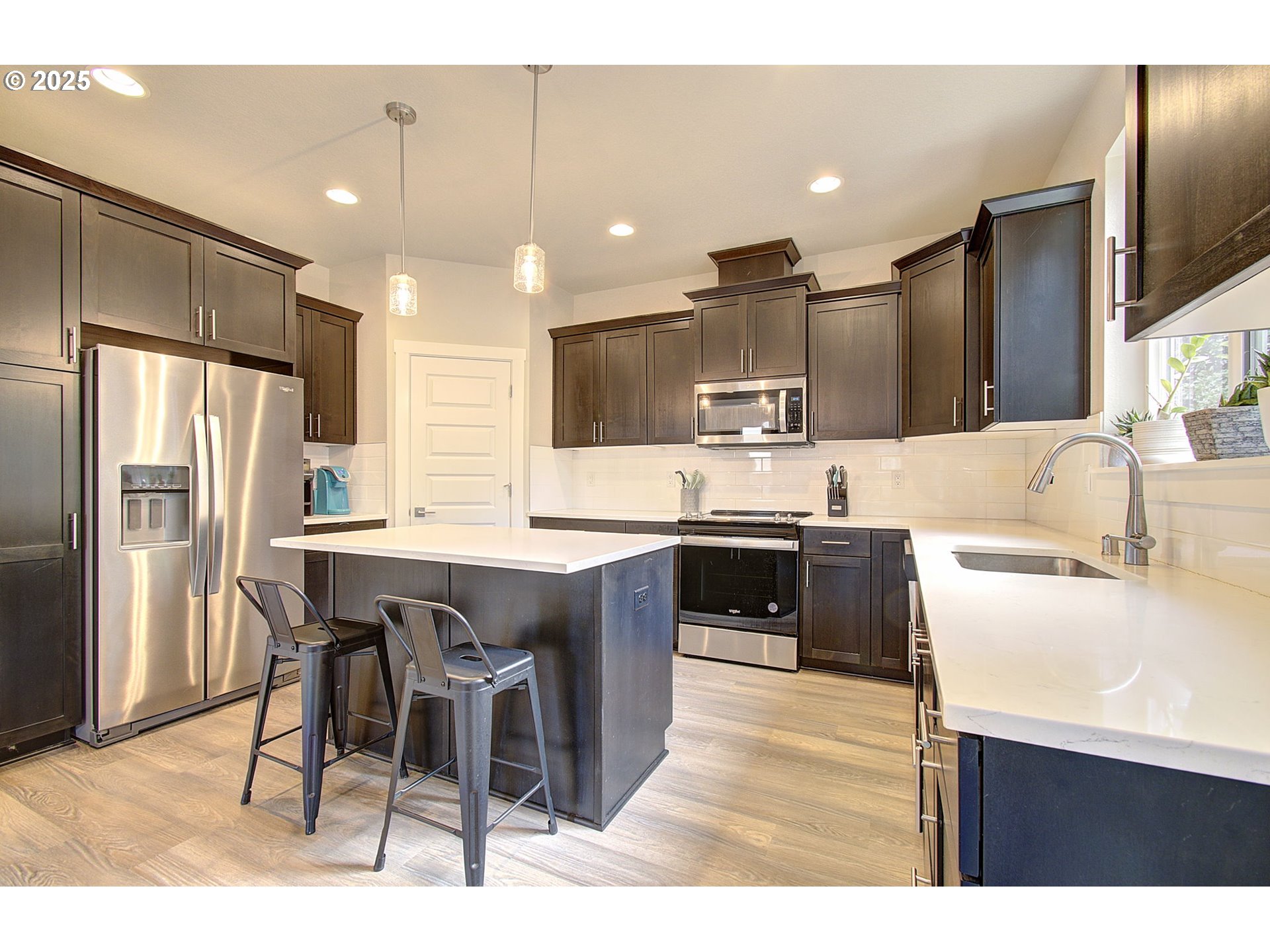 This nearly-new home, built in 2022, is the perfect blend of modern style and comfort. With 3 spacious bedrooms, 2.5 bathrooms, and a versatile loft, there's plenty of room for everyone to spread out. Whether you need a home office, a playroom, or a cozy retreat, the loft has you covered! The oversized primary bedroom is a true sanctuary, offering a peaceful space. The ensuite bathroom features a mud-set tile shower, dual-vanities, and walk-in closet. The kitchen features an island, and pantry. This home features LVP flooring throughout. Outdoor living is just as impressive - relax or entertain under the covered patio, rain or shine. Enjoy the landscaped yard, with front and back sprinkler system. Need storage? The 3-car garage provides ample room for all of your gear, and the oversized backyard offers even more space for outdoor activiti