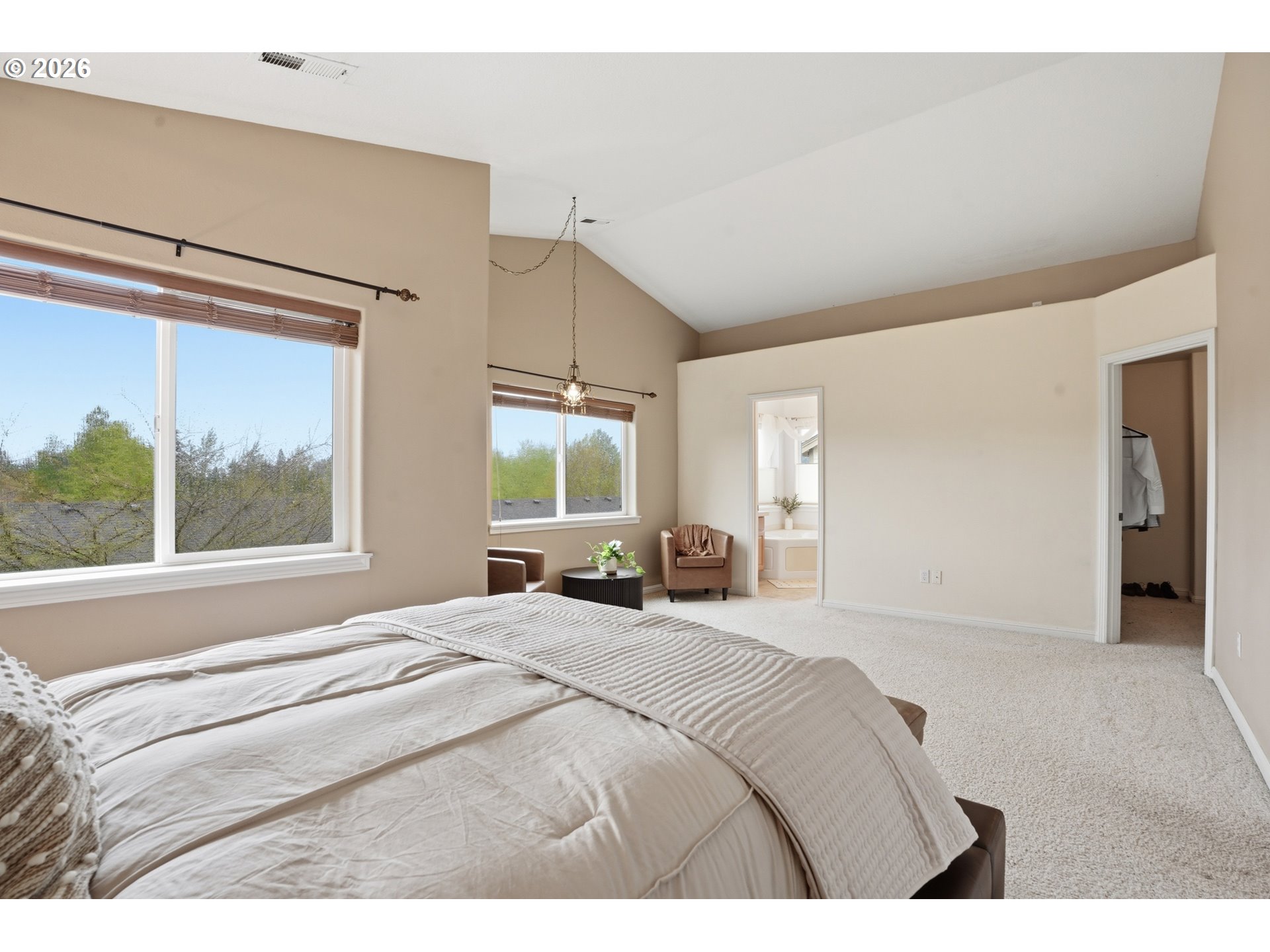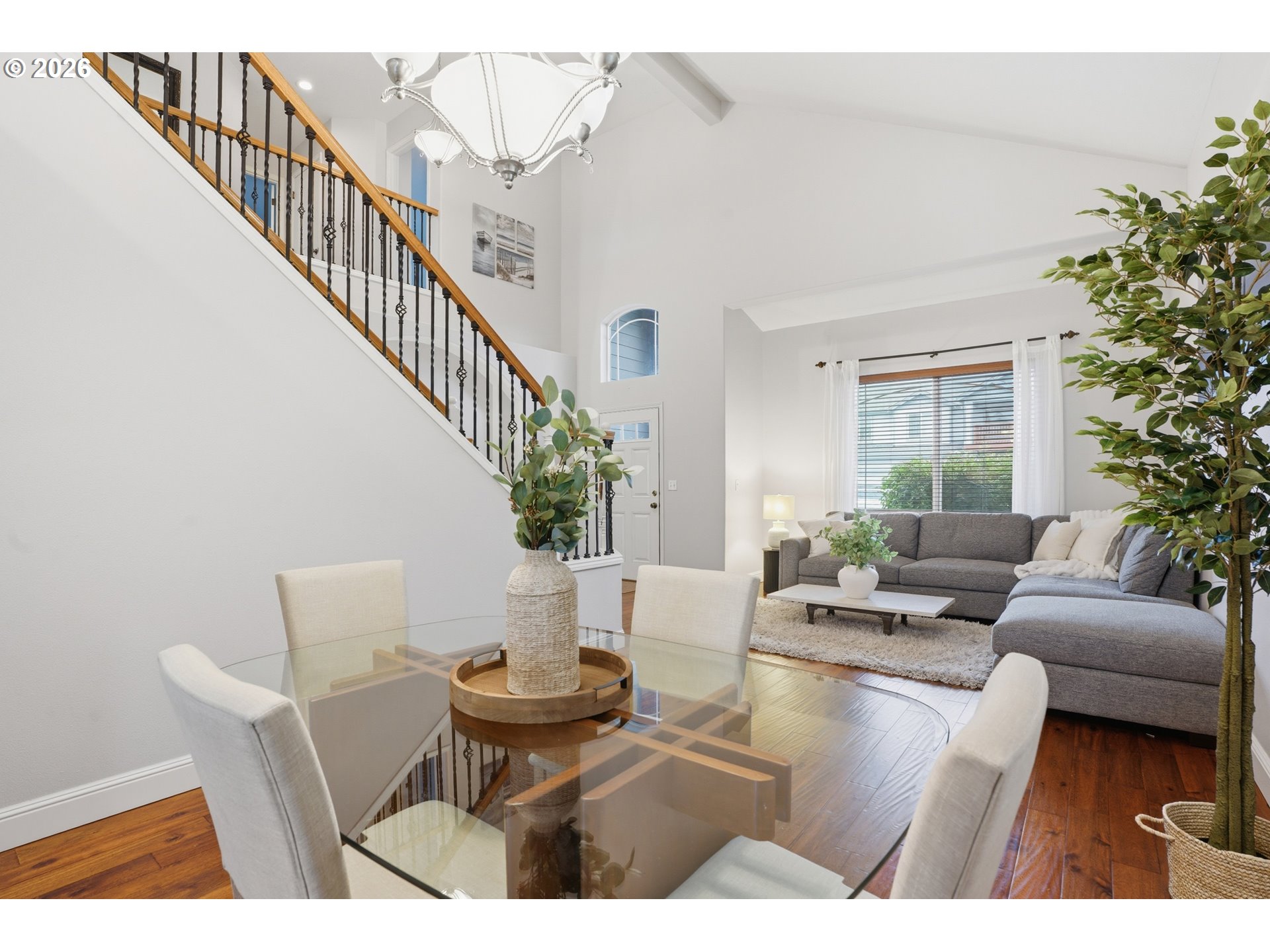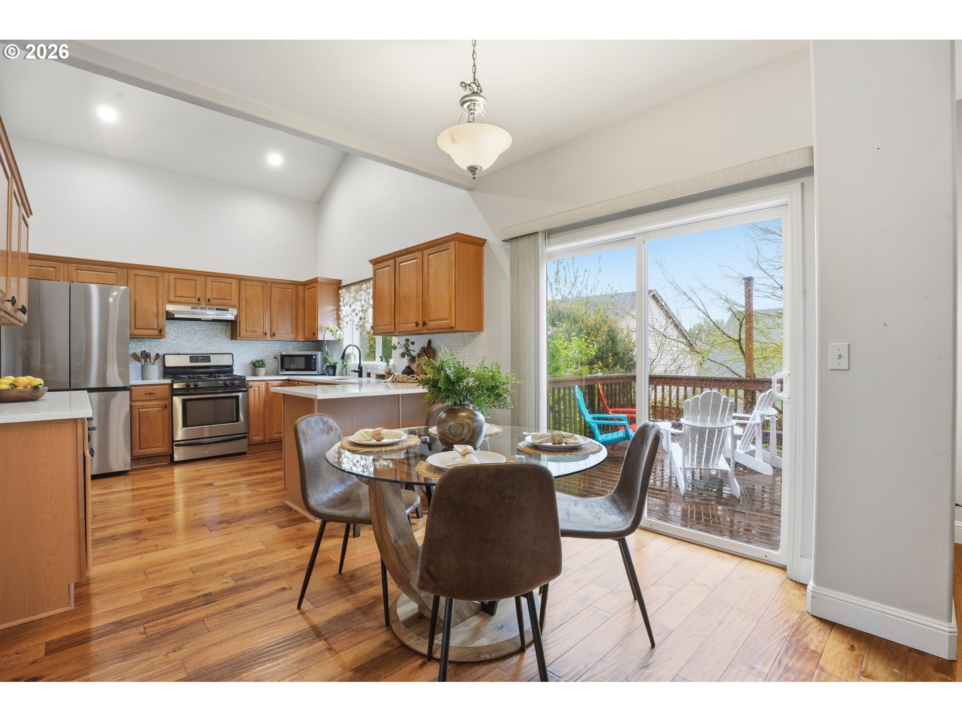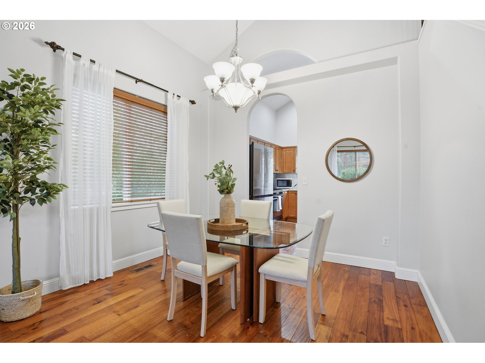 Welcome to this meticulously maintained 3-bedroom 2.5 bath home offering space, comfort, and versatility for everyday living and entertaining. You will notice the pride of home ownership! When you walk in the door you will be greeted with soaring vaulted ceilings and a grand staircase leading to the second floor. The wood floors throughout elevate the space and bring a sense of grandeur to the home.Thoughtfully laid out, the home includes a formal dining room perfect for hosting gatherings, a great room with an open-concept design that seamlessly connects to a separate eating area—ideal for casual meals. Step outside to enjoy the gorgeous garden and a private deck just off the family room, creating the perfect setting for outdoor entertaining or peaceful mornings surrounded by nature.This home offers the perfect balance of functionality and charm, with plenty of room to live, host, and enjoy. The spacious primary suite provides a true retreat with vaulted ceilings and ample room to relax and unwind. Each bedroom has its own walk in closet. Seller is providing a credit for air conditioning!!
