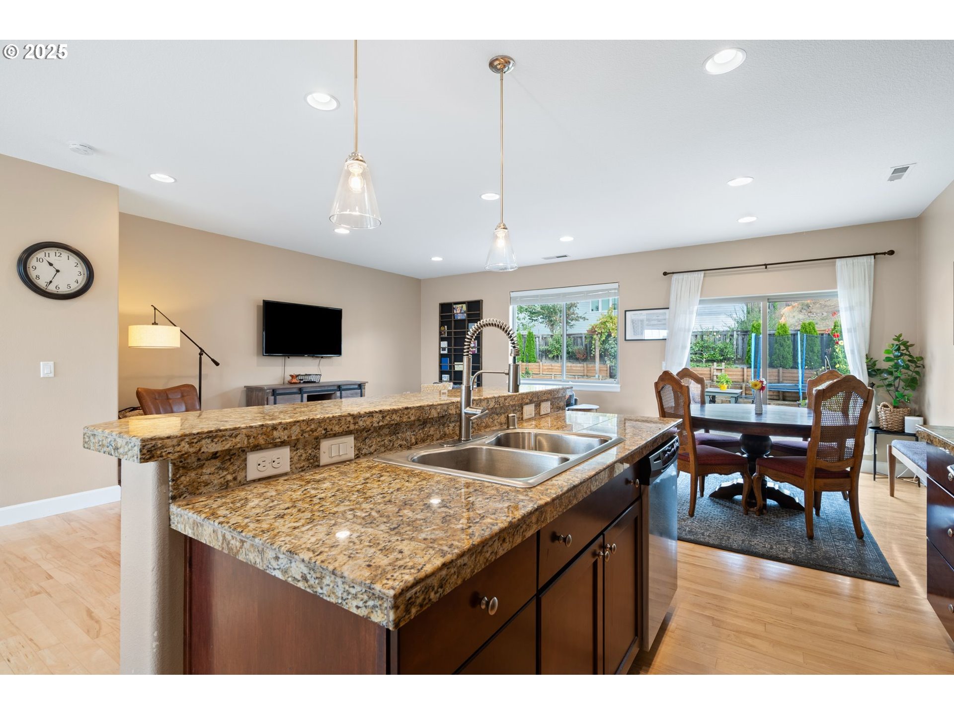 Welcome to this 4-bedroom, 3-bathroom home in the highly sought-after Granite Highlands community of Washougal, featuring a spacious open-concept layout filled with natural light and thoughtful details throughout. On the main level, a well-equipped kitchen, generous dining area, and seamless access to the patio -- perfect for entertaining. A versatile flex space expanding off of the kitchen works as a home office, playroom, or formal sitting area. The primary bedroom features a walk-in closet, soaking tub, tiled shower and double vanity. A designated laundry room is located on the lower level along with private guest quarters. The 4th bedroom, full bathroom, wet bar and fireplace make the space ideal for visitors or your own retreat. Outside, the expansive backyard includes raised garden beds with a drip system -- and the oversized tandem garage provides ample room for vehicles, storage, a home gym or workshop. Come take a look at the freshly painted exterior along with all the amenities this home has to offer!