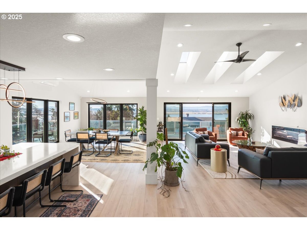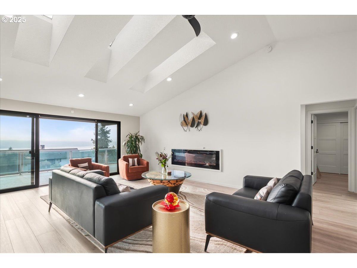 (503) 893-8874Captivating and beautiful panoramic views of sunrises, Columbia River, PDX and Portland landscape! Recent sustainable and environmentally conscious custom designed remodel with high-end upgrades. Energy efficient with Smart home features easily controlled by Alexa or Apps. Private and gated on 1/3 acre in coveted Riverside neighborhood. Incredible kitchen with first class appliances such as built in Dacor fridge, Wolf range, Monogram oven/ microwave and Miele dishwasher. Walk in pantry, solid Quartz countertops and enormous island for food prep and gatherings. Lavish luxury vinyl plank flooring through out most areas. Live the dream in this ultimate entertainers floor plan with enormous vaulted great room. Elongated recessed electric fireplace. South facing floor to ceiling windows to capture the spectacular views. Main level includes elegant owners suite which also enjoys the views and has its own private deck access and a heated tile bath with doorless shower and freestanding soaking tub. Separate living potential in AWESOME daylight basement. Full kitchen, dining area and giant family room already set up with built in theater surround sound! Additional generous guest room and den also on lower level. Walk out side to extensive patio area also great for large parties and entertaining. Massive wrap around deck for outdoor enjoyment and entertaining. New driveway, 3 car attached garage and detached double carport. A truly spectacular home in a very desirable location!