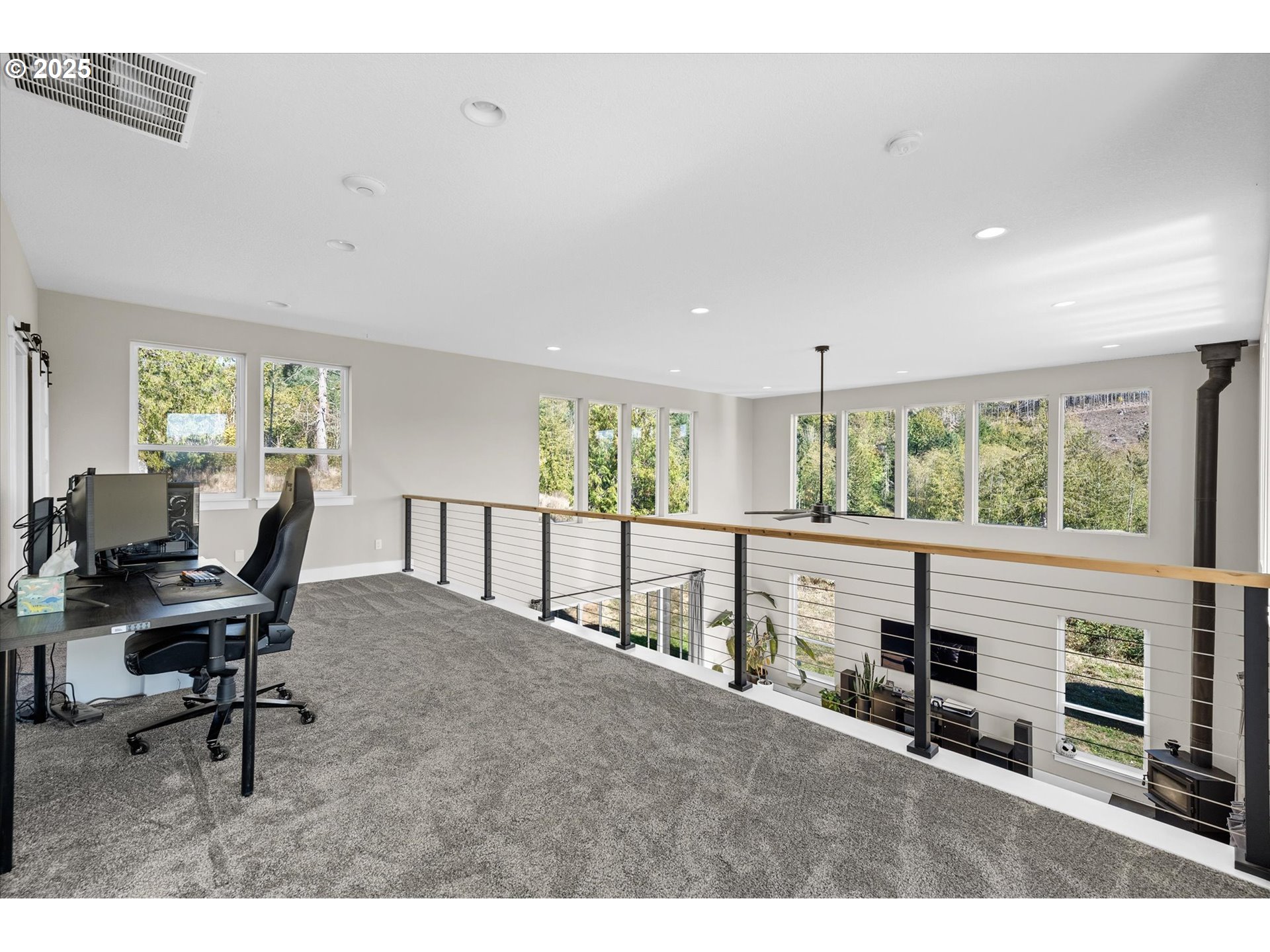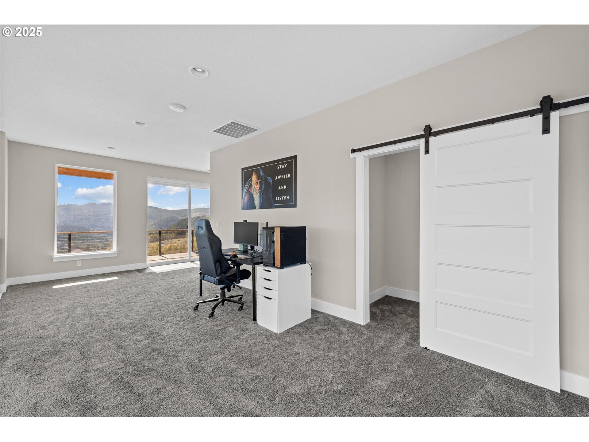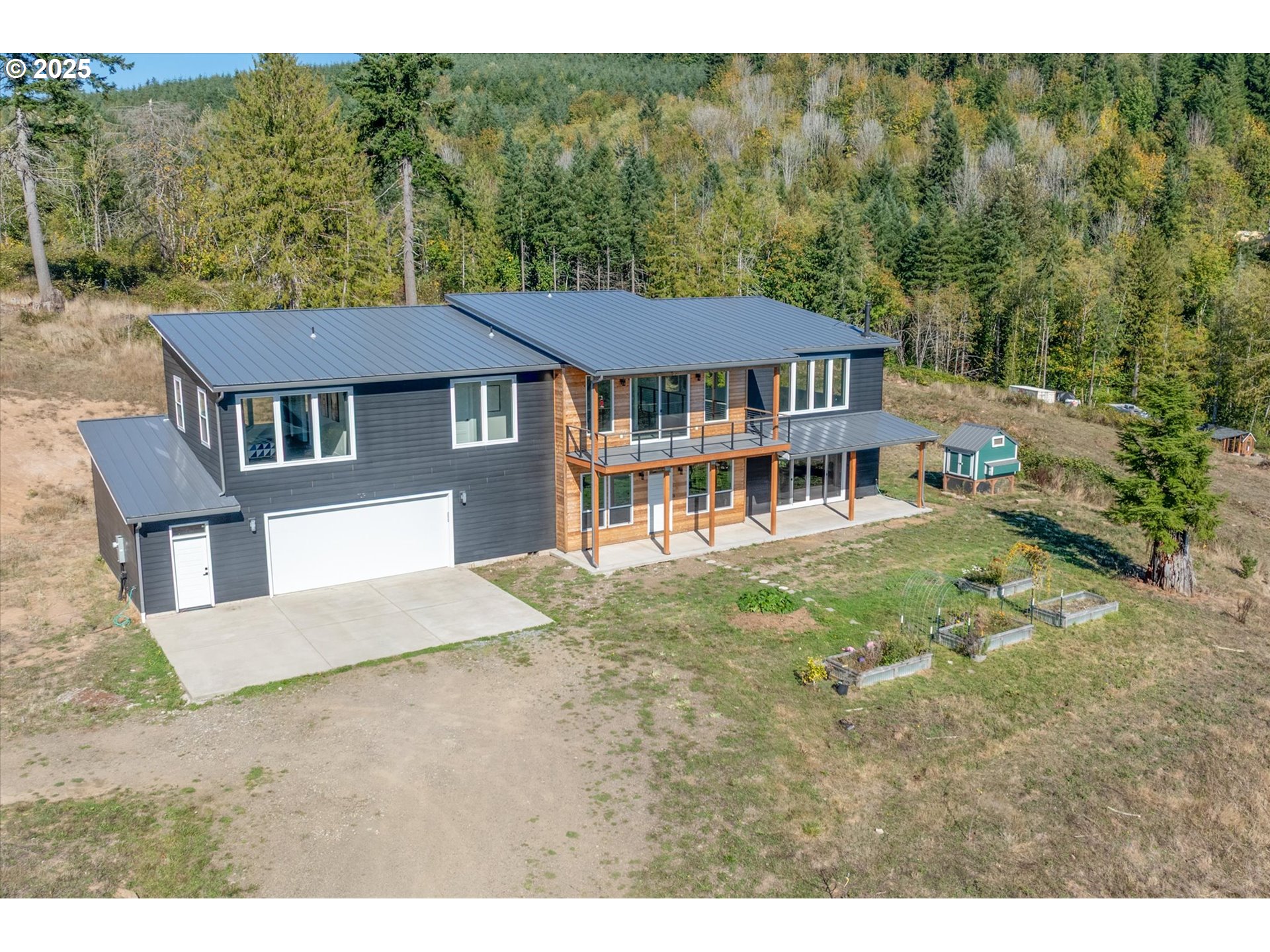 (503) 893-8874Stunning custom home on just under 3 acres with sweeping territorial views. This 2,683 sq ft, 2 bedroom, 2.5 bath home features an open floor plan with 9’ ceilings throughout and an impressive 19.5’ ceiling in the living room with walls of windows for natural light. The main level offers ¾” maple hardwood floors, wood stove, and a chef’s kitchen with 12’ quartz island, gas range, and large pantry. Upstairs includes a loft, two bedrooms, highlighted by a spacious primary suite with walk-in closet and spa-style bath featuring soaking tub, dual sinks, and large walk-in shower with dual heads. A separate 8’x24’ balcony provides a peaceful space to enjoy the view. Attached 876 sq ft garage with shop area and 18’ workbench completes the property.