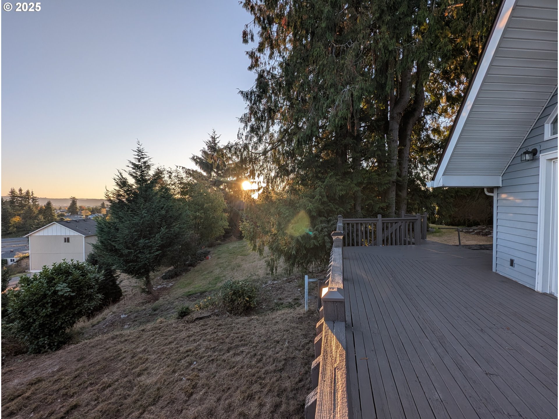 OPEN HOUSE: Saturday, 10/4, 1230-3pm. Come see this uniquely designed 3-bedroom, 2.5-bath home spans over three spacious floors. The main floor boasts natural lighting from floor-to-ceiling windows and an open floor plan with kitchen, dining area, living room, and 1/2 bath. Stepping out onto your large, private deck, the view is captivating, whether you're enjoying a nice evening alone or entertaining guests. Upstairs features two large bedrooms and a full bathroom. As you venture downstairs to the daylight basement, you'll find a bedroom, full bathroom, laundry room, bonus room, fireplace insert, and, yes, a second kitchen! Outside, you'll find a lovely covered patio. This space could be an impressive primary suite, a multi-generational living space, or possibly an income-generating opportunity. The home has new gutters and a newly seeded backyard. Your own private oasis and yet only a couple of minutes to I-5 and shopping.