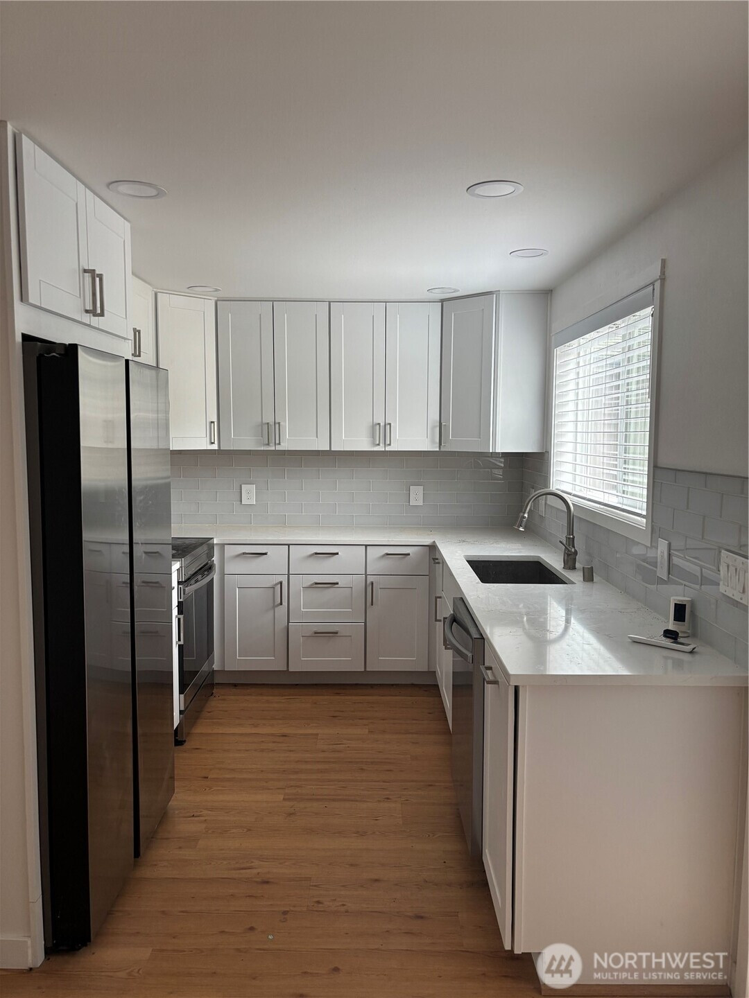 Updated flooring, countertops and fixtures. This beautiful home is move-in ready. Features laminate flooring, modern cabinets, sleek countertops and stylish fixtures. The kitchen shines with almost-new appliances. Enjoy entertaining on the back deck and fully-fenced yard. All living areas are conveniently on the main floor. A mini-split system keeps you cozy in winter and cool in summer. Conveniently located near shopping, dining, and other amenities. This home is a must-see!