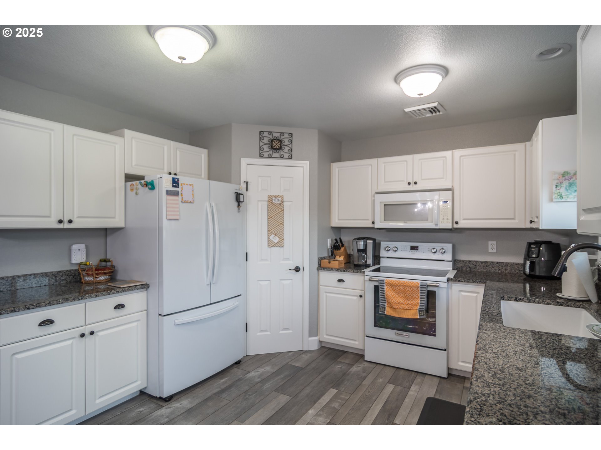 Prepare to be impressed by this beautifully updated home nestled in a quiet neighborhood surrounded by newer residences. This meticulously maintained property showcases pride of ownership in every detail, featuring tasteful decor and careful attention throughout.The home boasts high-end, water-resistant, and scratch-resistant luxury vinyl flooring throughout its interior. The kitchen is equipped with a pantry for extra storage, upgraded cabinetry, and elegant granite countertops. In the spacious living room, you'll find vaulted ceilings that create an open and airyatmosphere. The home also features a split floor plan for added privacy.The lovely primary suite includes a large walk-in closet & vaulted ceilings, and plenty of space for your belongings. Both the front and backyard are beautifully landscaped, complete with sprinklers, a drip system, and accent lighting. From the fenced backyard, you can enjoy stunning views of the surrounding mountains.Don't miss your chance to tour this exceptional home; it is truly a must-see to fully appreciate all that it has to offer.