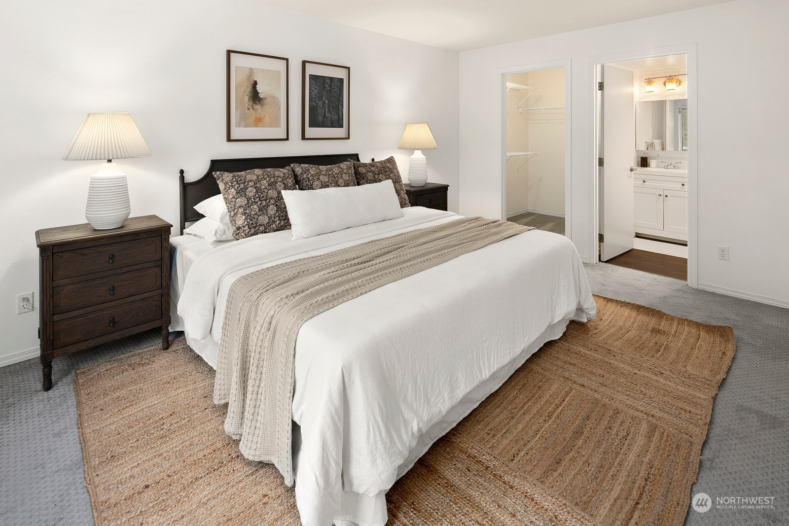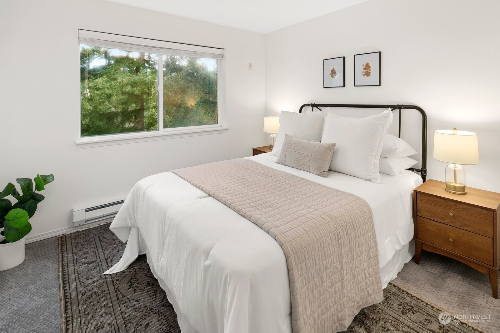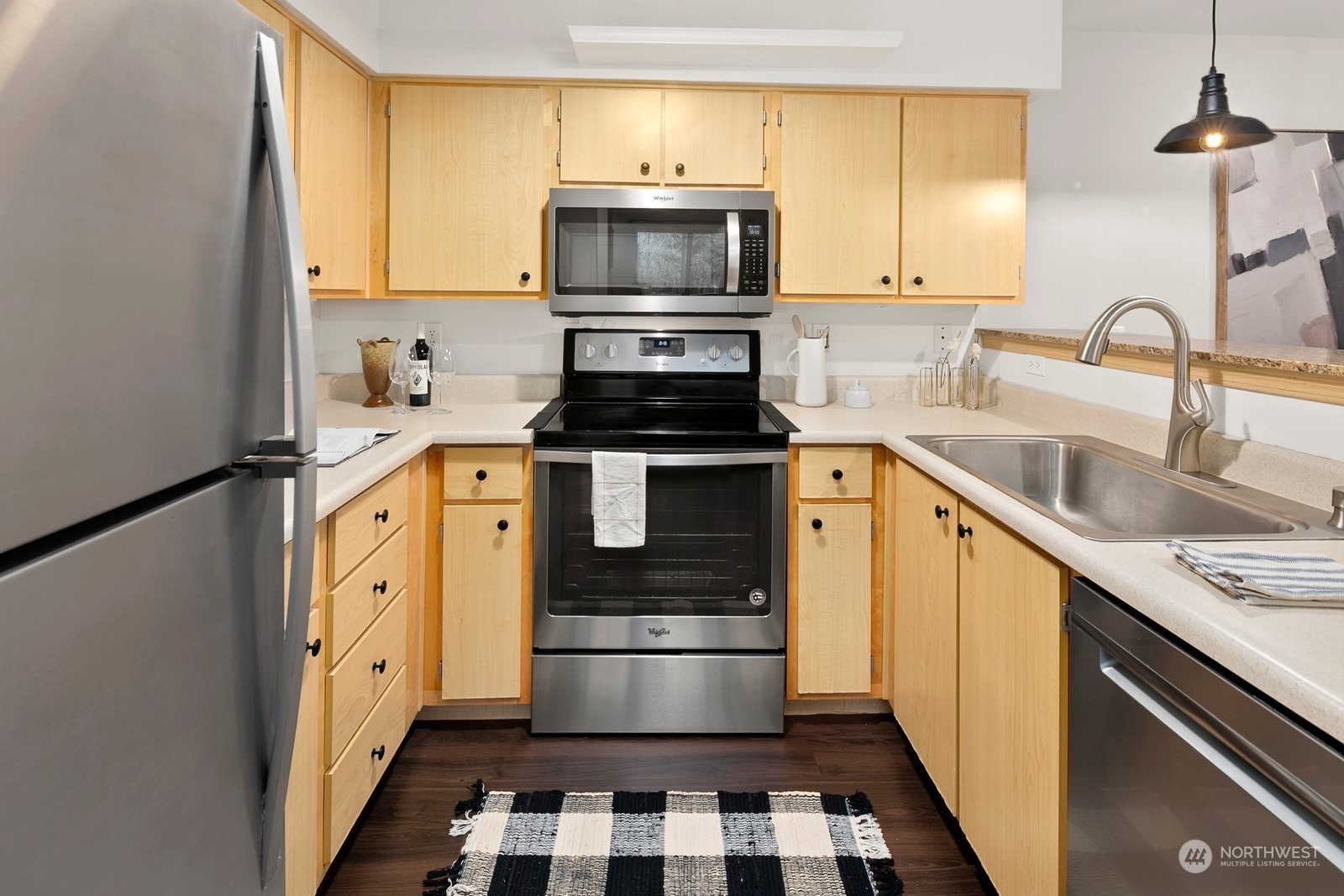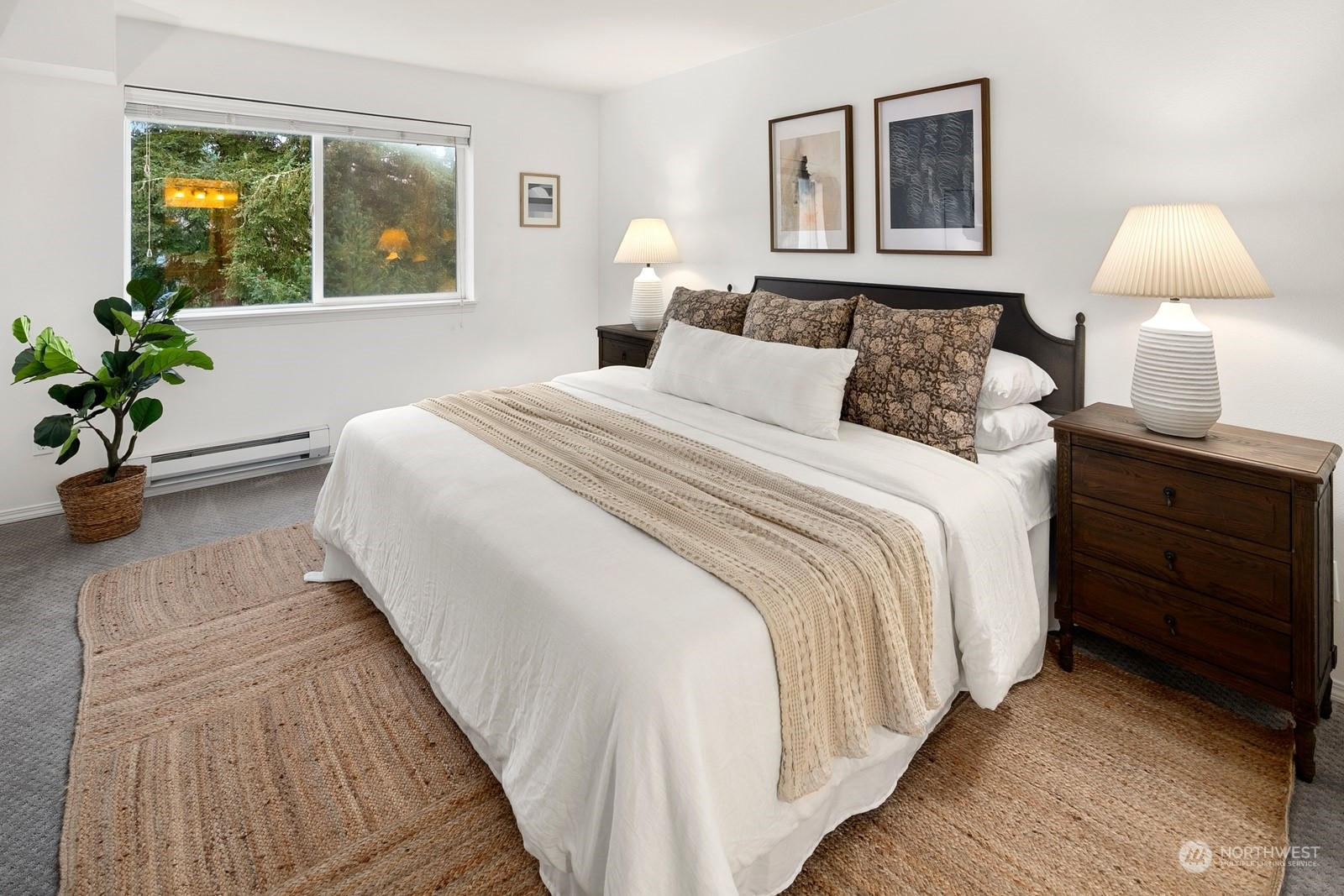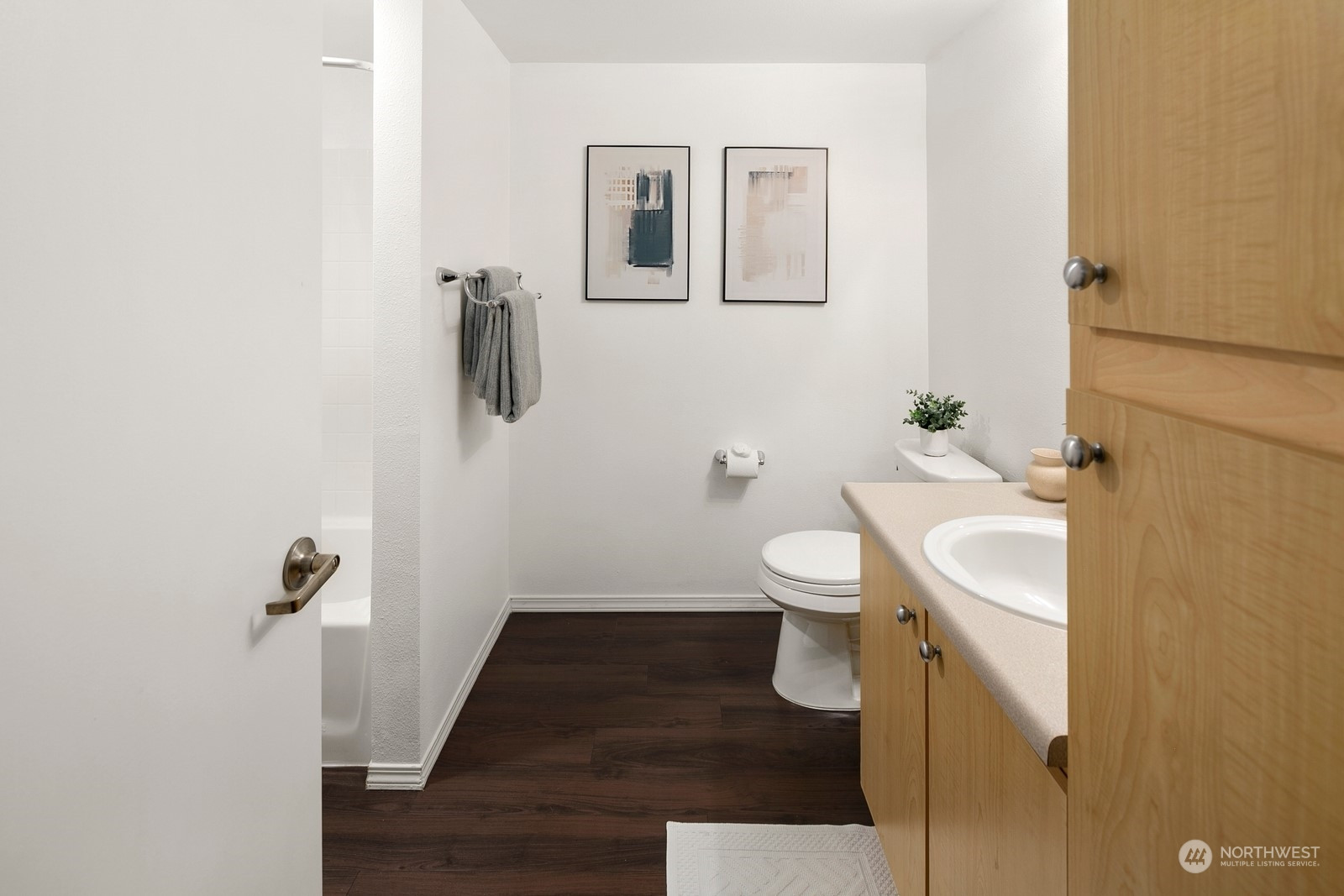 An array of incredible restaurants, shops & UW Bothell are just steps from your front door in this 2 bed/2 bath Downtown Bothell home! With a high walk score & transit access, a car is optional but reserved parking for 3 cars (including your own PRIVATE GARAGE) is a fabulous perk. Engineered hardwoods stretch through the open concept living room/dining room & kitchen, opening to a covered balcony overlooking a lush tapestry of greenery. A spacious primary suite boasts a walk-in closet, en-suite with full bath & territorial views. Large 2nd bedroom is the perfect guest suite or home office. Pets are welcomed & will enjoy the beautifully landscaped grounds. No rental cap, strong HOA & meticulously maintained property. Welcome Home!