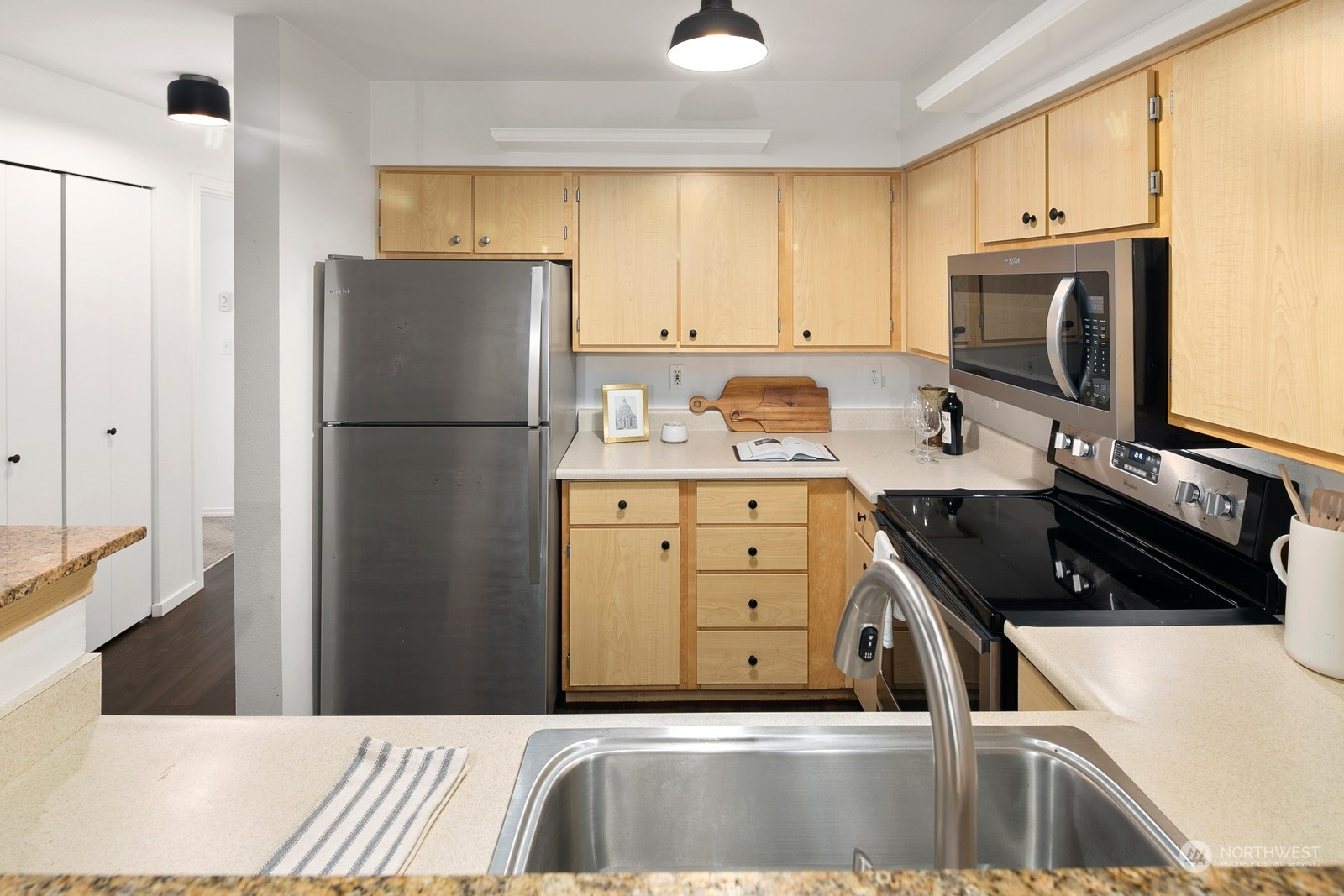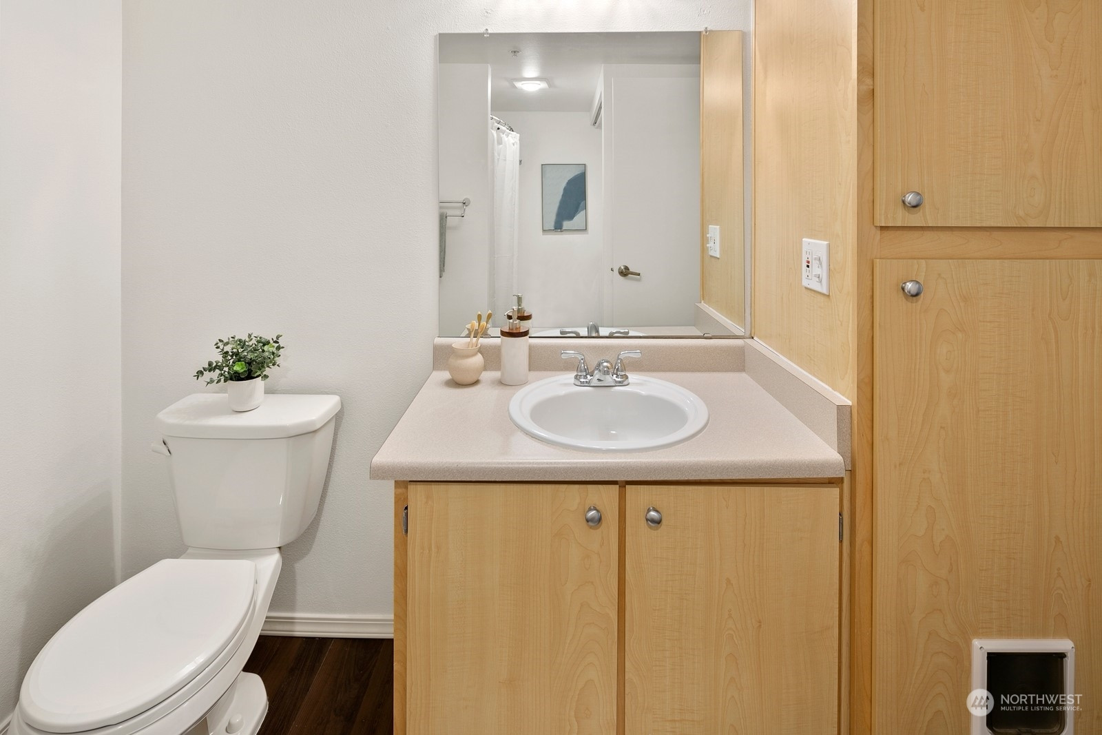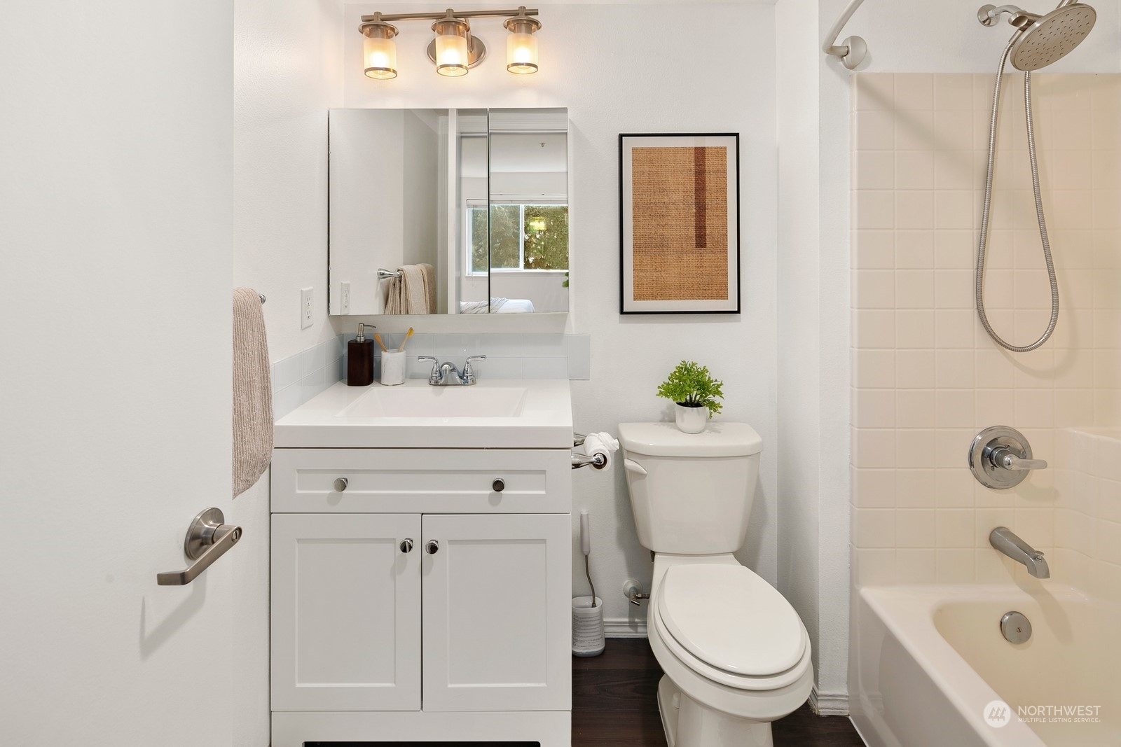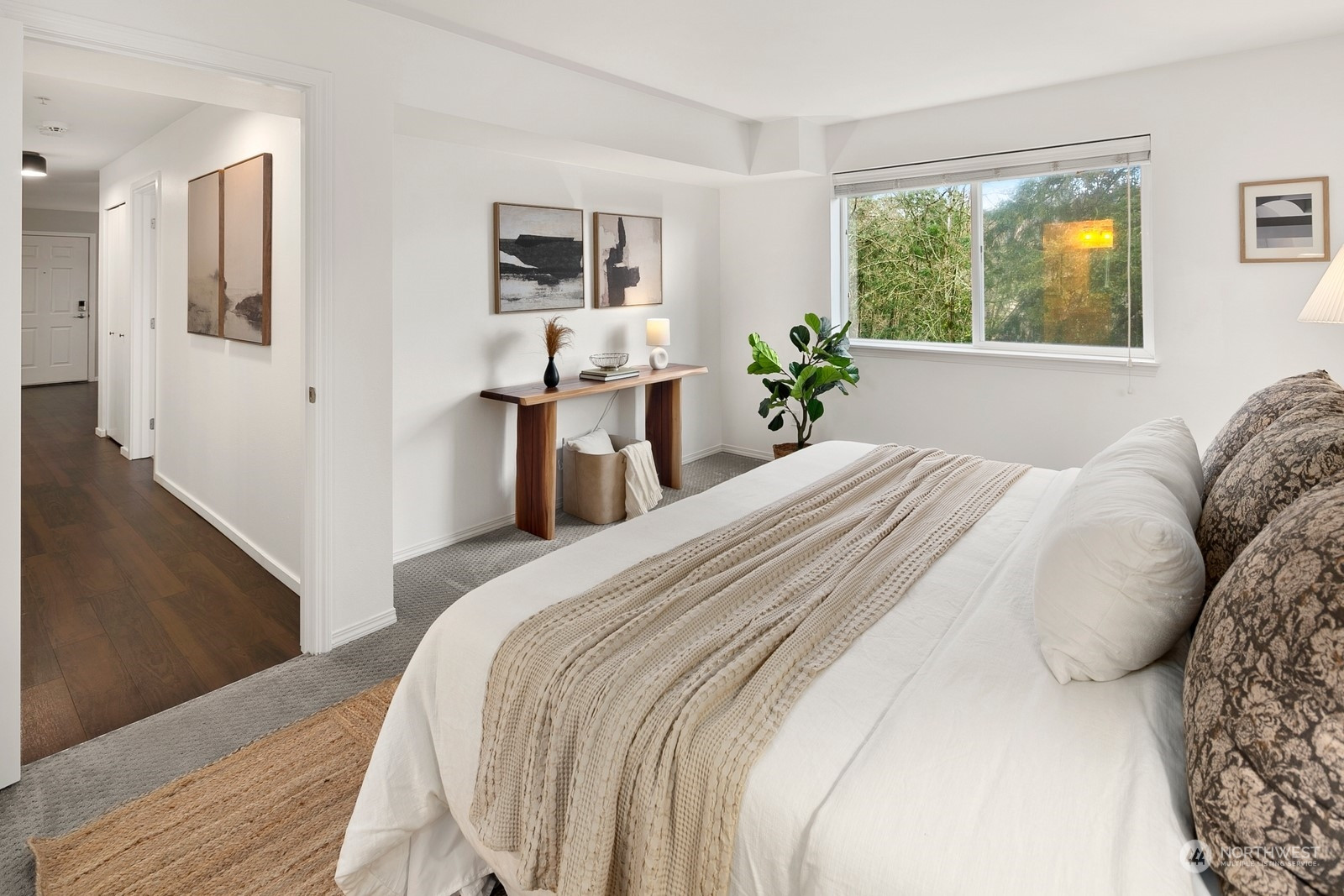 An array of incredible restaurants, shops & UW Bothell are just steps from your front door in this 2 bed/2 bath Downtown Bothell home! With a high walk score & transit access, a car is optional but reserved parking for 3 cars (including your own PRIVATE GARAGE) is a fabulous perk. Engineered hardwoods stretch through the open concept living room/dining room & kitchen, opening to a covered balcony overlooking a lush tapestry of greenery. A spacious primary suite boasts a walk-in closet, en-suite with full bath & territorial views. Large 2nd bedroom is the perfect guest suite or home office. Pets are welcomed & will enjoy the beautifully landscaped grounds. No rental cap, strong HOA & meticulously maintained property. Welcome Home!