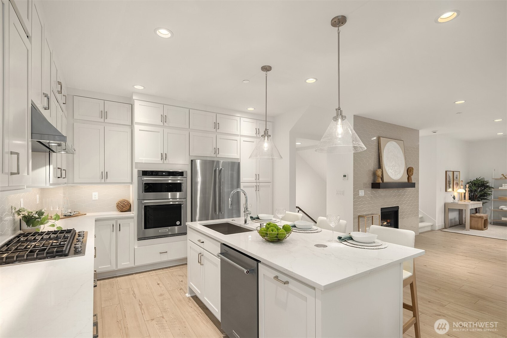 Cross Kirkland Towns by Toll Brothers - luxury 4-bedroom townhomes featuring unique NW contemporary architecture & sleek interior finishes. Every home offers a covered deck off the bright, open great room & a private first-floor bedroom w/ 3/4 bath. The KINNEY home design, located on the end of the building, brings in an abundance of light & exudes luxury & style with its wonderfully designed floor plan. Includes stunning designer selected finishes in warm contemporary tones. Community walking paths connect to playground, pickleball court, dog walk & exceptional access to the Cross Kirkland Corridor. Centrally located to nearby restaurants & shopping, + easy Eastside commutes. If represented by broker, must register at 1st visit.