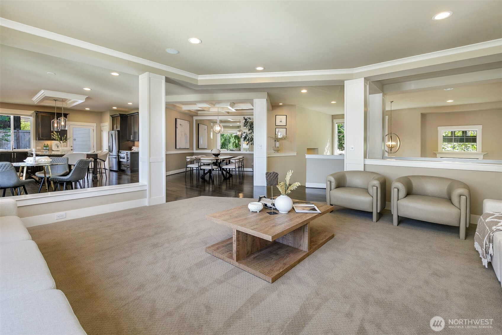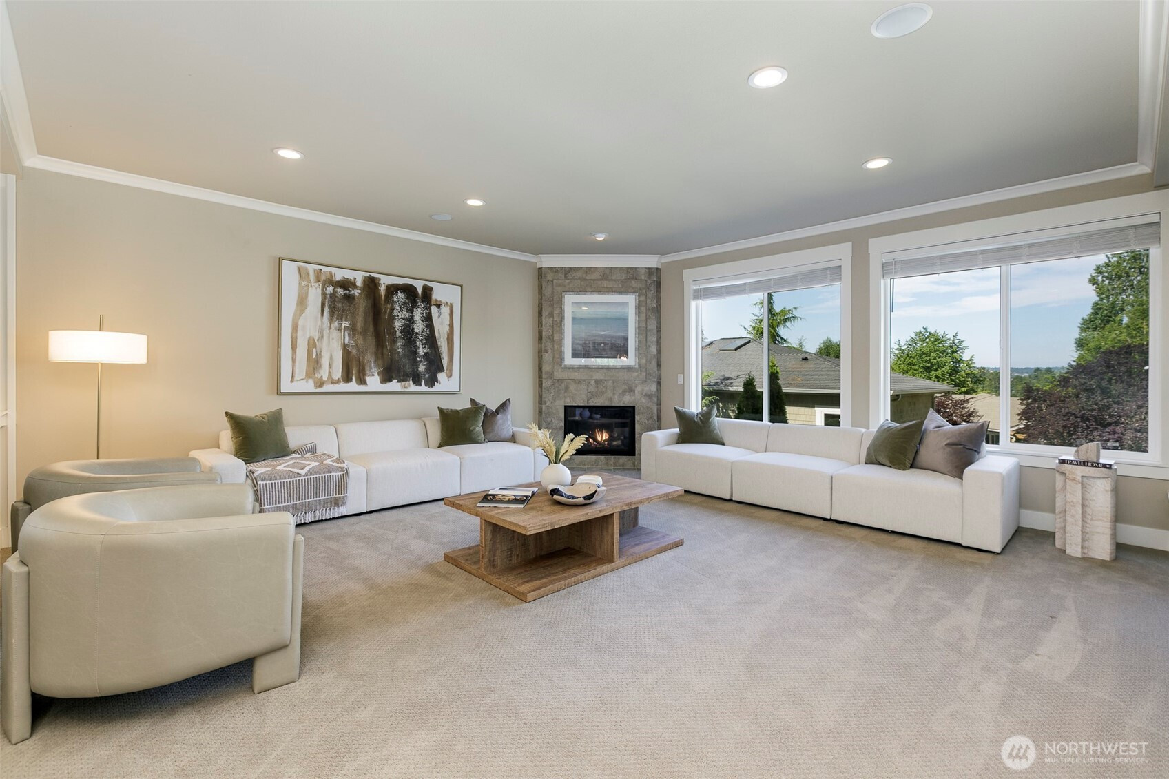 This modern Kirkland Craftsman, built in 2014, blends luxury & function throughout 4,230 SF. A dramatic hardwood foyer greets as you enter, ads style & utility. Spacious home Designed for entertaining, it features a gourmet kitchen w/Wolf range, oversized island, breakfast nook & sunny dining patio. Retreat to the spacious primary suite, features 2nd bdrm & office on main. Entertain in the elegant formal dining room. Enjoy movie nights in the fully wired home theater or relax by the fireplace in lower level huge family room, indoor or out @ the covered outdoor patio. Territorial and partial Lake views from the main floor. A flexible wine/exercise room,Car enthusiast’s dream huge 3 car garage. Near Juanita Beach & DT Kirkland. Excellent LWSD