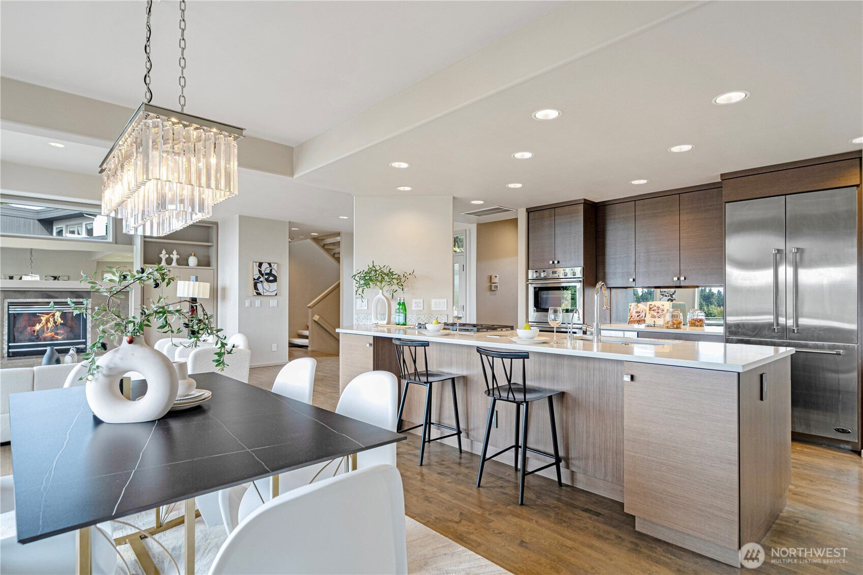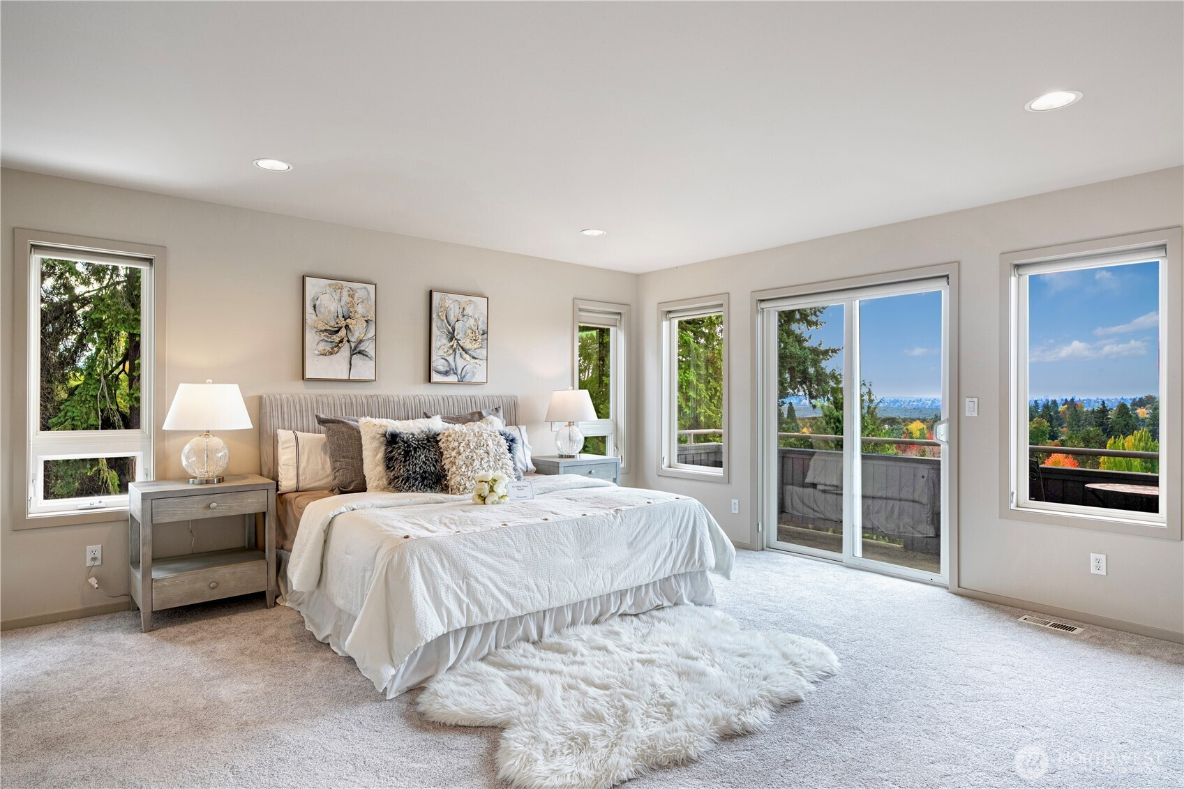 Elevate your lifestyle in this light-filled Kirkland Highlands home, where soaring ceilings frame sweeping views of Lake Washington, the Olympics, and glowing sunsets. Backing to the Cross-Kirkland Corridor Trail, it offers rare privacy with instant access to miles of biking and jogging paths, yet sits minutes from Google, Kirkland Urban, and downtown amenities. A designer great room unites a chef’s kitchen and expansive deck for seamless indoor-outdoor living, while the luxe primary suite captures panoramic water vistas. Recent HVAC and smart-home upgrades, EV-ready garage, and top-rated Lake Washington schools complete this rare blend of location, design, and lifestyle.