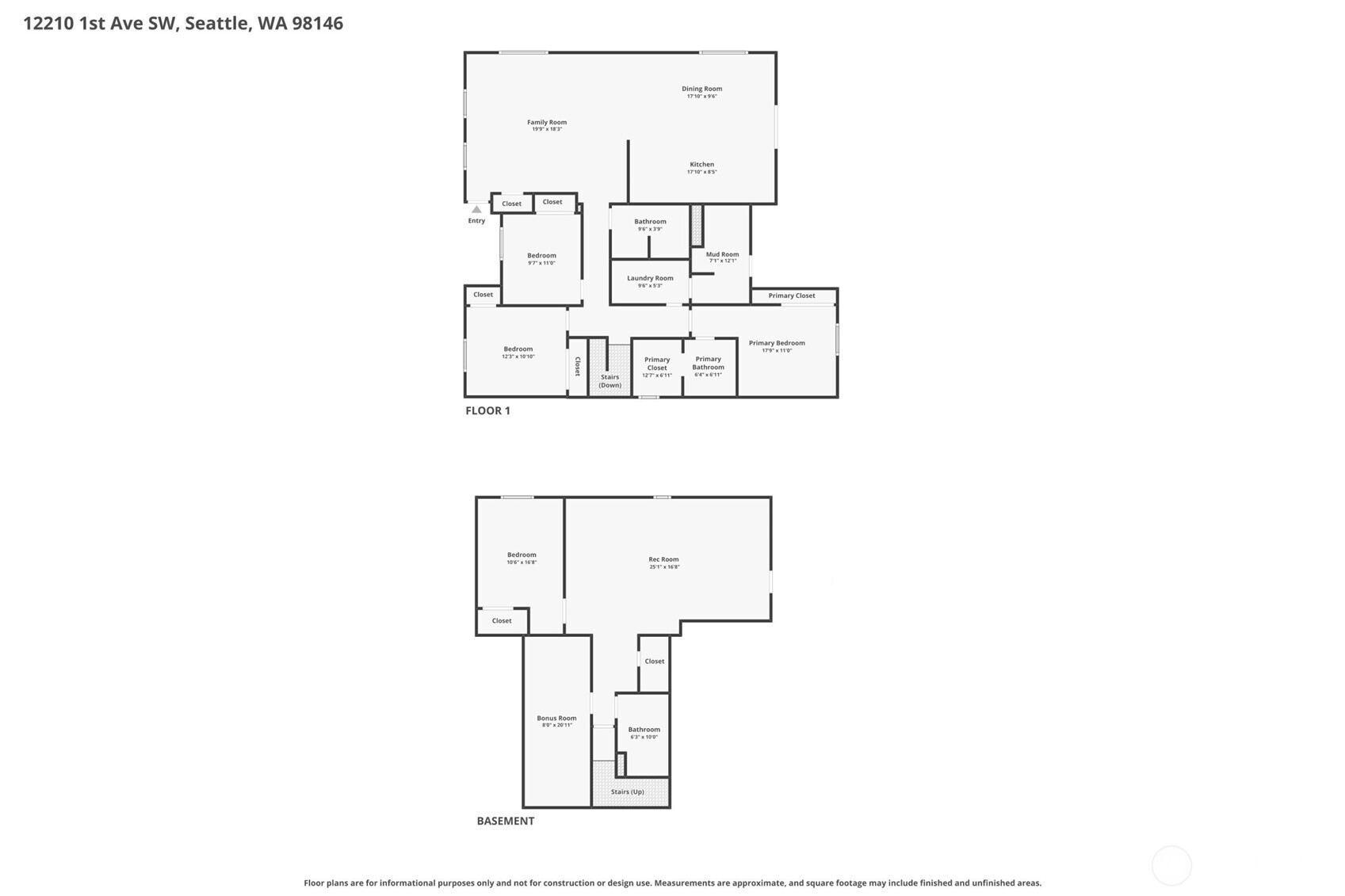 There's so much more than meets the eye in this Burien home! This mid-century gem has been refreshed for the 21st century w/ style & flair found at every turn. The open concept great room on the main floor is an entertainer's dream; both light & life flow effortlessly between the spacious family room into the dining space & beautifully updated kitchen. Pull up a seat at the island & watch the chef at work - this space is a joy to cook, host and spend time in! Stainless steel appliances, quartz counters, tile backsplash and plenty of storage space await your culinary creations. Three bedrooms on the main level include a spacious primary w/ an ensuite bath & a walk-in closet. Downstairs, versatility knows no bounds! A huge rec room is ready to host game & movie nights while a 4th bedroom offers privacy for guests & a large bonus room plays host to whatever you can imagine: an office, gym, play room? Outside, a large deck overlooks a blank canvas backyard - turn it into your private outdoor oasis with a little sweat equity! Come home to a charming residential community ideally centered between all the amenities of both Burien & White Center; groceries, dining, nightlife, parks, Highline schools & more are all less than 10 mins away. Quick proximity to buses heading downtown, SeaTac, light rail & thoroughfares.