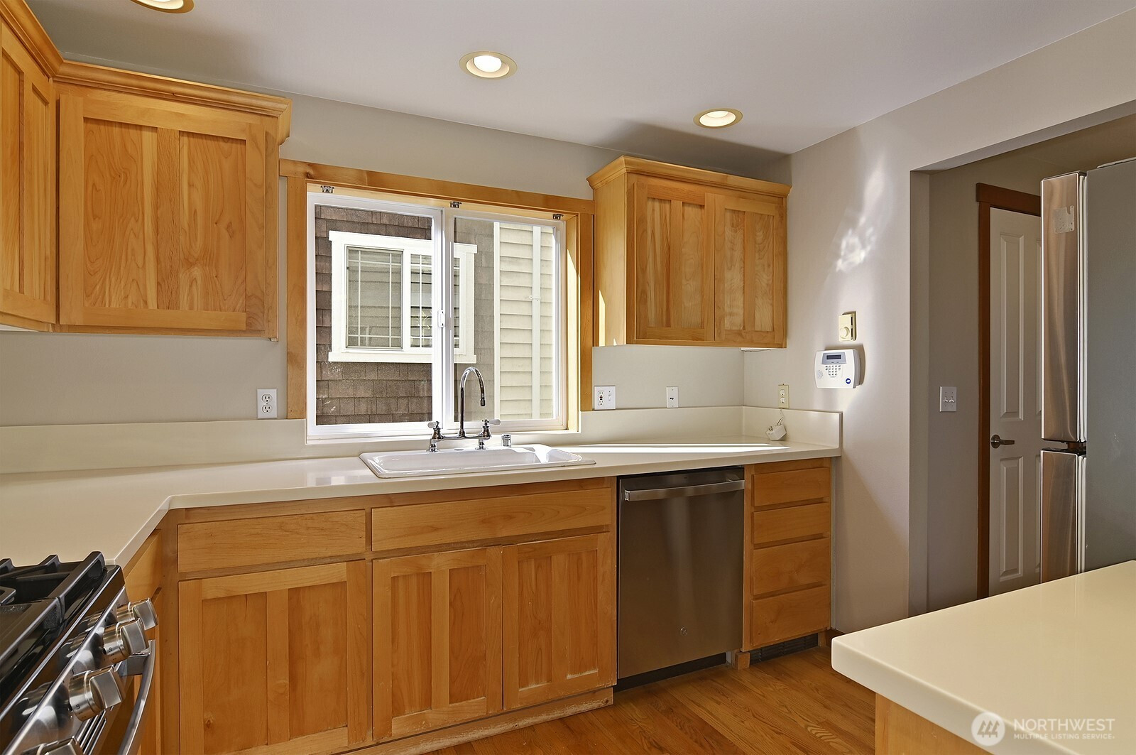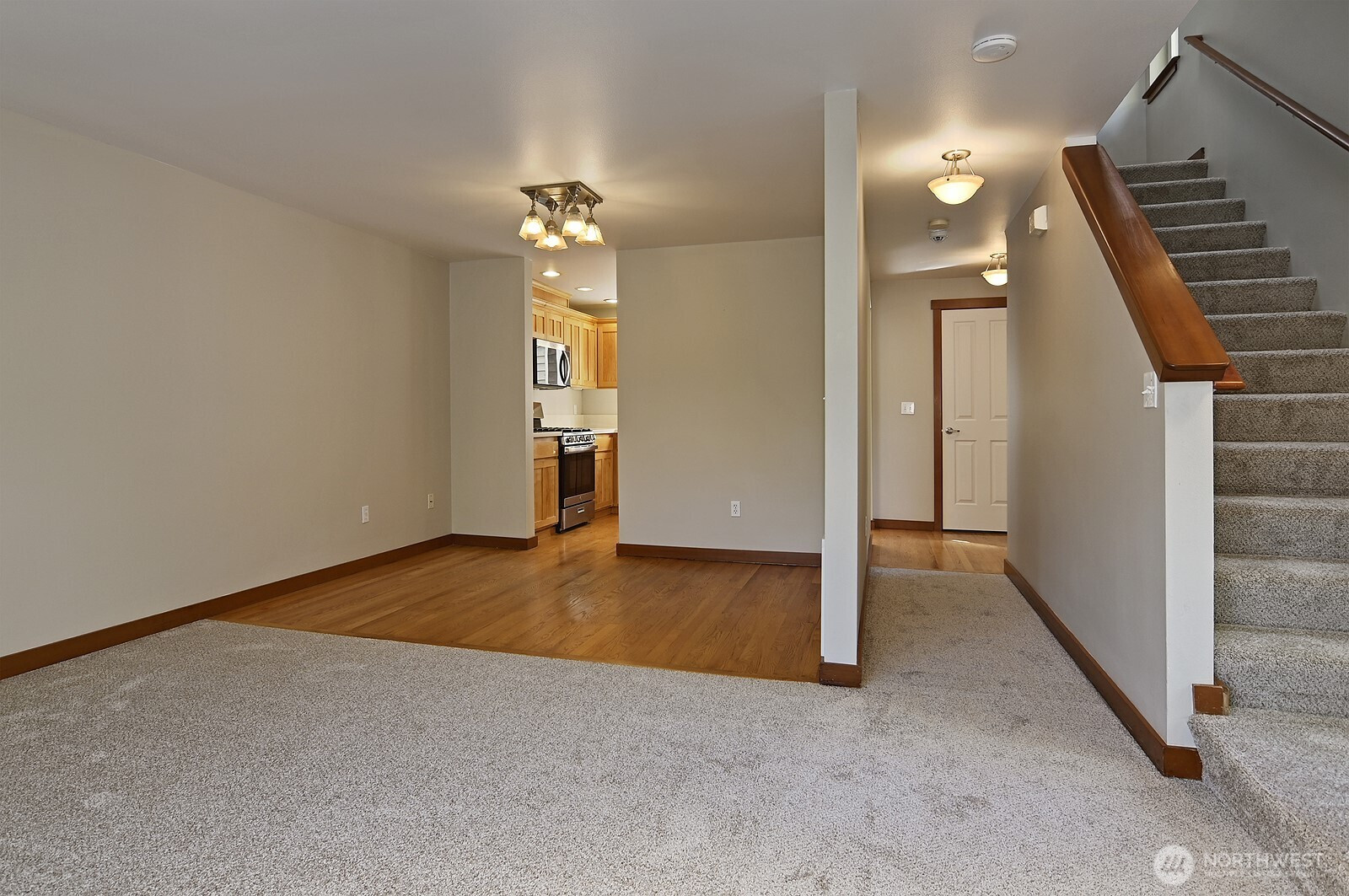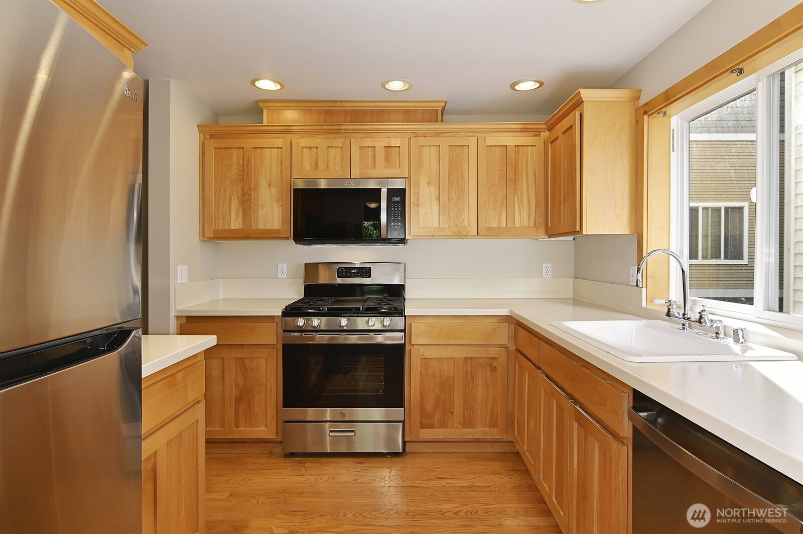 Sited in a great Pinehurst location offering convenience to Public transportation ( Light rail soon ) Interstate 5 and shopping . This spacious 1300 Sq. Ft. + Town Home is an end unit and has a garage with a new opener. As one enters , your immediately taken by the well lit stairwell and open floor plan. The entire interior has been newly painted , re-carpeted and the entry re-tiled. In addition , the kitchen has a new stainless appliance package except for the refrigerator . Rarely does a Town Home in this location and size become available in this price arena !!