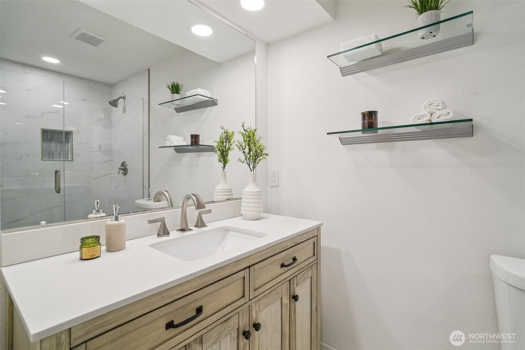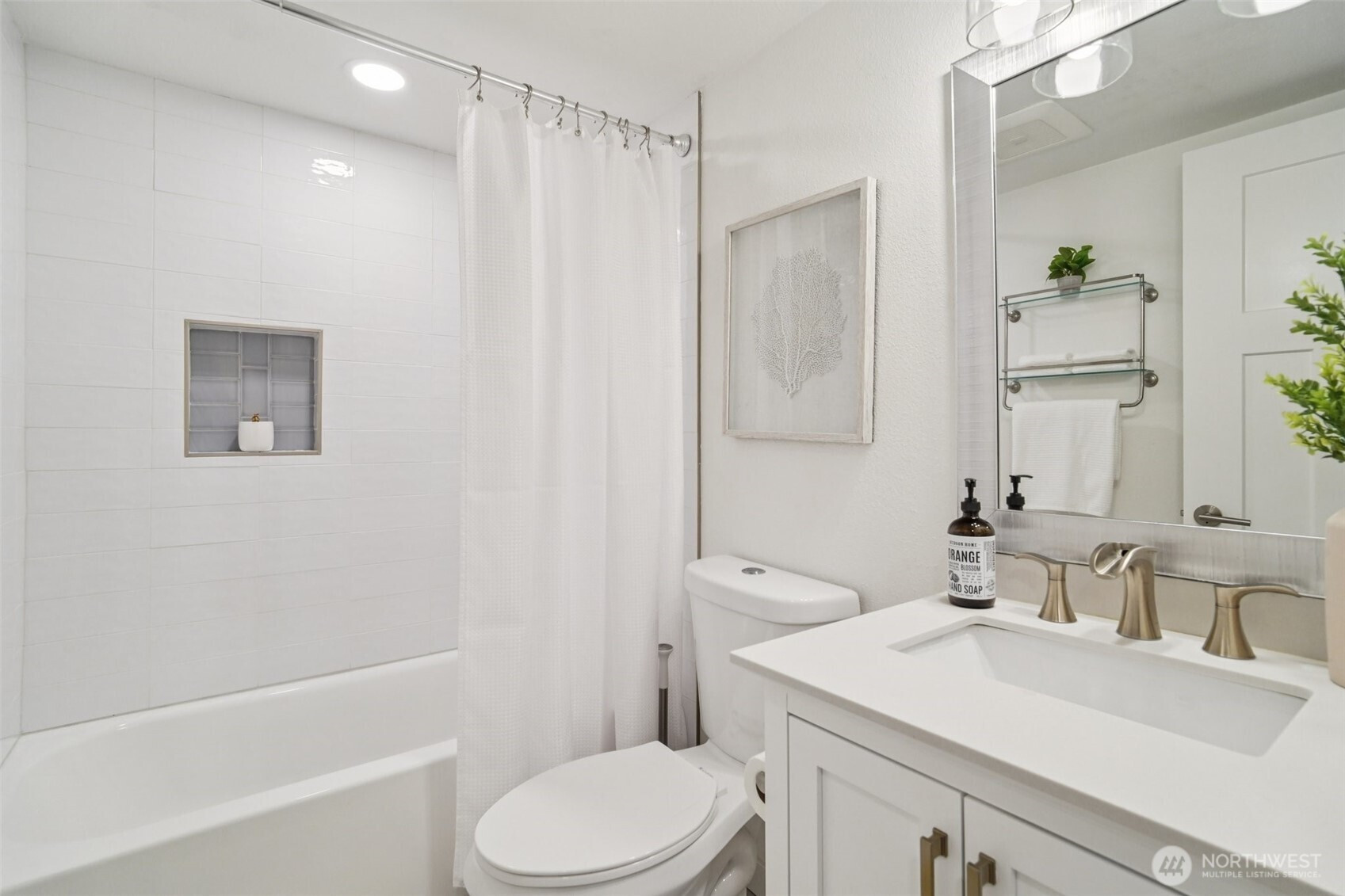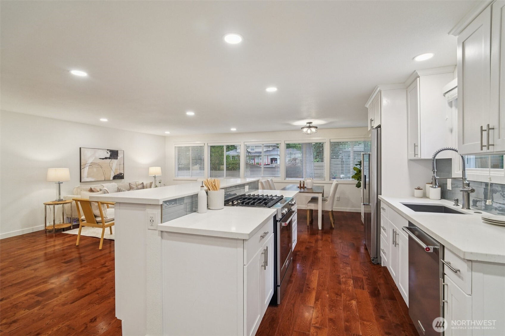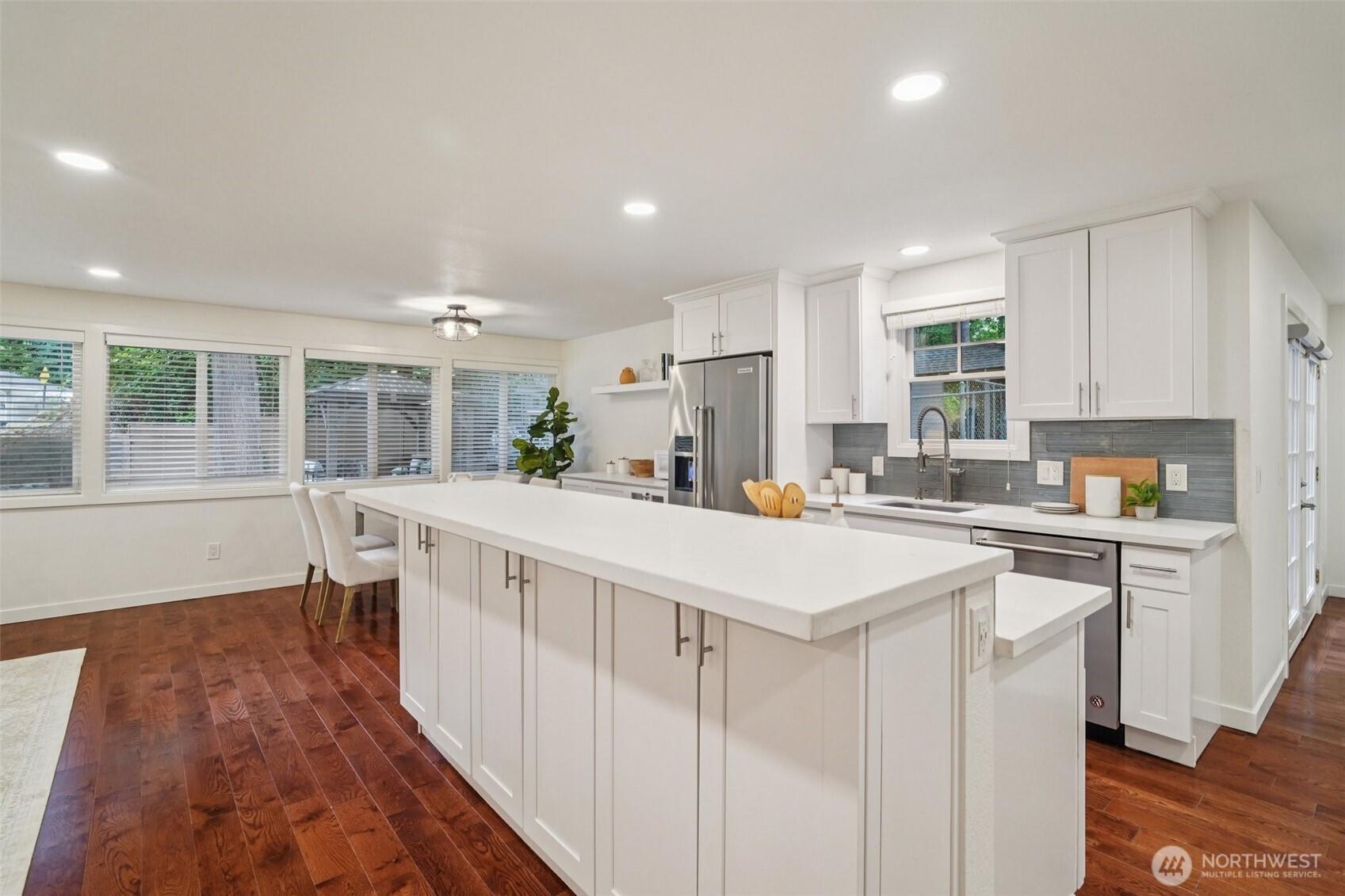 Fantastic east-facing rambler awaits you! Situated on a large & level corner lot, you'll appreciate how well kept & maintained this home is. Modernized interior features modern lighting, remodeled kitchen w/breakfast bar, SS appliances, & ample cabinet space. Wide open layout w/separate dining area, living room, & bonus flex space w/gas burning fireplace. All bathrooms have been completely remodeled. Fenced in low maintenance backyard that is fully turfed w/storage & cabana perfect for entertaining, dog run, or your own private golf play area. Brand new sewer connected line. Garage is fully finished. Easy access to DT Woodinville wineries, grocery stores, award winning schools, & major Highways 522 & 405. This home will not last, must see!