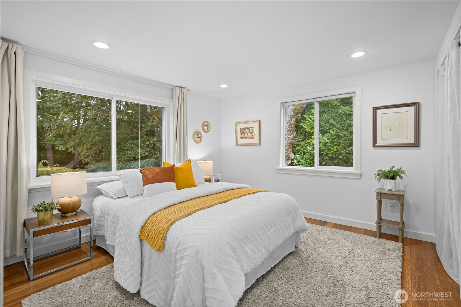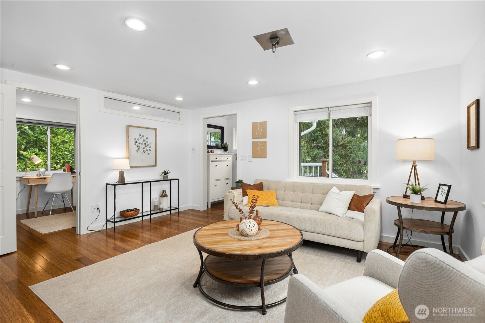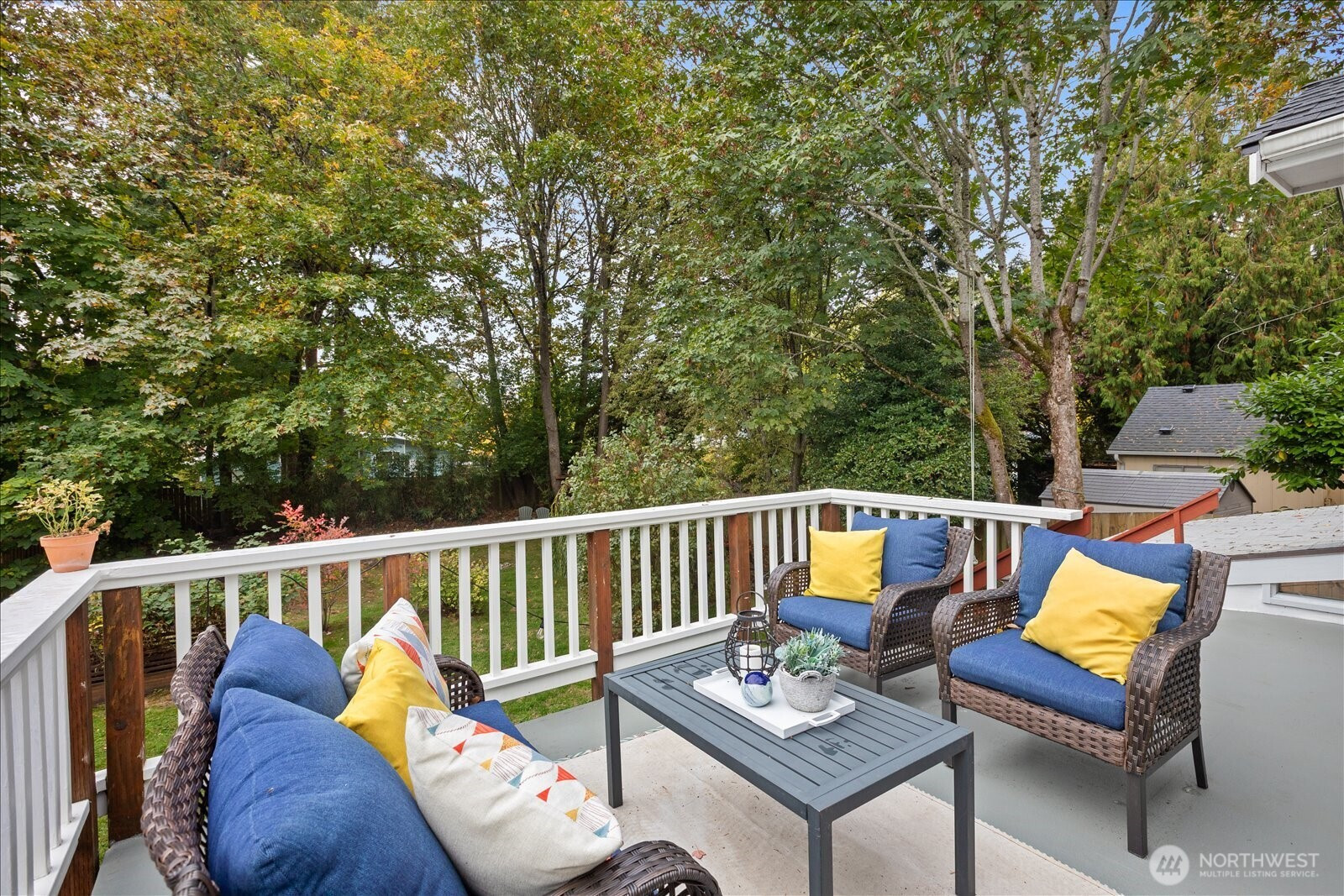 Welcome to this charming Seattle home nestled among the trees - feels like country living just blocks from everything you need! Uniquely one-of-a-kind, you'll love the eclectic touches that make this unlike any other. Sunny main floor has 2 bedrooms and a luxurious bath overlooking private backyard. Lower level surprises with a MIL suite complete with kitchen and bathroom. Enjoy coffee on the spacious deck overlooking the park-like backyard. Surprise covered outdoor hangout creates the perfect place to chill. Located in a residential neighborhood with easy access to I-5, downtown Seattle, University of Washington, light rail and Lake Washington. Don't miss it!