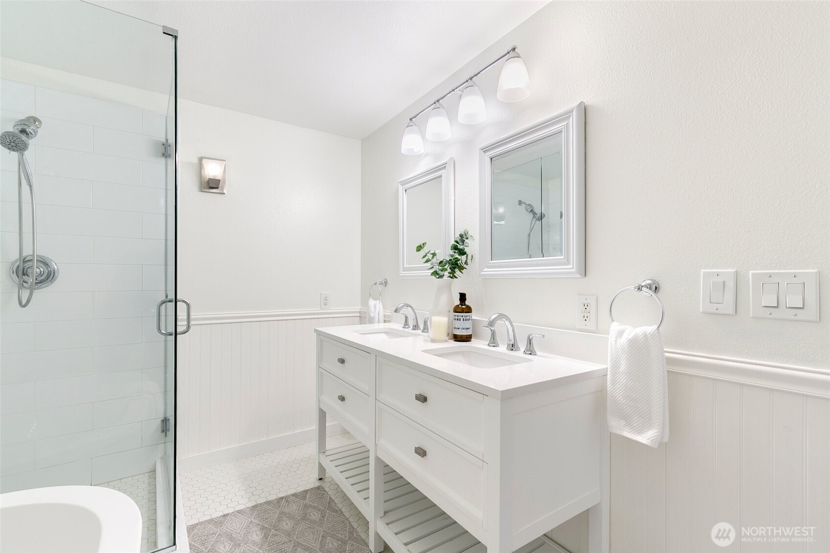 Beautifully updated home with a stylish, modern design and flexible living spaces! Enjoy a luxurious primary suite featuring custom closet organizers and a spa-like en suite bath for ultimate relaxation. The fully renovated kitchen opens to a large dining area, perfect for entertaining and everyday living. Downstairs, discover a spacious media room, third bedroom, and a generous walk-in closet—ideal for guests or multi-generational living. Step outside to your large, private fenced yard with an expansive outdoor storage area—perfect for hobbies, tools, or extra gear. A true blend of comfort, function, and style!
