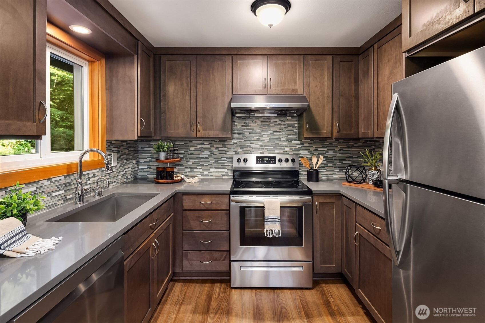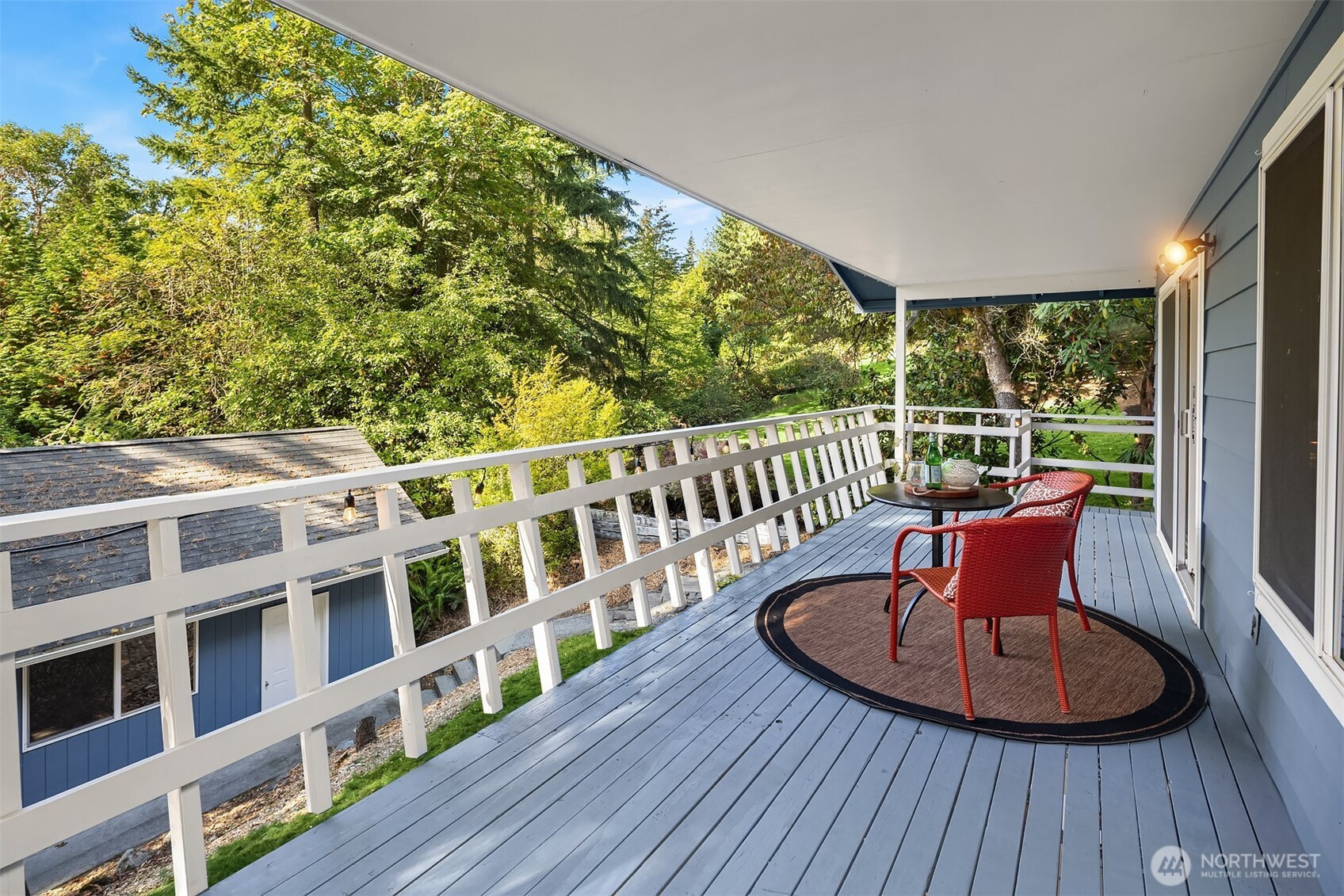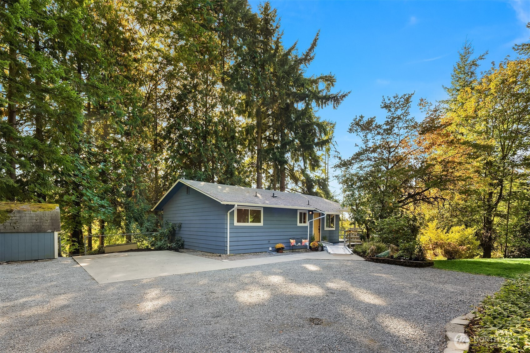 Oh the possibilities! Nestled privately among neighborhood multi-million dollar homes, a rare opportunity to own a multi-faceted Hollywood Hill home beautifully sited upon 1.08 acres, featuring 2 separate tax parcels. Enjoy an inviting updated 3 bed, 2-bath home hosting 2 full kitchens perfect for extended living and/or separate upper & lower rental income possibility. The house portrays itself as cozy/cottage but the layout is spacious and makes for easy living and entertaining with large living/dining, 2 fireplaces and sizable deck and patio. Lovely upgrades include kitchen, baths, lighting and trim. Oversize garage w/ladder storage. Build your dream home on the lovely .86 separate lot. Sought after Northshore schools. Location, location!