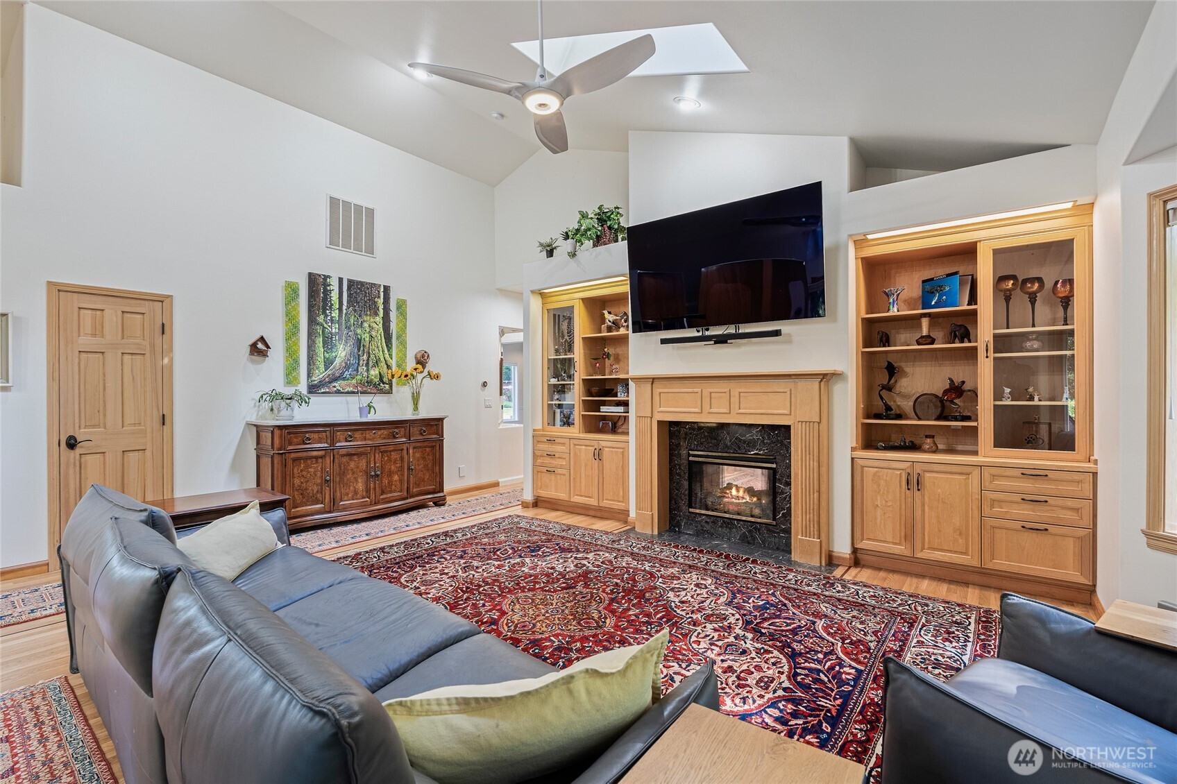 A Hollywood Hill dream come true! Located on 1.97 gorgeous fully fenced acres down a quiet dead end street just minutes from town & wine country. Main house is 3,350 sqft plus a newer 700 sqft studio over det garage (4,050 SQFT Finished). Apprx 1600 sqft of garage space with 5 bays for the car/craft enthusiasts! Very tech savvy home with smart features galore. The sprawling one story living area is finished with hardwoods throughout, three main bathrooms extensively remodeled. Kitchen w/ top of line appliances, newer granite & opens to family rm w/vaulted ceilings. Architectural comp roof, Custom metal arched entry door, New AC ++ The exterior has it all: very large patio, water feature, swim spa, garden, firepit & gated entry. MUST SEE!!