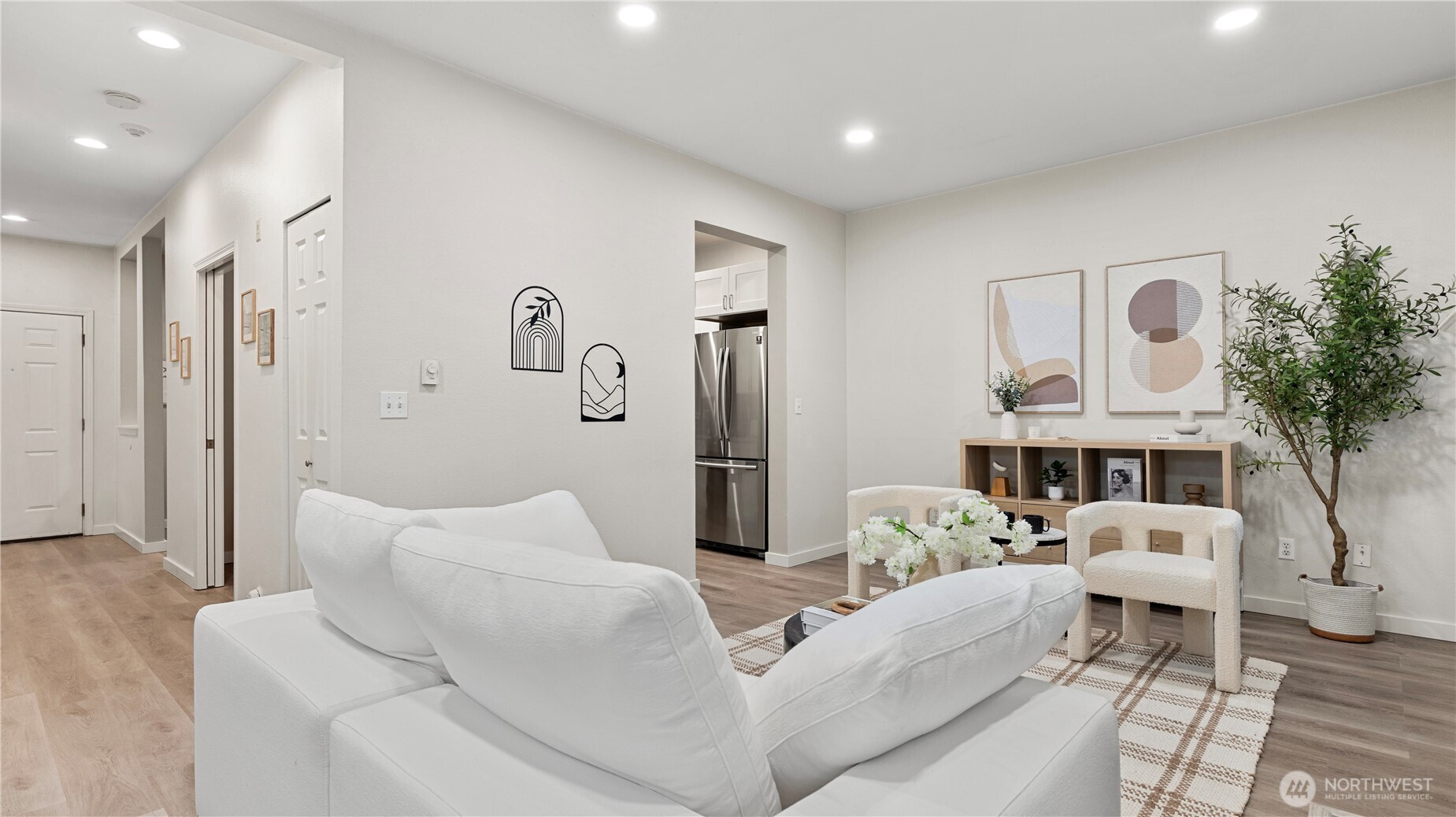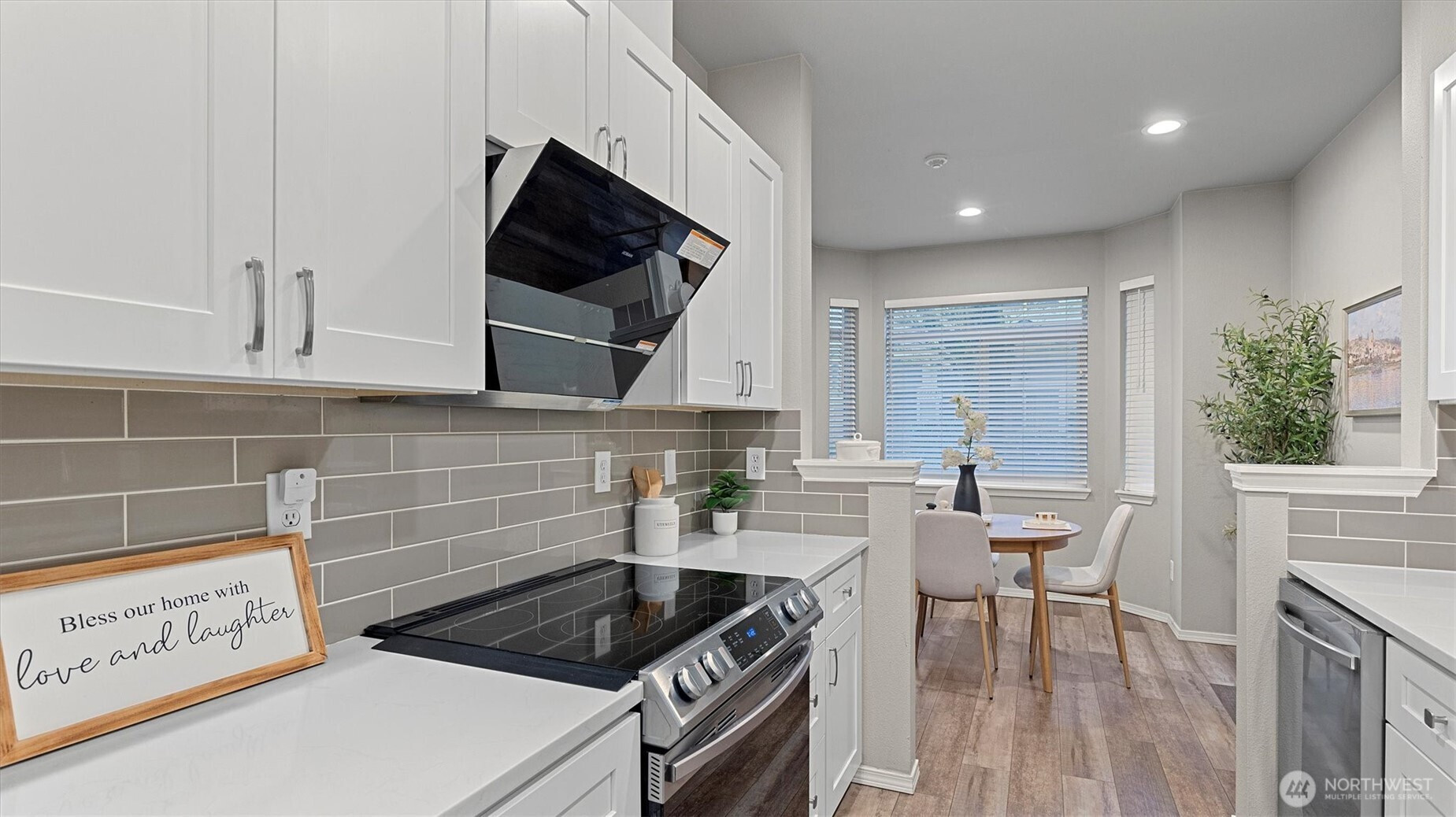 New paint, flooring & upgraded lighting just completed! Other recent updates include stainless steel appliances, fully renovated kitchen, refreshed bathrooms & new blinds. Main floor features a walk-through kitchen, formal dining area, and spacious living room with cozy wood-burning fireplace. Sliding door leads to private patio overlooking serene greenspace. Primary suite includes vaulted ceilings, en-suite bath & walk-in closet. Detached one-car garage. Prime location minutes to Microsoft, transit, Hwy 520 & downtown Redmond. No rental cap.
